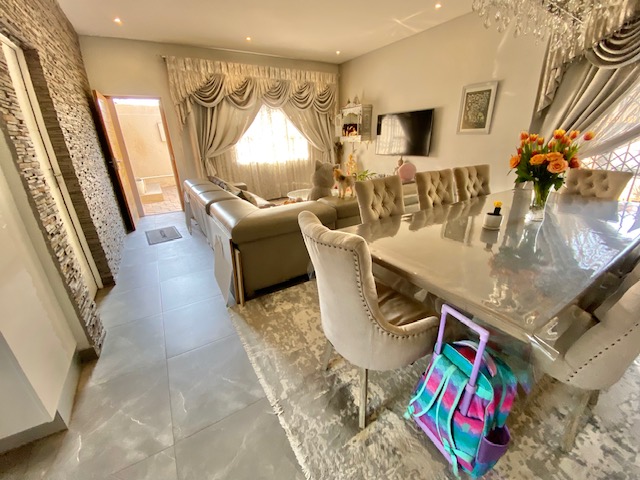 Not to be missed this modern simplex in a secure estate in Vorna Valley. LOW LEVIES. Make this modern home yours. This modern home features 3 spacious bedrooms, with the master bedroom boasting en-suite bathroom. The kitchen is modern with ample cupboard space, granite tops and a gas stove. Open plan dining and lounge area fully tilled that opens out to a private garden. Double automated garage with build in cupboards. Walled private garden. The geyser works with gas. Located close to all amenities, this home offers easy access to schools, the Mall of Africa, as well as major roads. Don't miss your chance to view this beautiful home. Call me for a viewing.