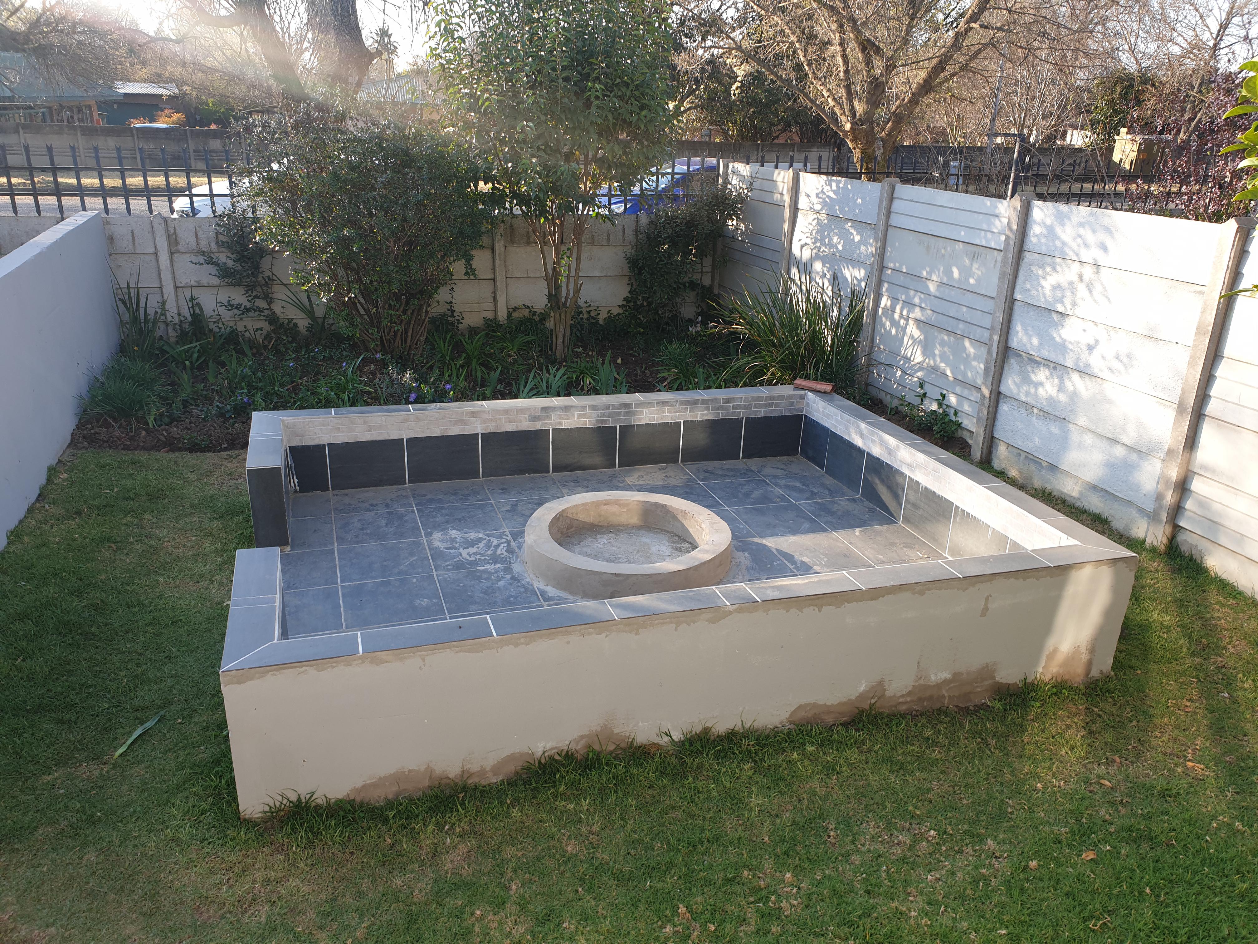 The fire pit is is smack dab in the middle of the well-kept garden.