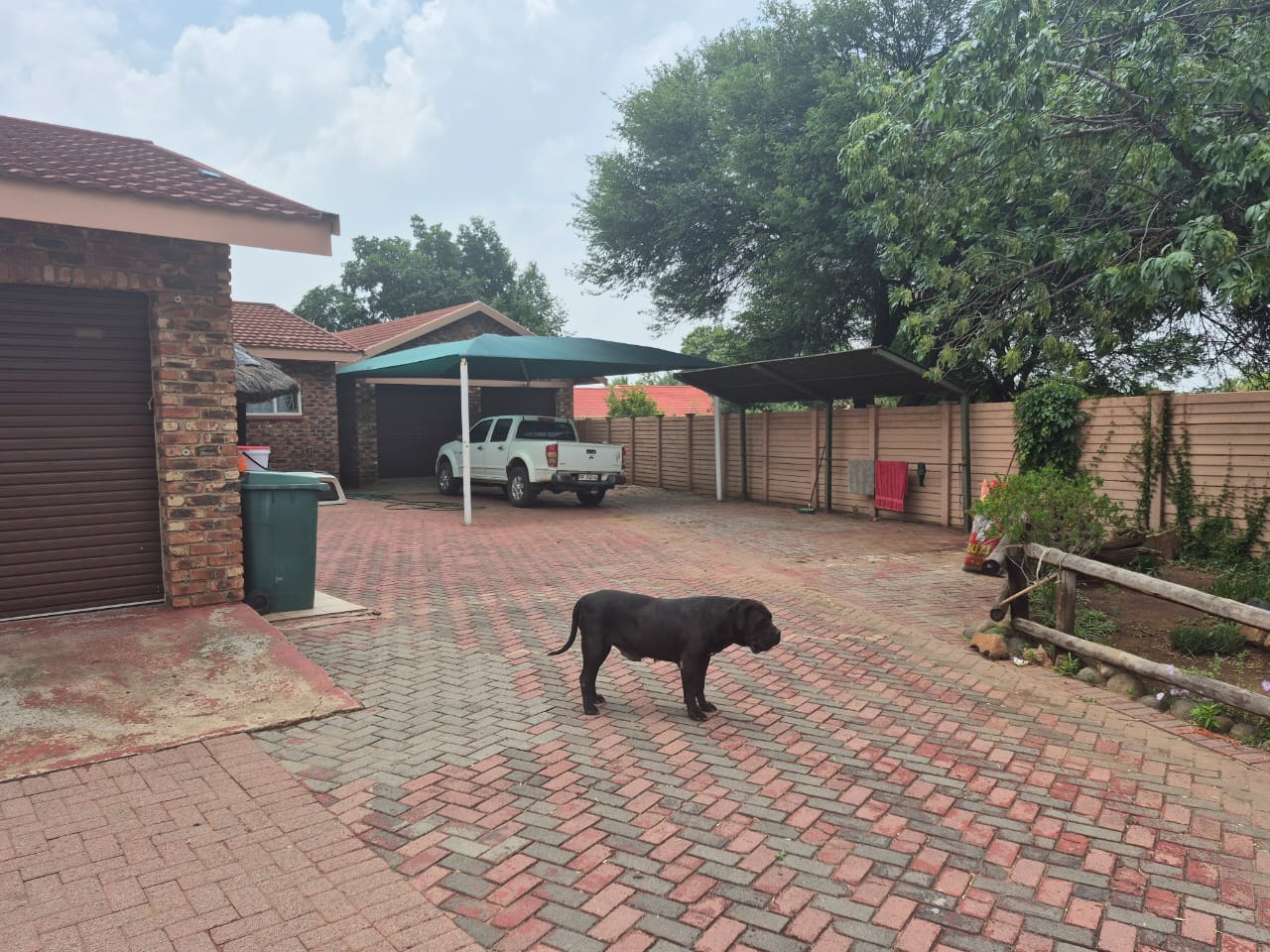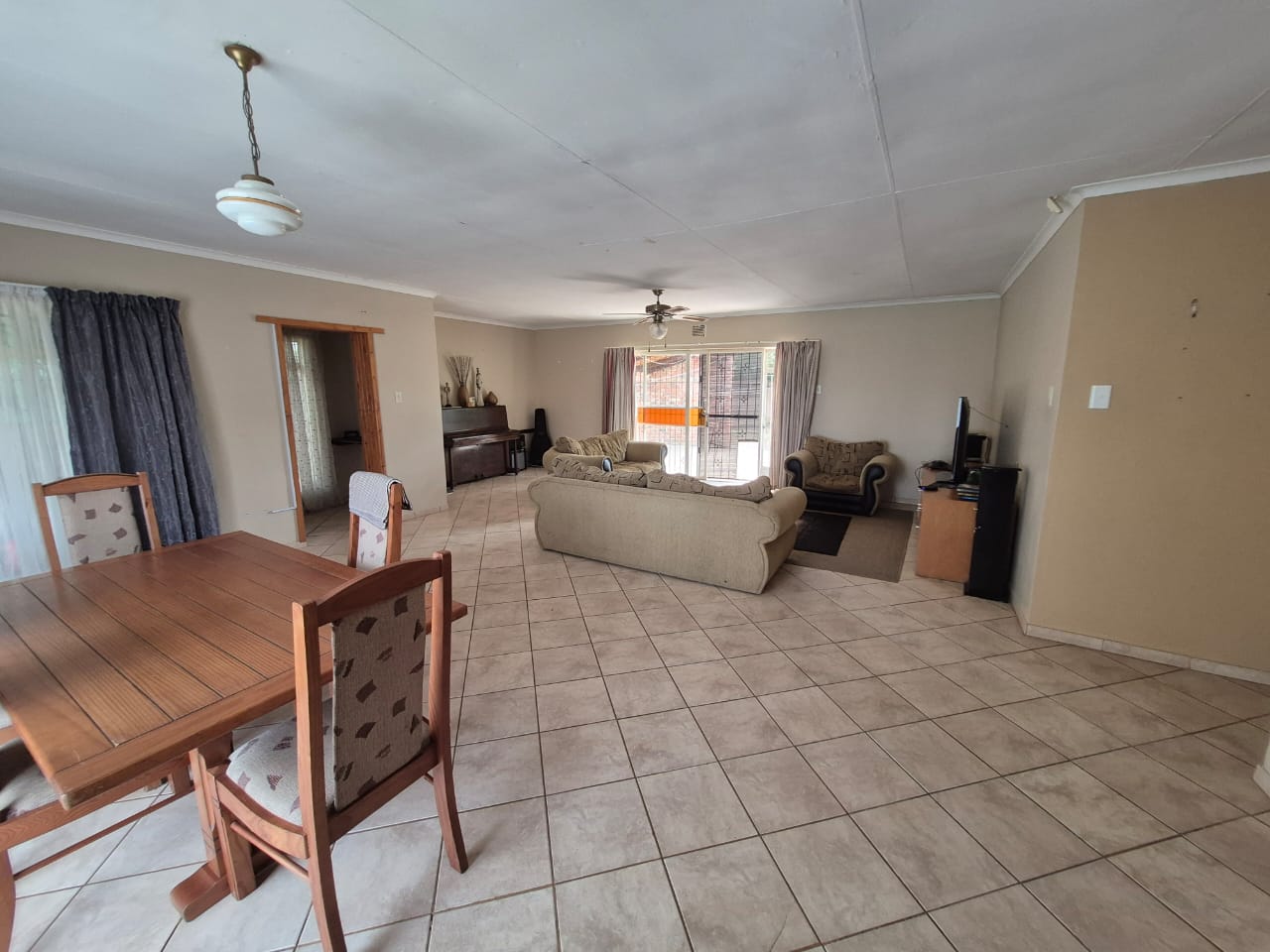The home features four bedrooms, three of which have built-in cupboards. A spacious open-plan lounge and dining room create a welcoming atmosphere for family living, with the lounge opening onto a patio complete with a braai area – perfect for entertaining.
