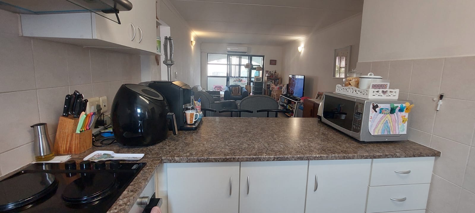 Kitchen with plenty of cupboard space, Build in stove and a space for a front loader or dishwasher and fridge