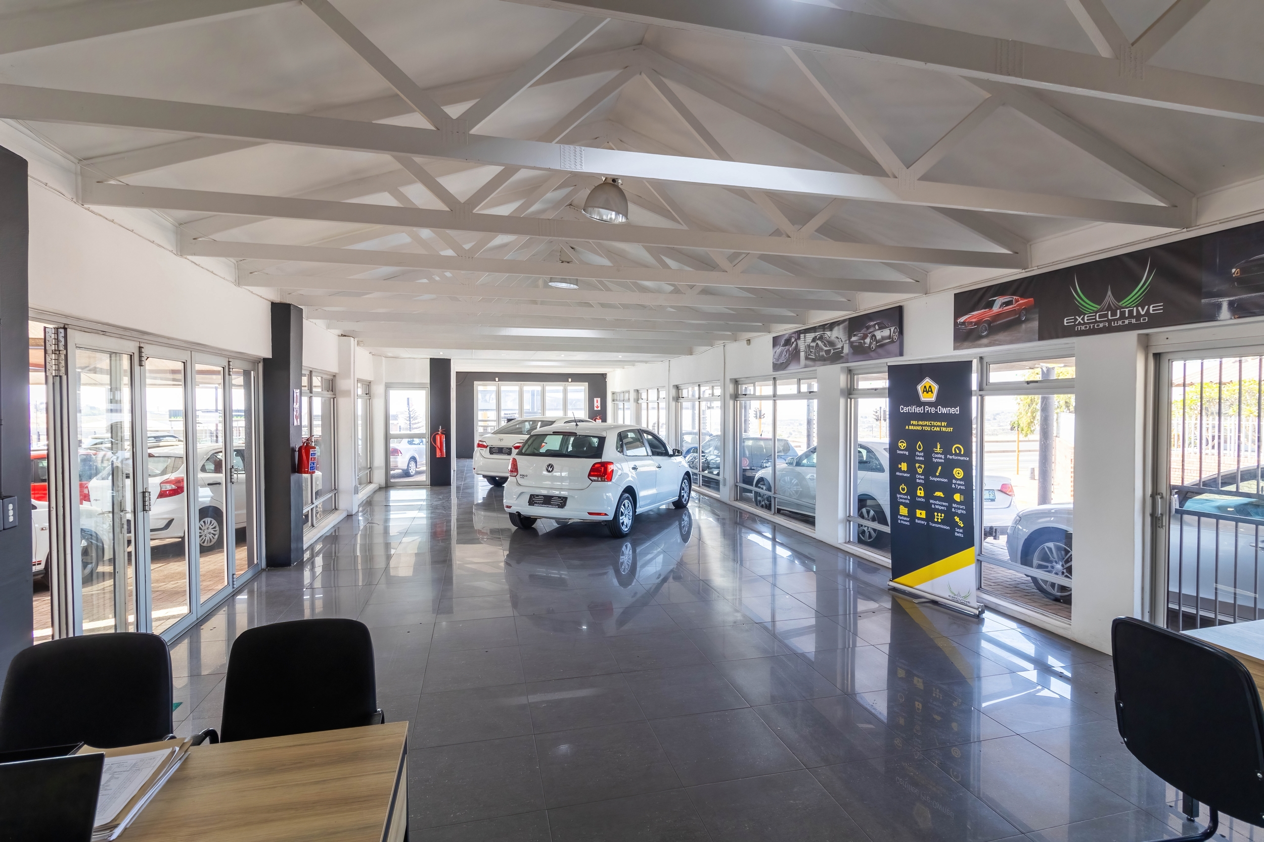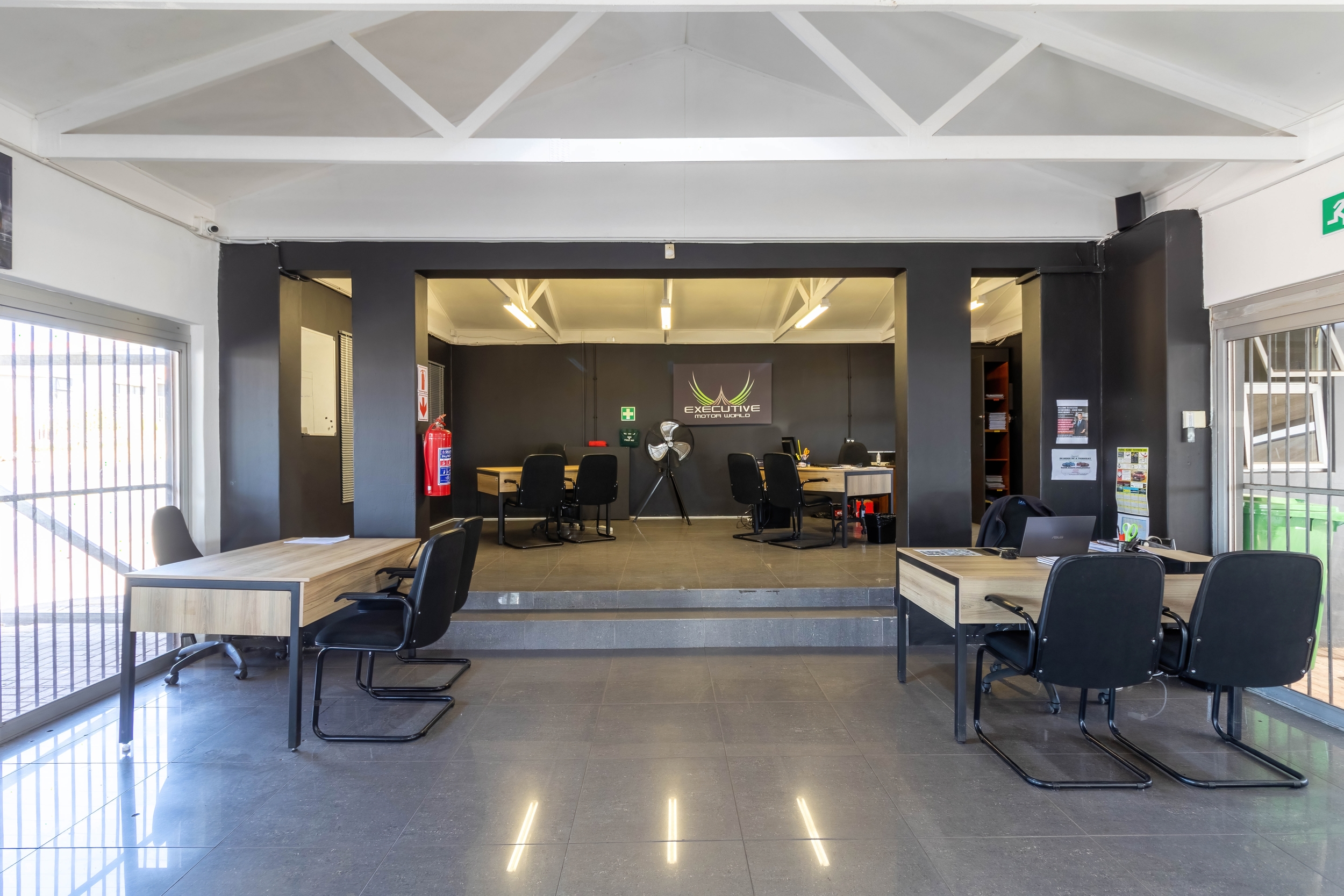 - Showroom Area: ±200 m2 tiled floor with large aluminium-framed display windows.