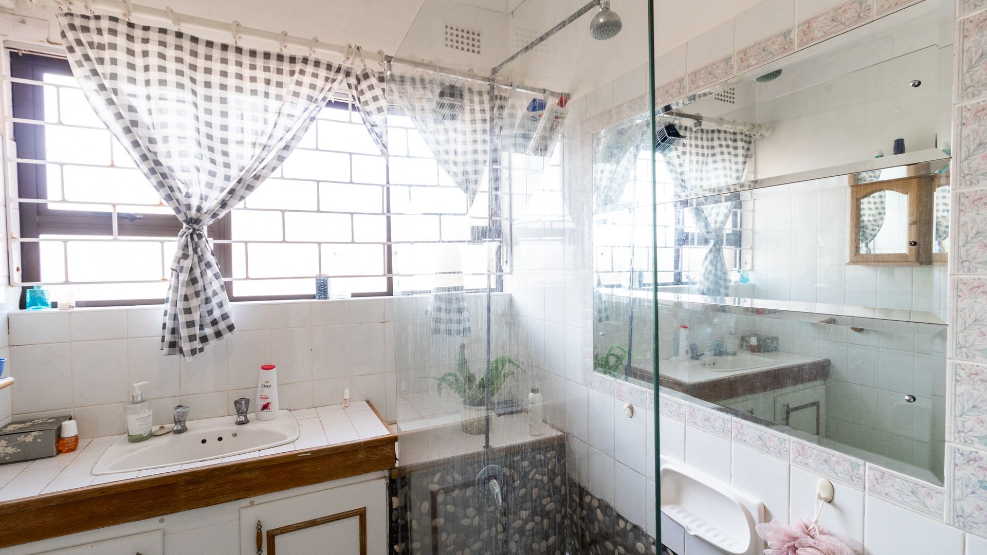 Down the hall, three spacious bedrooms await — all with built-in cupboards, and the main bedroom featuring an en-suite with shower, toilet, and basin. The second bathroom includes a bathtub and serves the remaining rooms with ease.