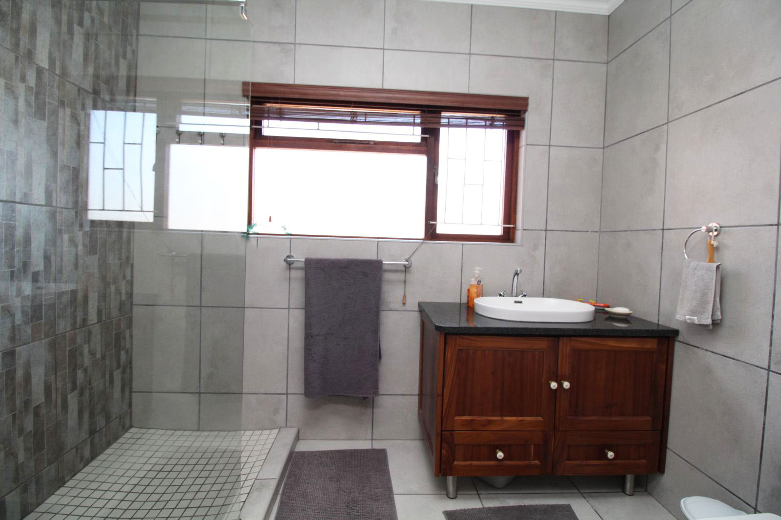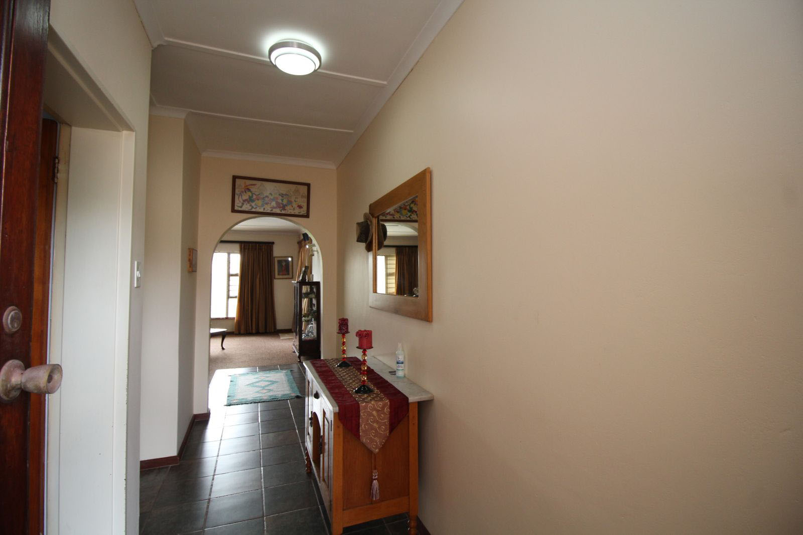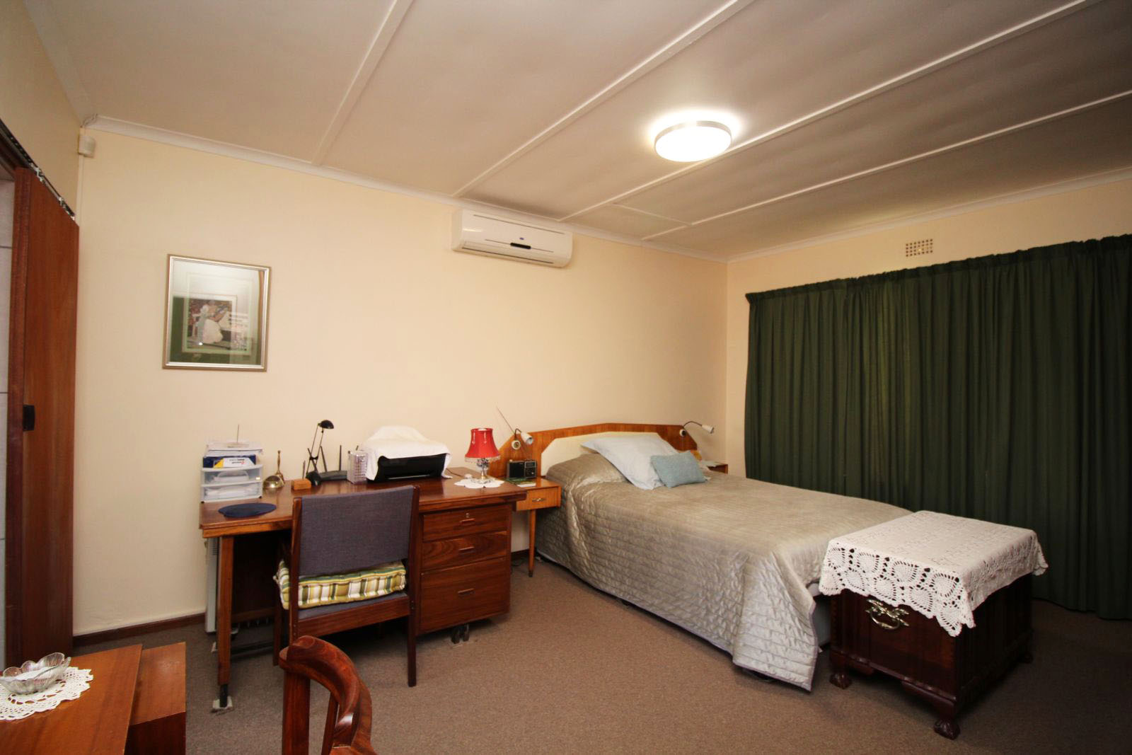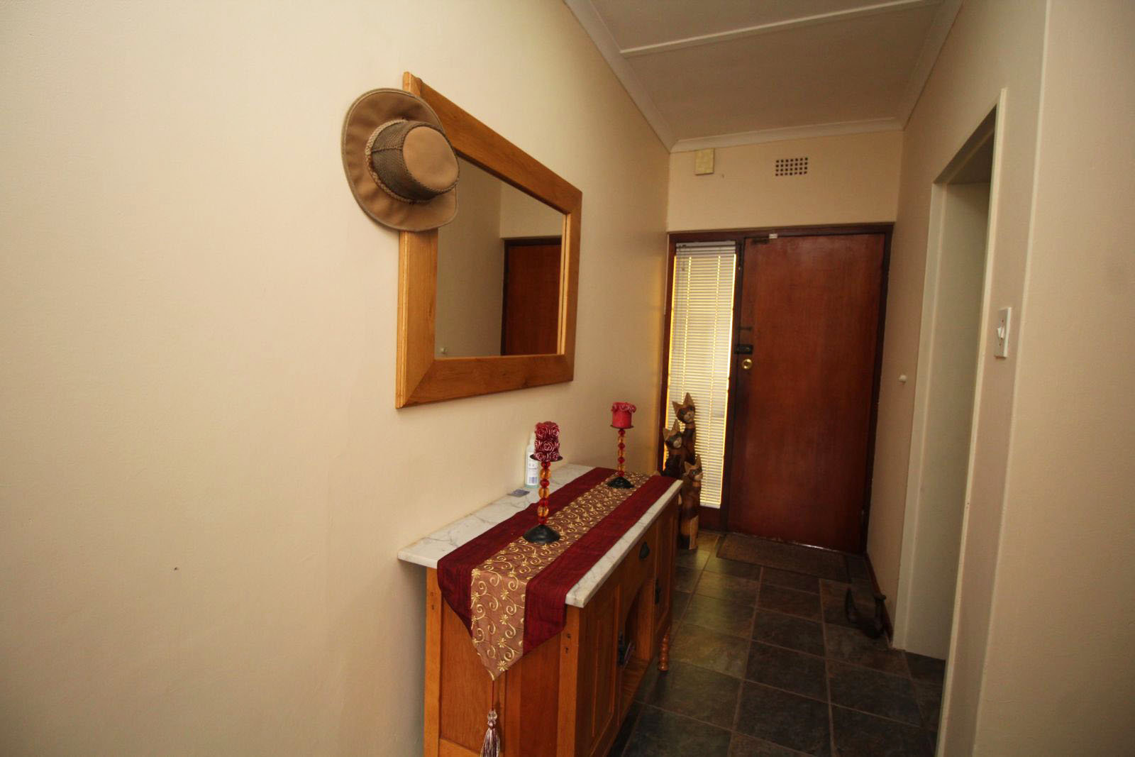 Adjacent to the lounge is the open-plan dining area and gourmet kitchen, both enhanced by beautiful notti pine ceilings. The kitchen is well-appointed with ample built-in cupboards, including a generous corner pantry, fitted blinds, washing machine and dishwasher points inside the copbaords, an island breakfast nook with hob, and a built-in oven just below eye level.