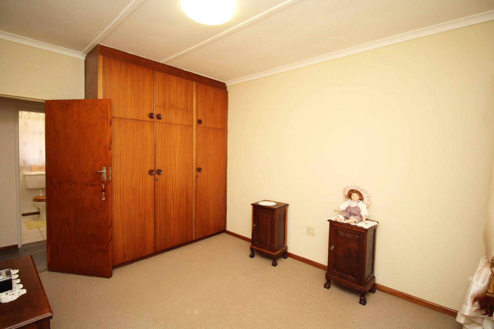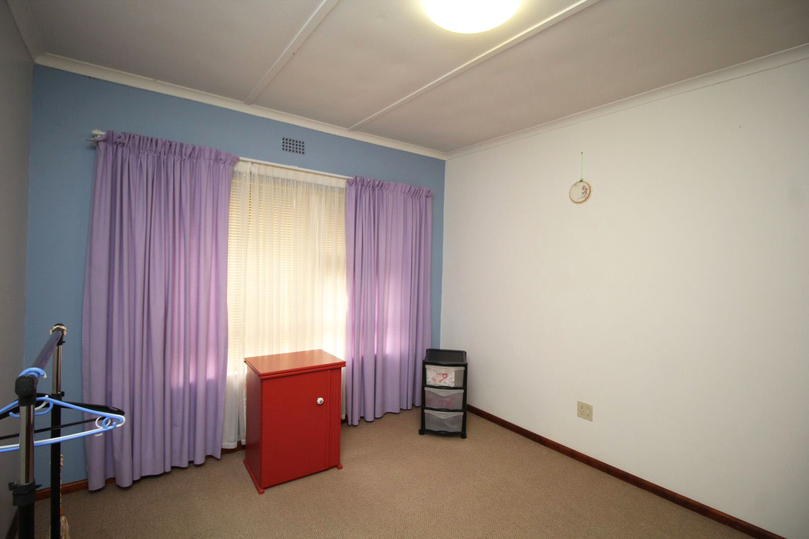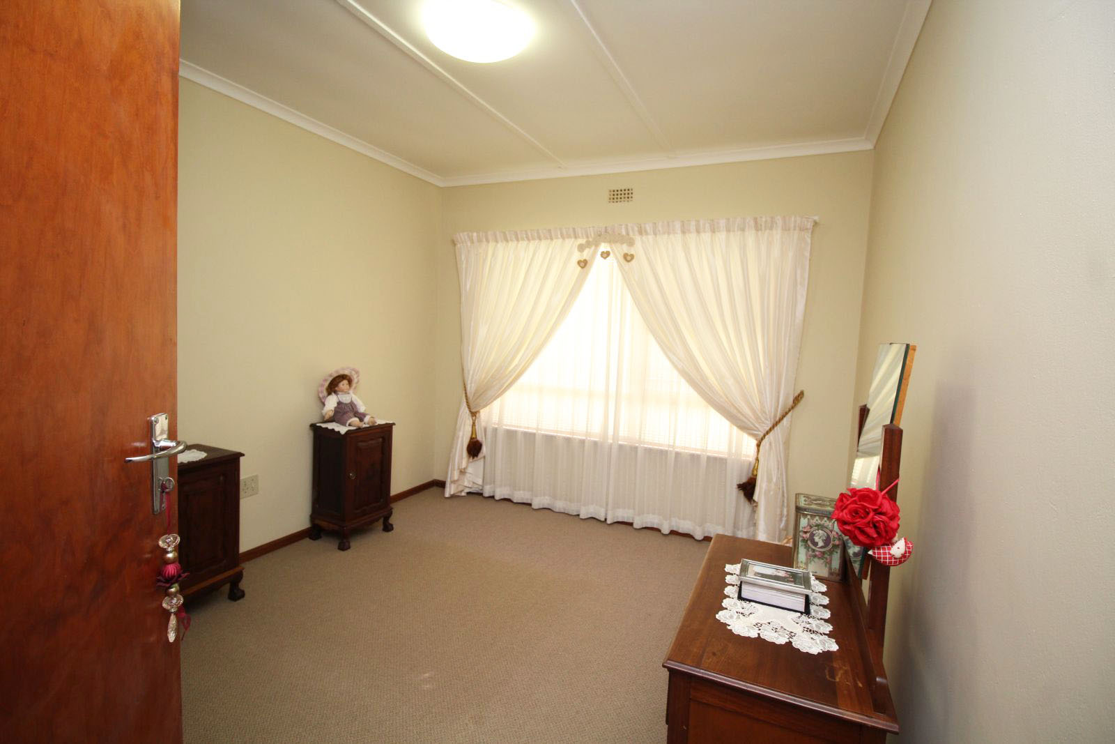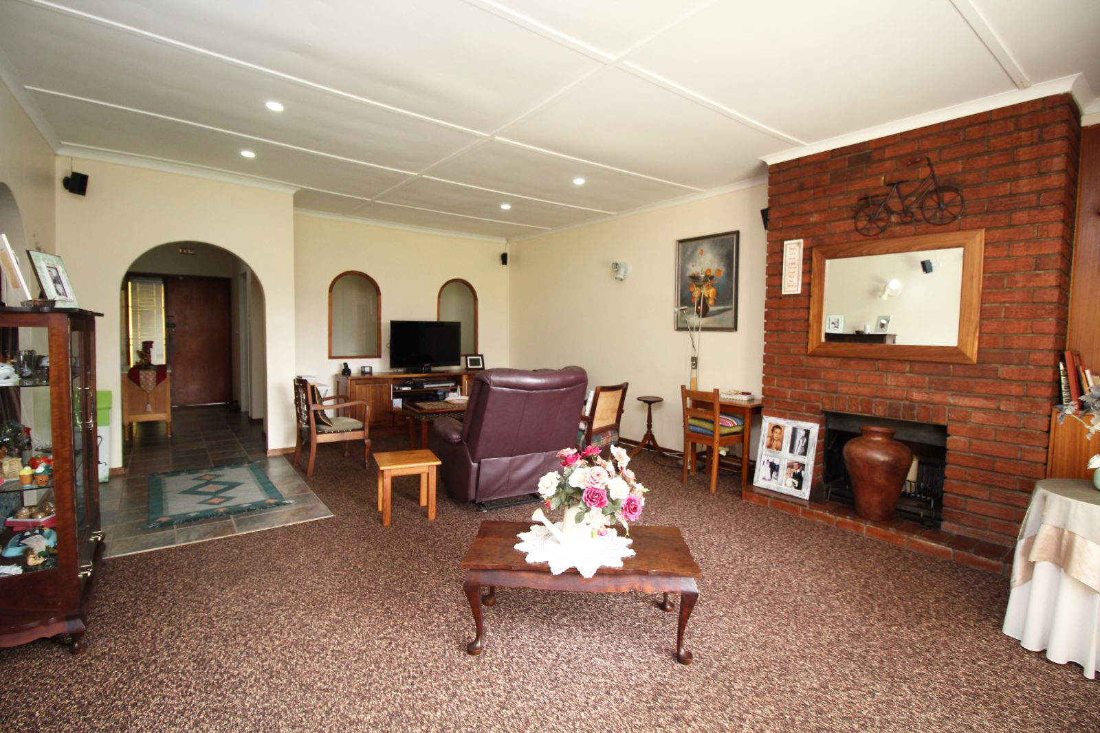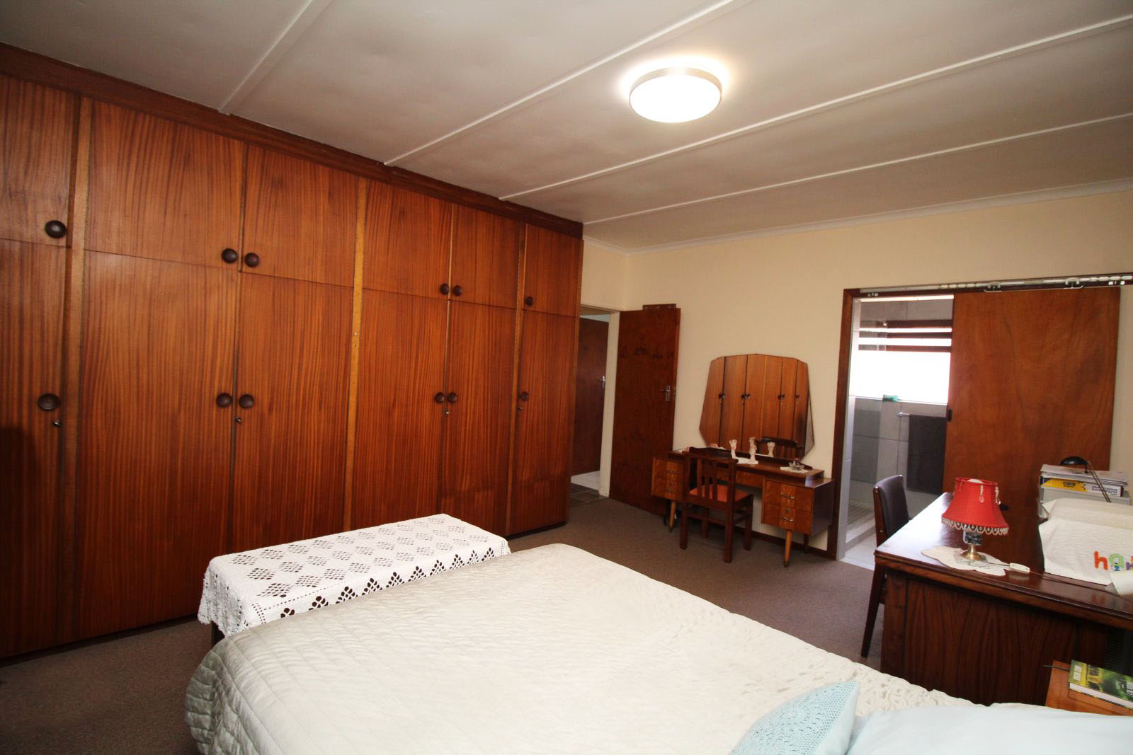 The lounge features a rustic facebrick gas fireplace, flanked by solid wood shelving and cupboards, creating a warm and inviting ambiance. From here, sliding doors lead to a tiled braai room—an entertainer’s dream—boasting solid wood finishes, built-in cupboards, and seamless flow to the expansive, lush backyard via aluminium sliding doors. The large garden is perfect for children and pets, and offers ample space to install a swimming pool—ideal for a growing family.