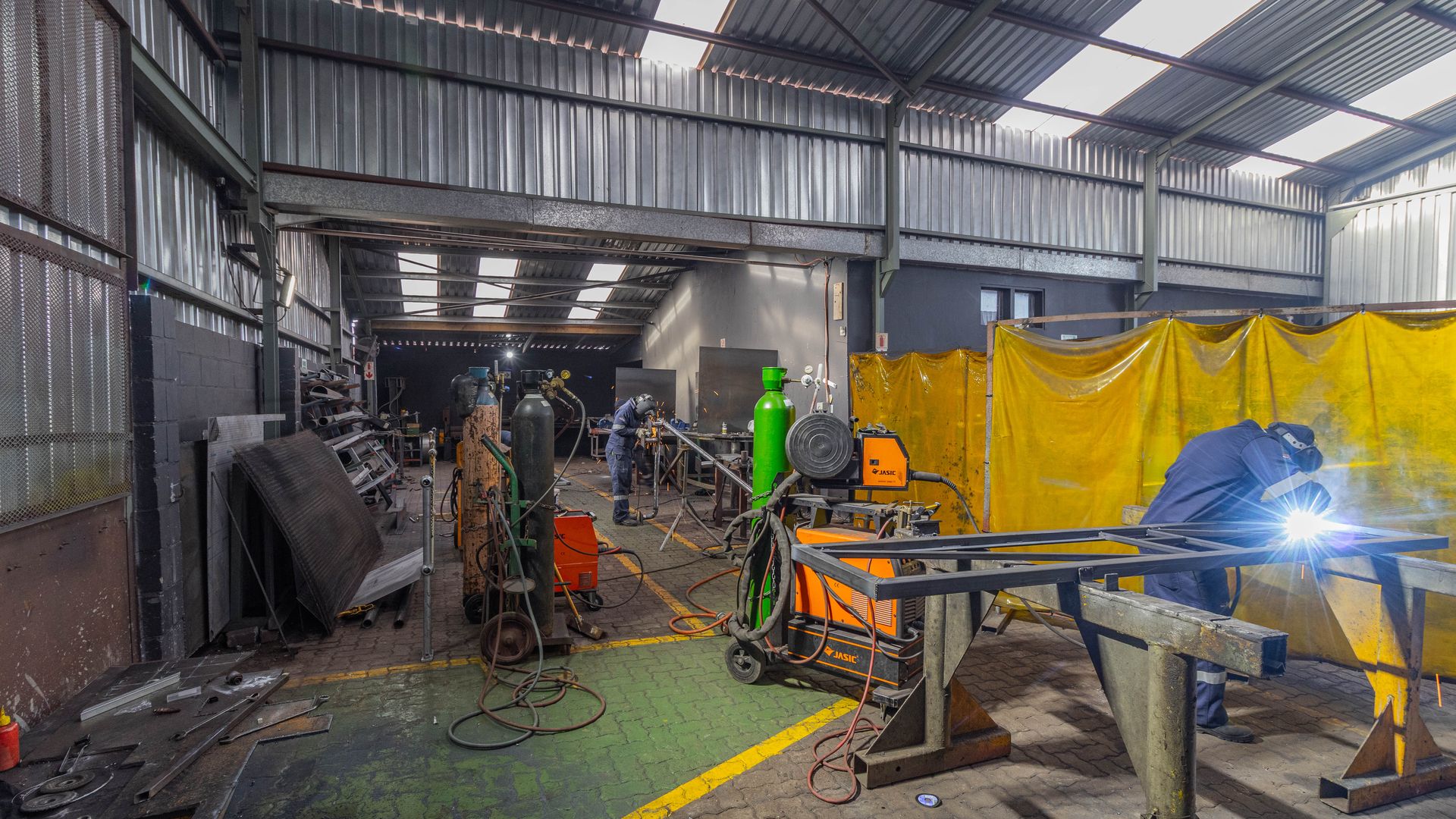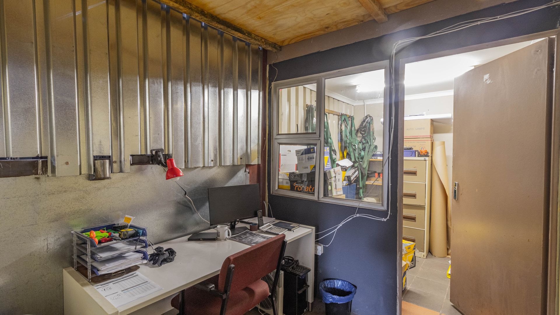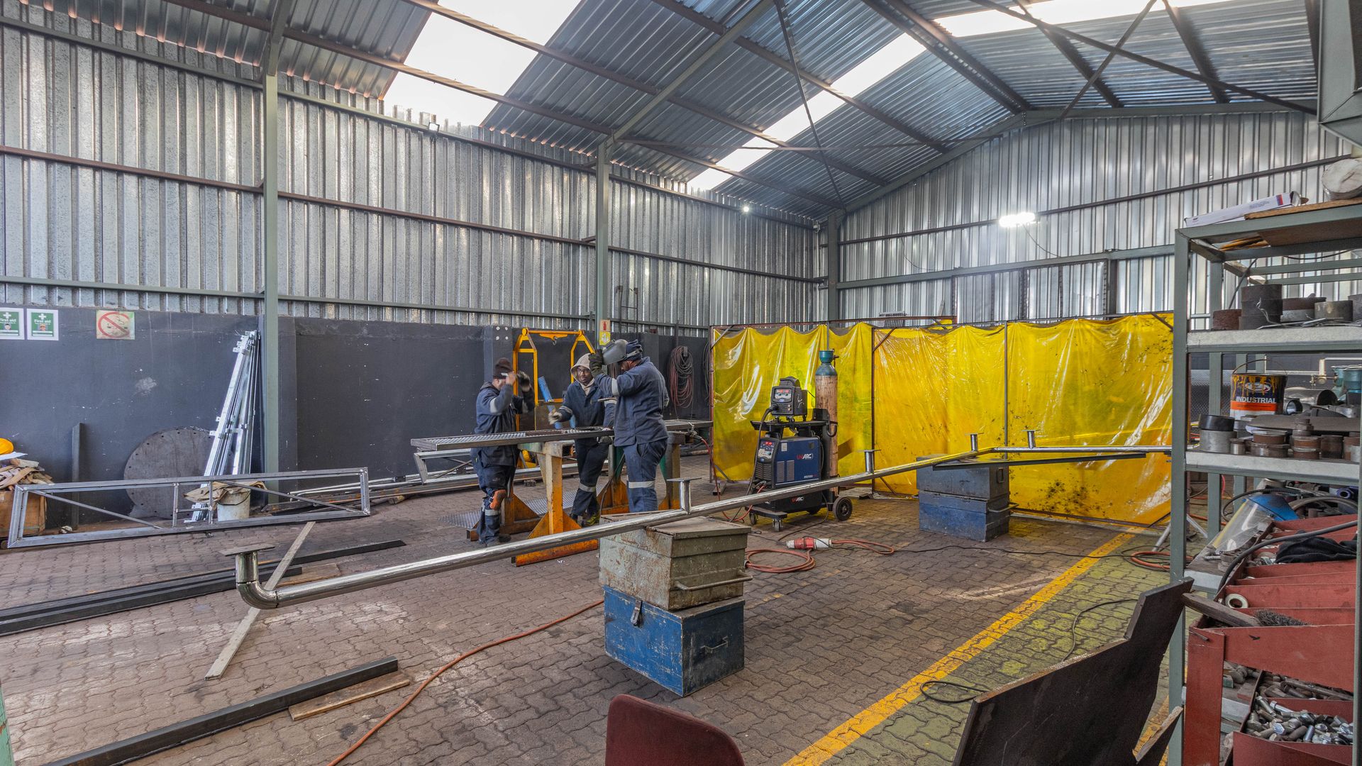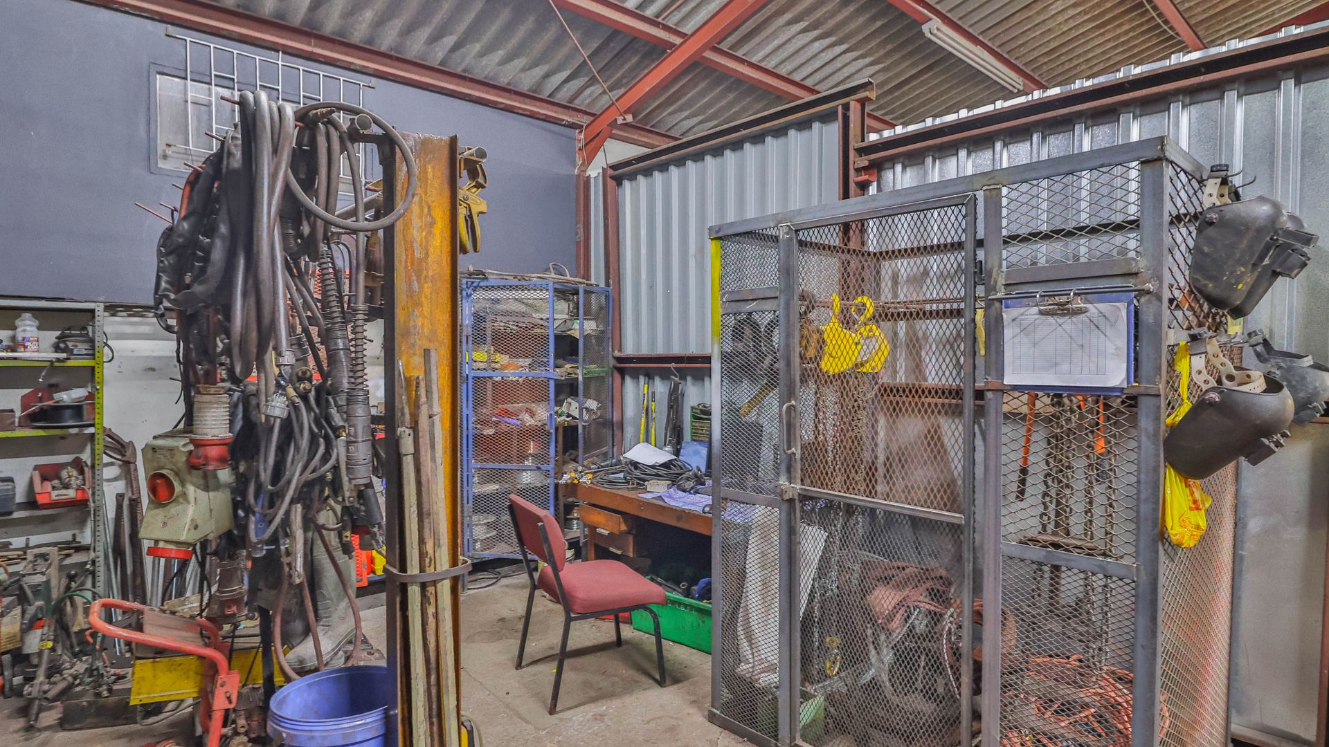- The workshop offers ample entry space and large doors, making it ideal for industrial and manufacturing use