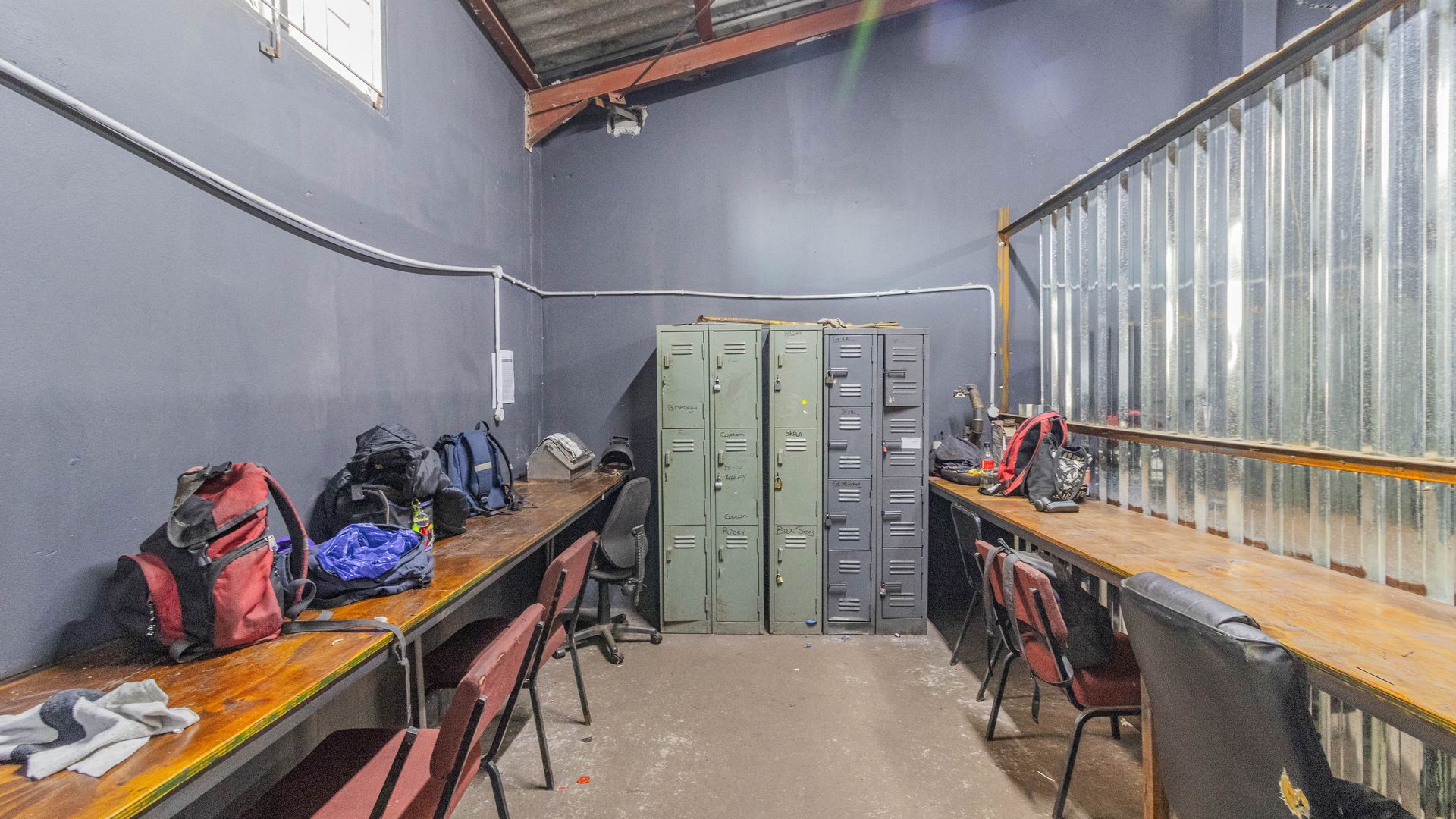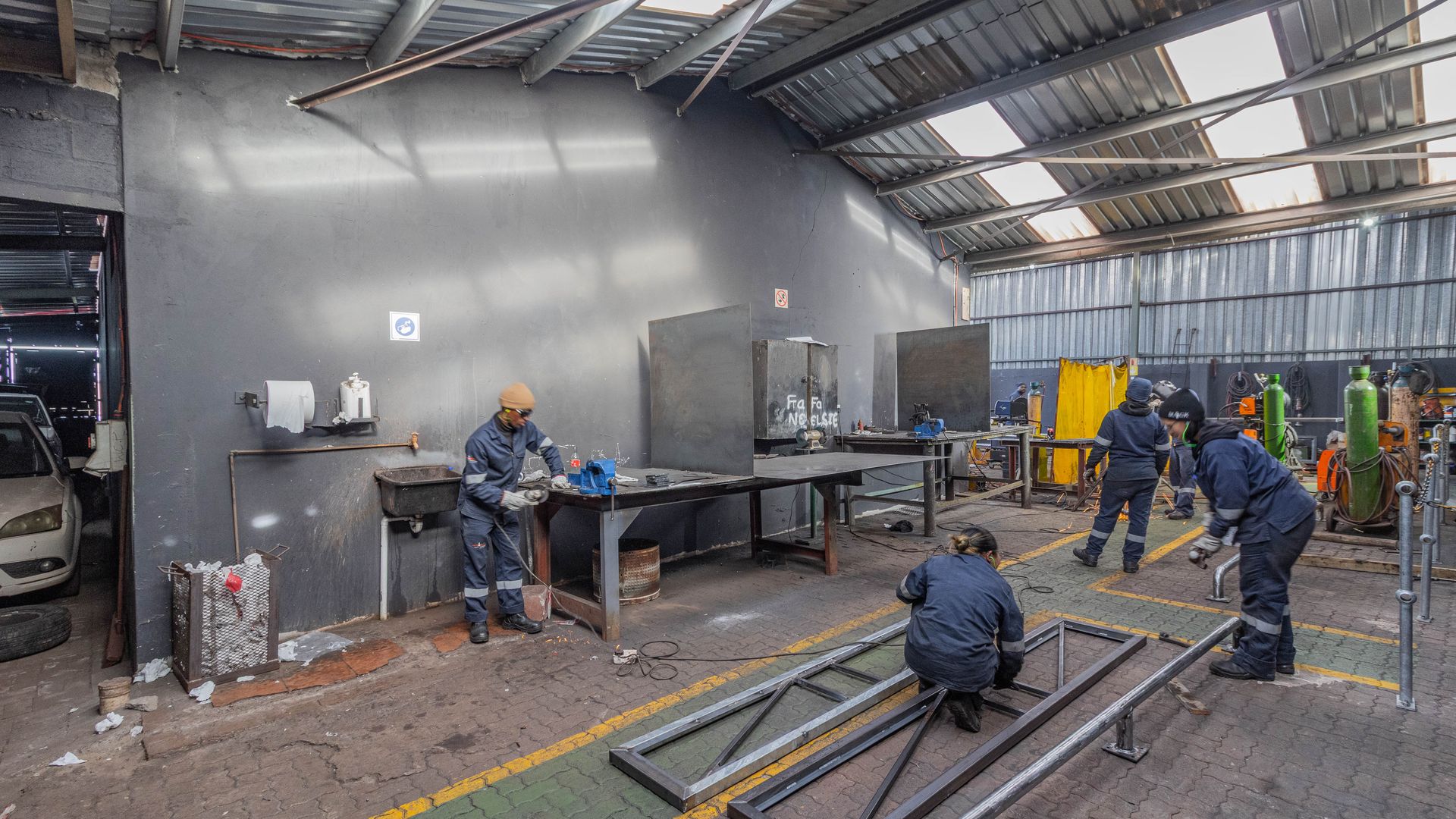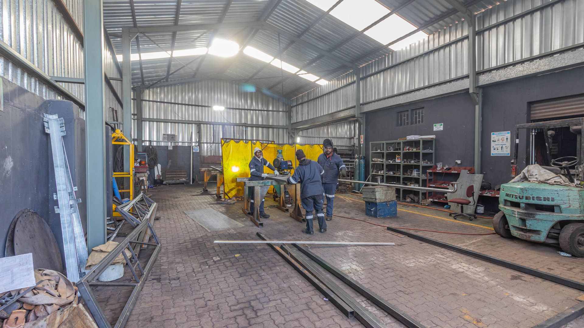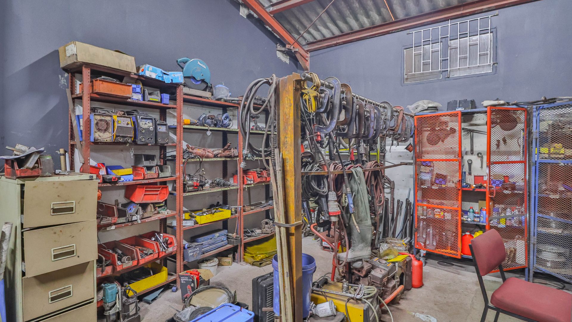 - The workshop offers ample entry space and large doors, making it ideal for industrial and manufacturing use