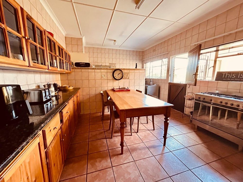 This house is perfect for a large family, with its big lounge, large windows, and a fireplace. The separate dining room provides direct access to the beautifully laid out garden, which overlooks the sparkling pool. The open plan lounge and kitchen are also very spacious, with plenty of built-in cupboards equipped with granite tops, an oven, stove, and separate scullery. The sunroom, located outside the kitchen, could easily be used as a laundry or gym area, with direct access into the automated two-vehicle garage.