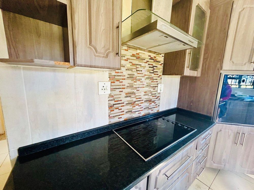 The kitchen is well-appointed with built-in cupboards, a fitted stove, and a convenient breakfast nook. The spacious open-plan lounge and dining area provide the perfect setting for family gatherings and entertainment. The property is fully fenced with an electric gate for added security. Additionally, a JOJO tank will be included in the sale.