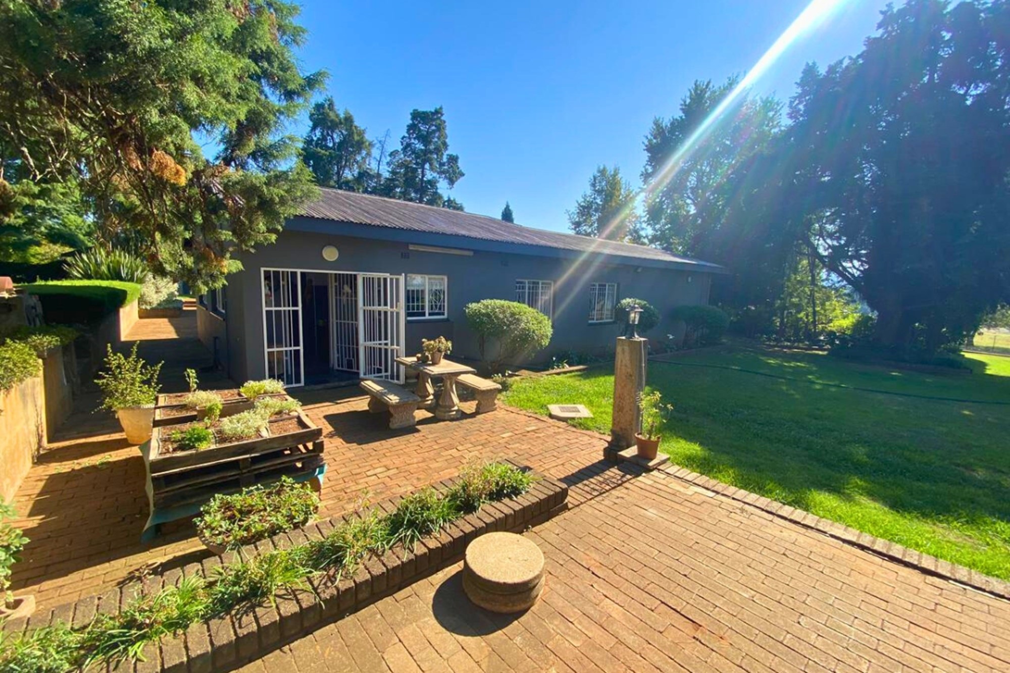 The main house offers modern amenities and an inviting outdoor entertainment area, making it an ideal space for relaxation and hosting guests. A separate flat provides additional accommodation, either for visitors or rental income.