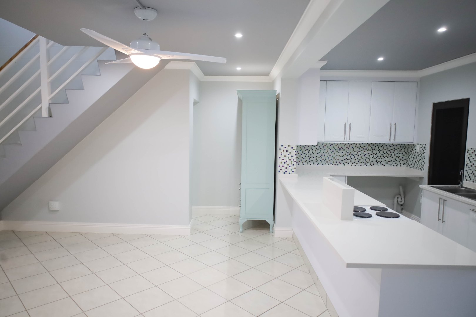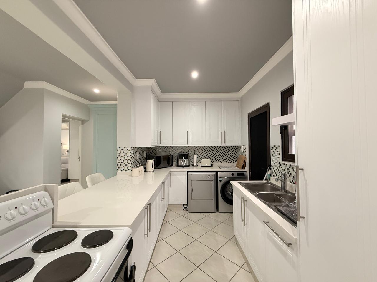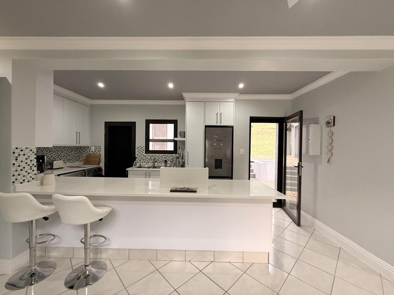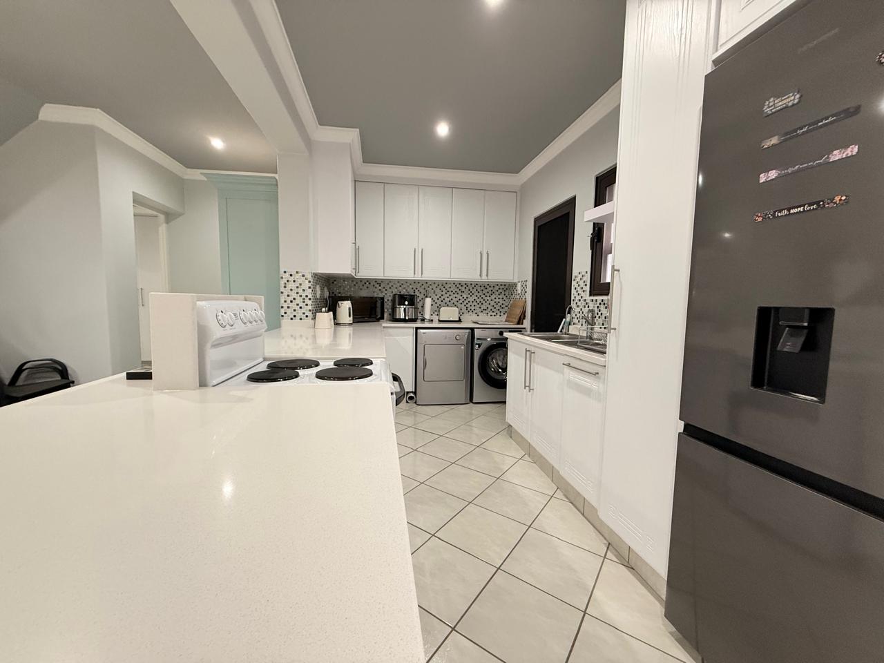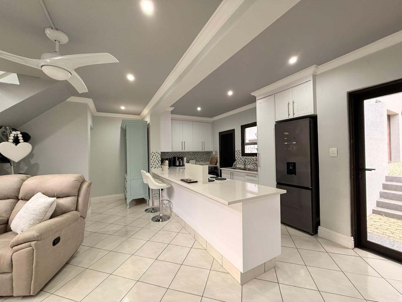 The expansive living space caters to both relaxation and entertainment. The modern open plan kitchen is a chefs delight and ample counter space.