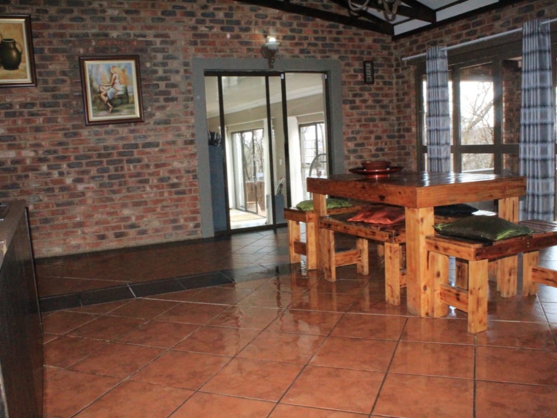 This smallholding is 4.05 hectares in size and consists of a family residence with lovely and bright open plan living and dining area flowing to a neat kitchen. A second kitchen allows for catering. Three bedrooms with two bathrooms. A lovely patio with built-in braai overlooking the veld.