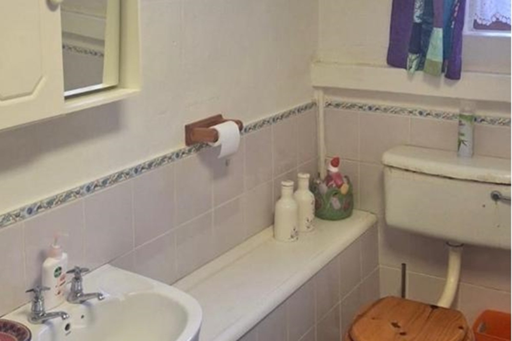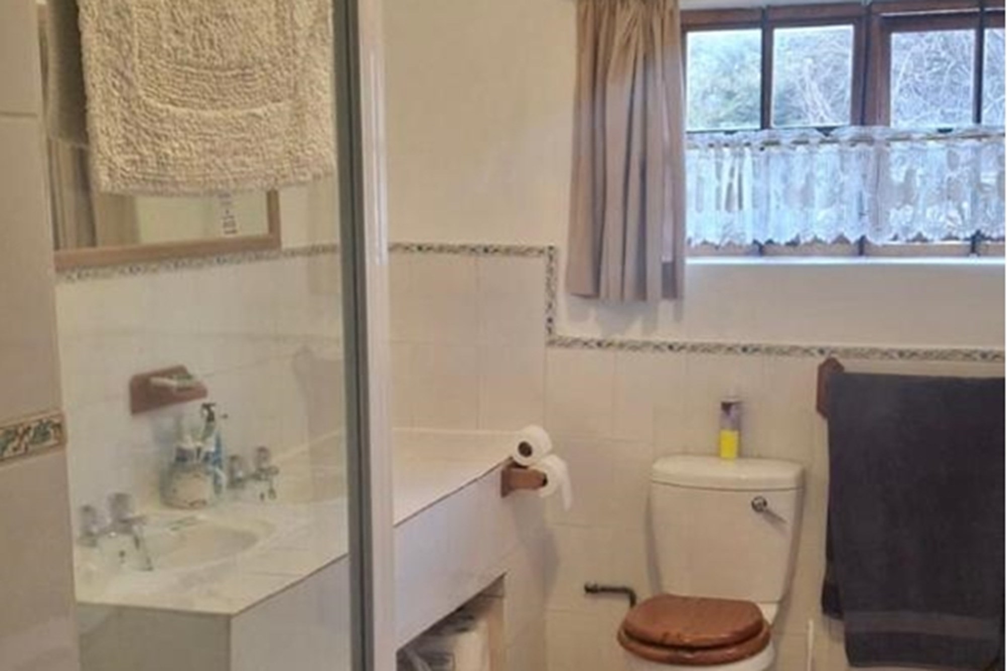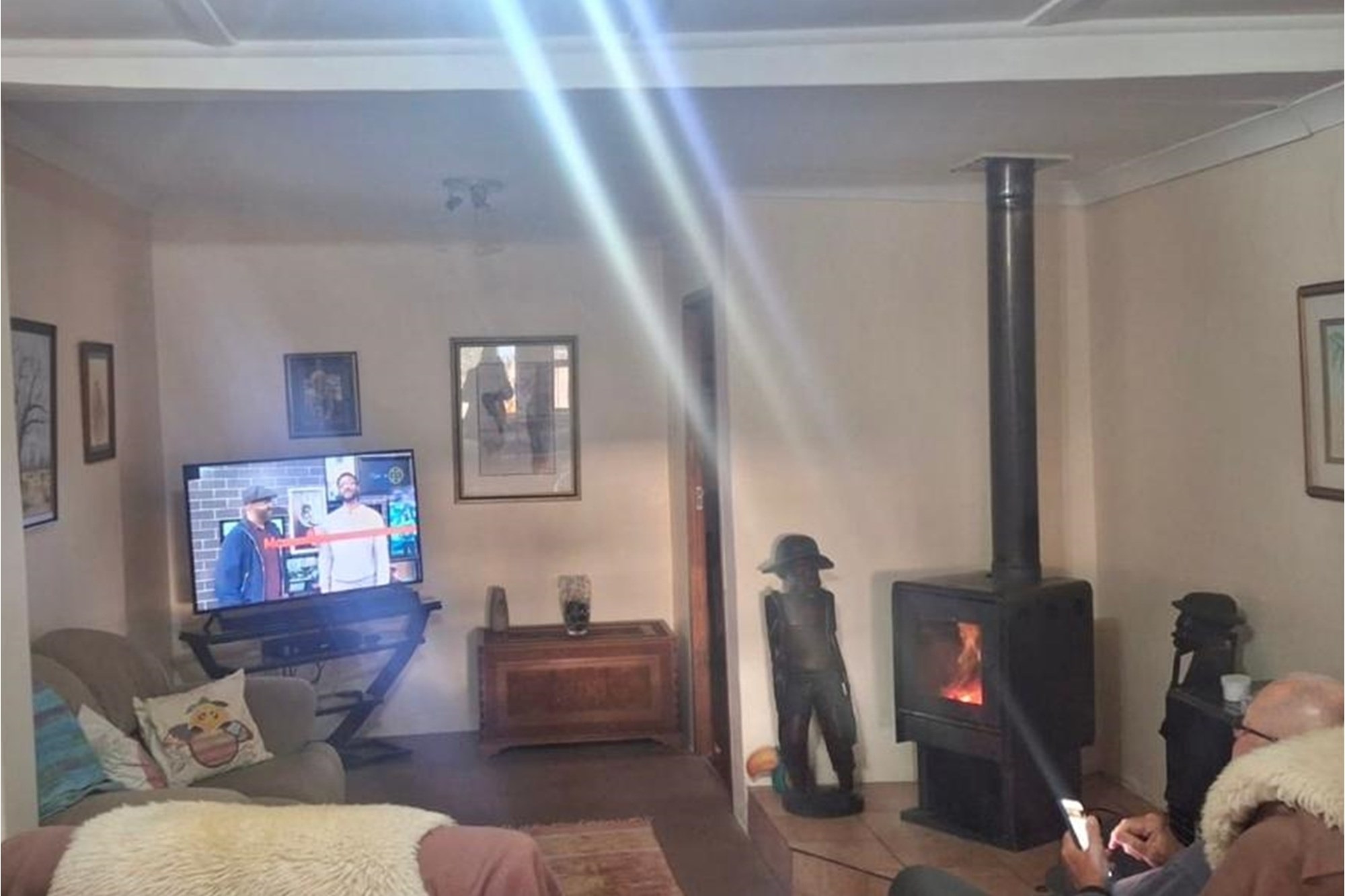 Step inside to warm wooden floors and a sunlit living room, where solid wooden window frames throughout the home add rustic charm and timeless appeal.