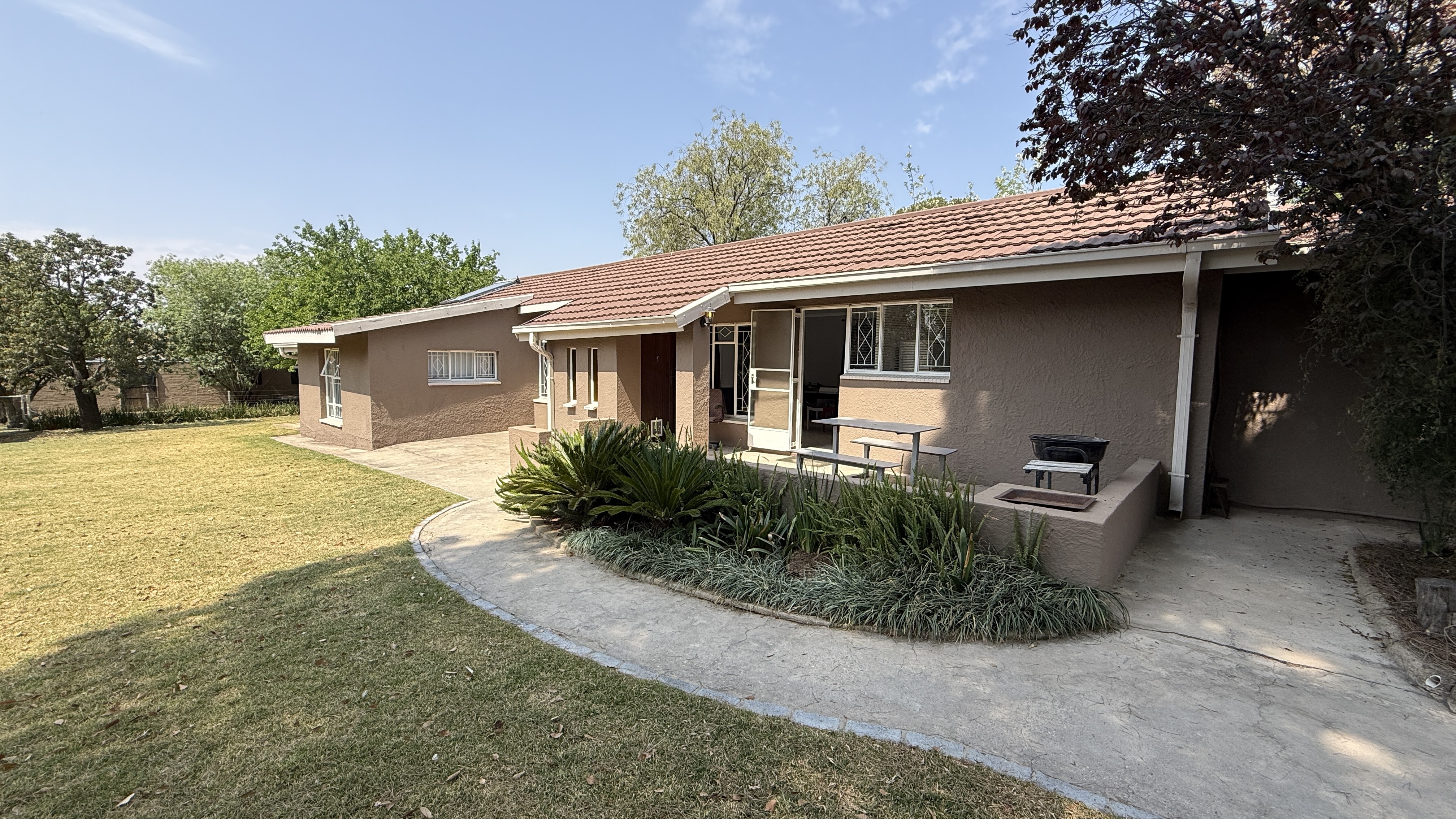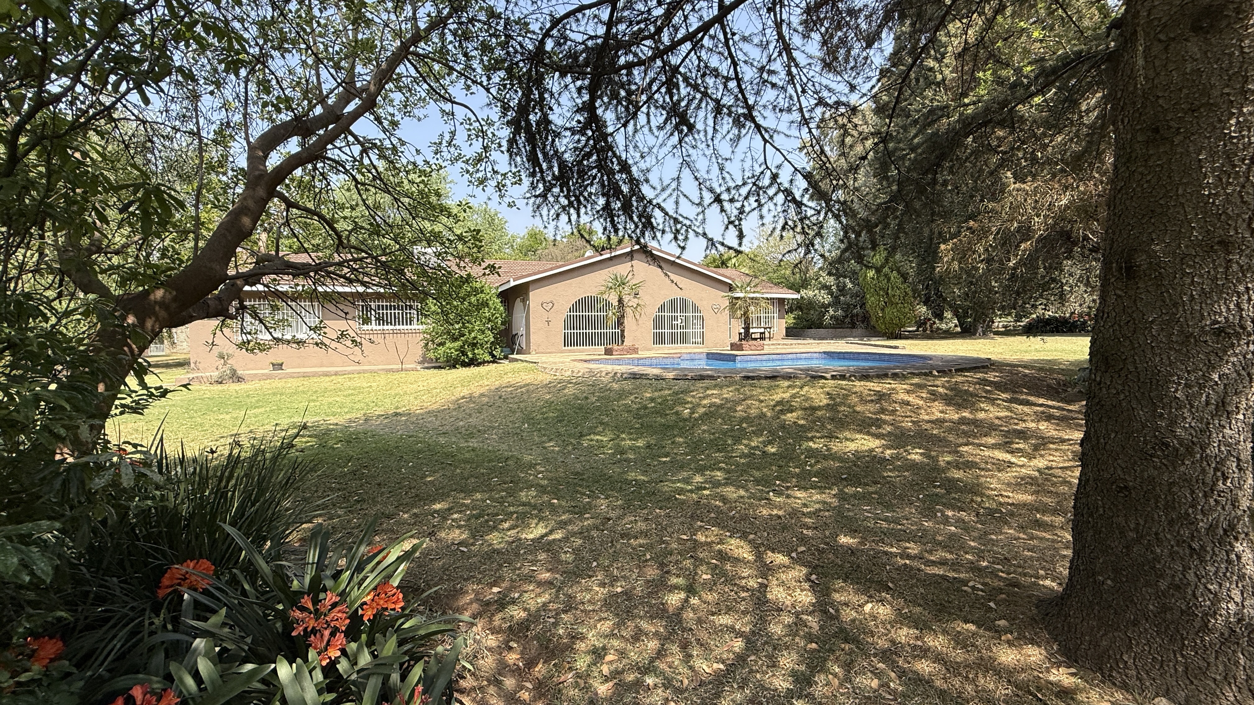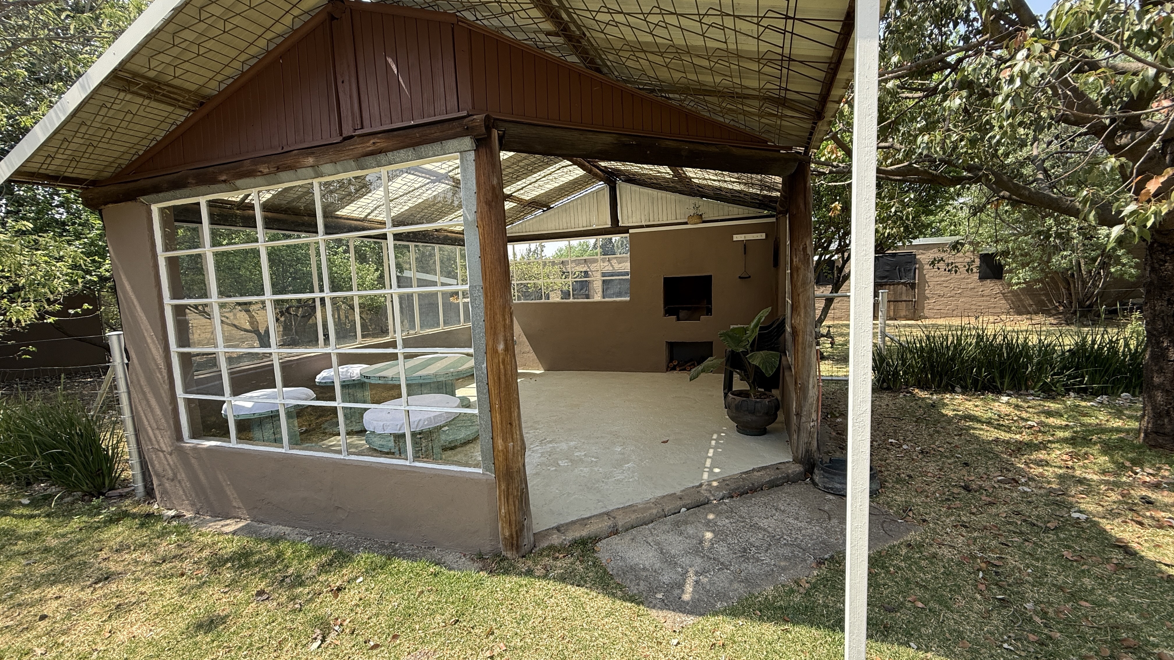 This beautifully maintained smallholding in Walkerville offers the perfect balance of luxury living, agricultural opportunity, and income potential. With multiple residences, and a stunning entertainment lapa ideal for events, this property has it all. Property Highlights Main Residence: 4 spacious bedrooms (main en-suite) Large lounge with built-in cupboards & fireplace Dining room & oversized study Covered patio overlooking the gardens and pool Big laundry room, guest bathroom, solar geysers Second House: 2 bedrooms, large lounge & kitchen Bathroom with solar geyser Third House: 2 bedrooms (main en-suite), lounge, kitchen & laundry Additional finished room Sunroom / braai area Bachelor Flat: Neat open-plan kitchen, lounge, bedroom & bathroom Gas geyser Outdoor & Agricultural Features: Thatched entertainment lapa – accommodates ±50 guests, perfect for weddings or functions, complete with built-in bar and surrounded by a picturesque koi pond 375 m2 greenhouse Lucerne paddock with irrigation systems throughout the property 2 strong boreholes, one connected. Extensive fruit trees on the property: pears, quinces, prunes, oranges, apricots, lemons, mulberries & olives 4 stables with tack room Sparkling swimming pool Additional Improvements: Garages for up to 10 vehicles (automated doors) Large workshop with three-phase electricity Staff quarters (2 rooms, kitchen, shower, toilet, solar geyser)