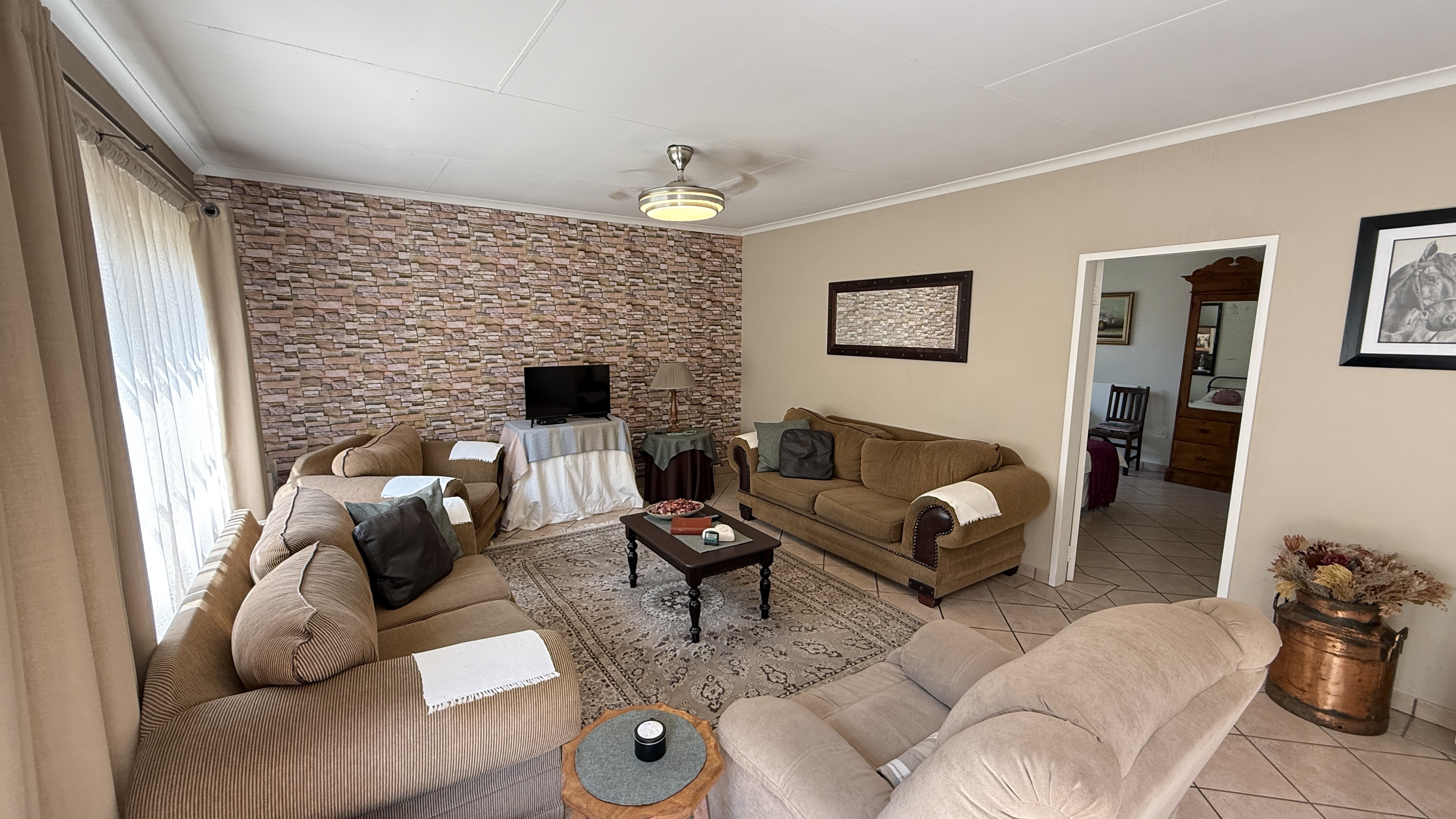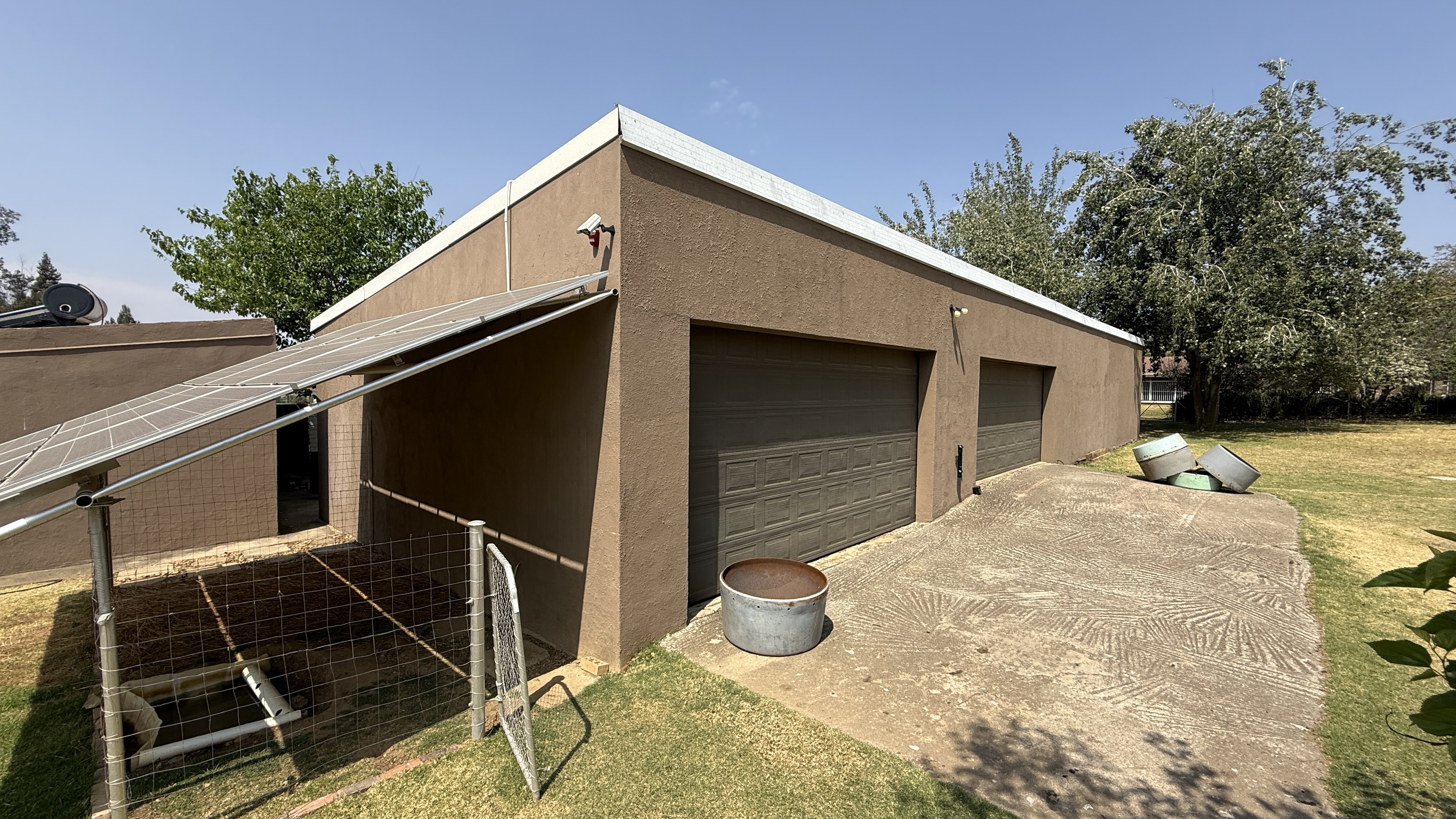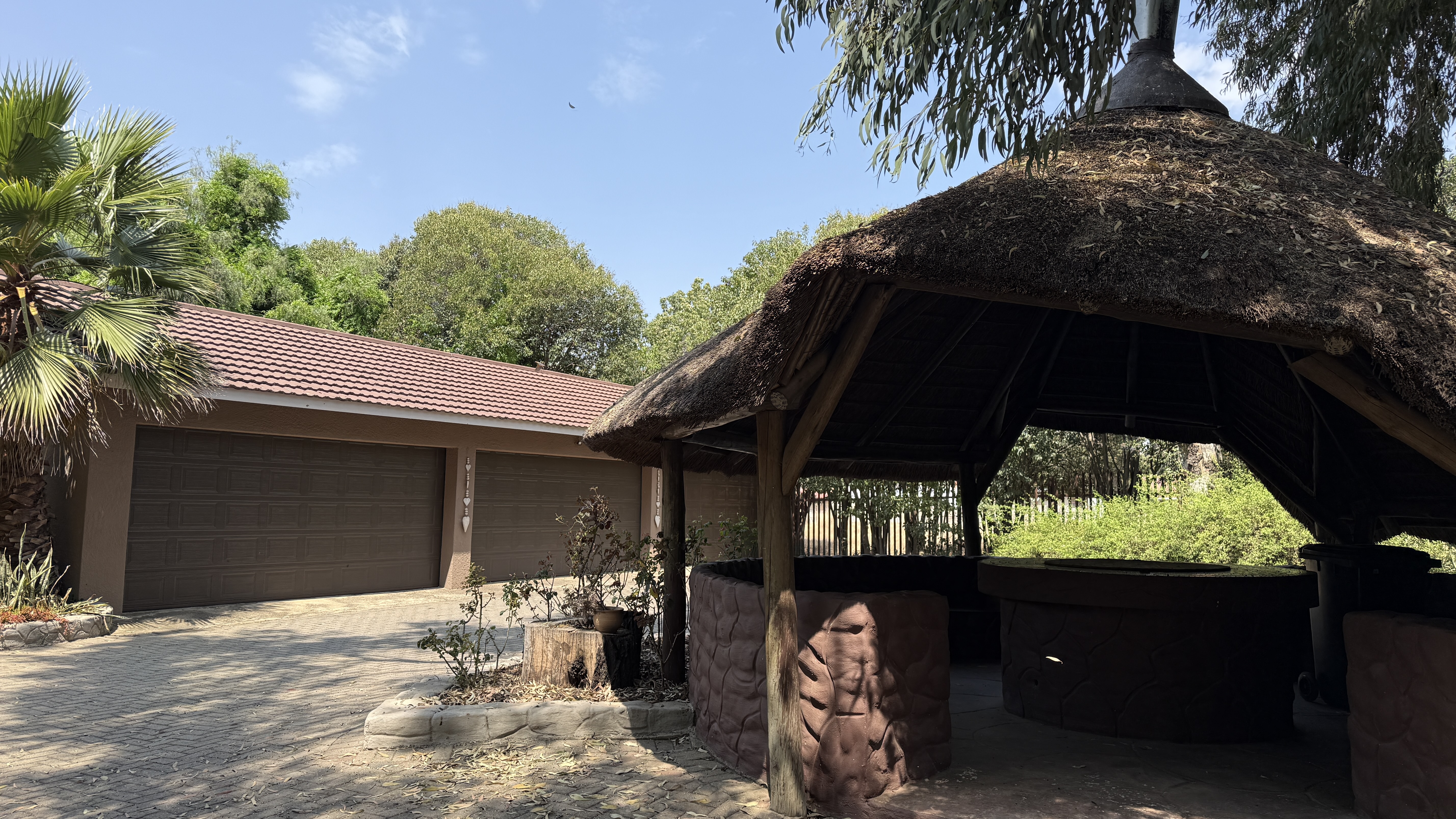This beautifully maintained smallholding in Walkerville offers the perfect balance of luxury living, agricultural opportunity, and income potential. With multiple residences, and a stunning entertainment lapa ideal for events, this property has it all. Property Highlights Main Residence: 4 spacious bedrooms (main en-suite) Large lounge with built-in cupboards & fireplace Dining room & oversized study Covered patio overlooking the gardens and pool Big laundry room, guest bathroom, solar geysers Second House: 2 bedrooms, large lounge & kitchen Bathroom with solar geyser Third House: 2 bedrooms (main en-suite), lounge, kitchen & laundry Additional finished room Sunroom / braai area Bachelor Flat: Neat open-plan kitchen, lounge, bedroom & bathroom Gas geyser Outdoor & Agricultural Features: Thatched entertainment lapa – accommodates ±50 guests, perfect for weddings or functions, complete with built-in bar and surrounded by a picturesque koi pond 375 m2 greenhouse Lucerne paddock with irrigation systems throughout the property 2 strong boreholes, one connected. Extensive fruit trees on the property: pears, quinces, prunes, oranges, apricots, lemons, mulberries & olives 4 stables with tack room Sparkling swimming pool Additional Improvements: Garages for up to 10 vehicles (automated doors) Large workshop with three-phase electricity Staff quarters (2 rooms, kitchen, shower, toilet, solar geyser)
