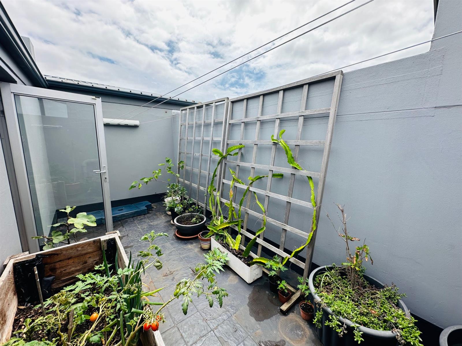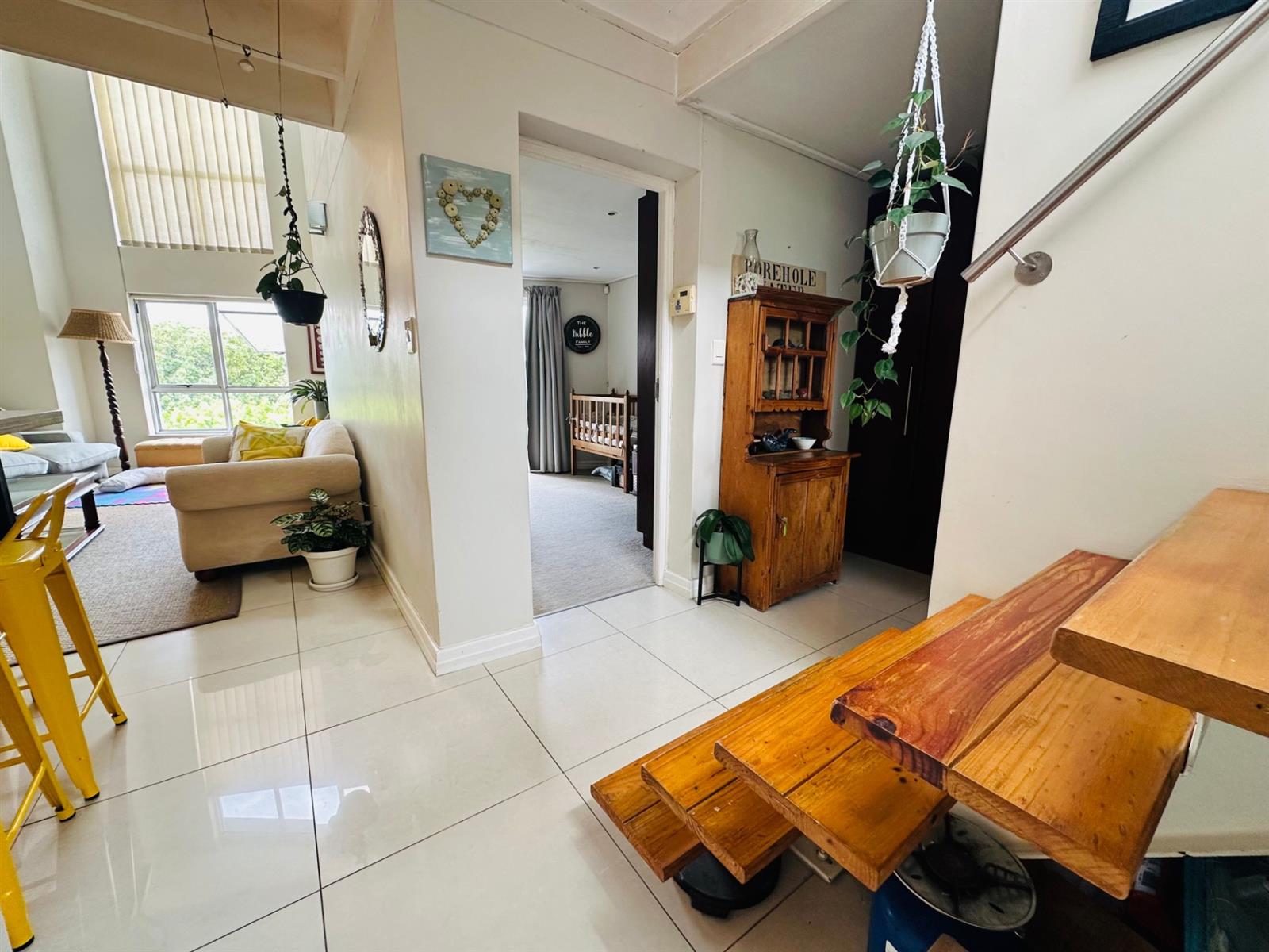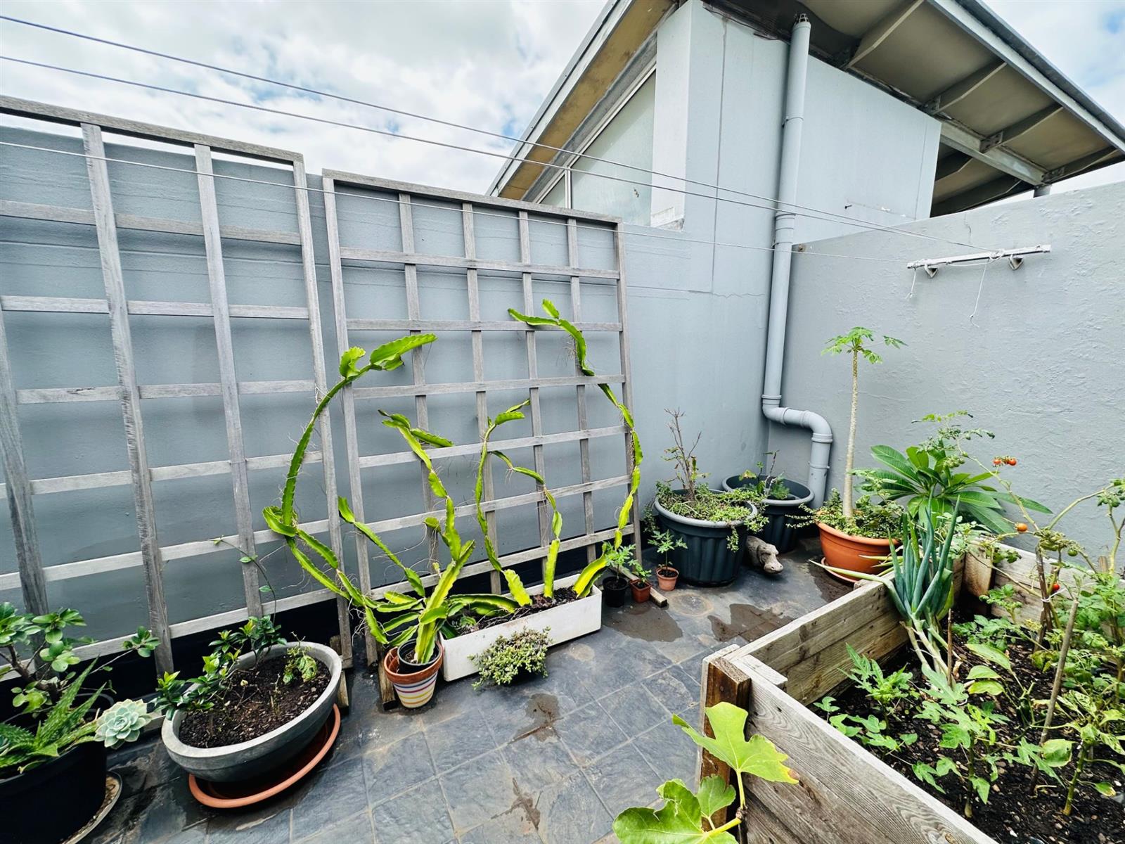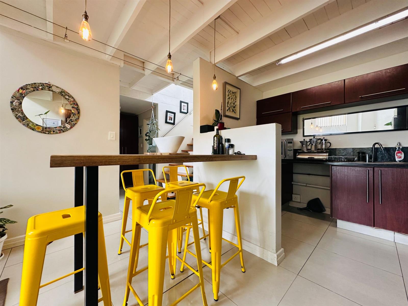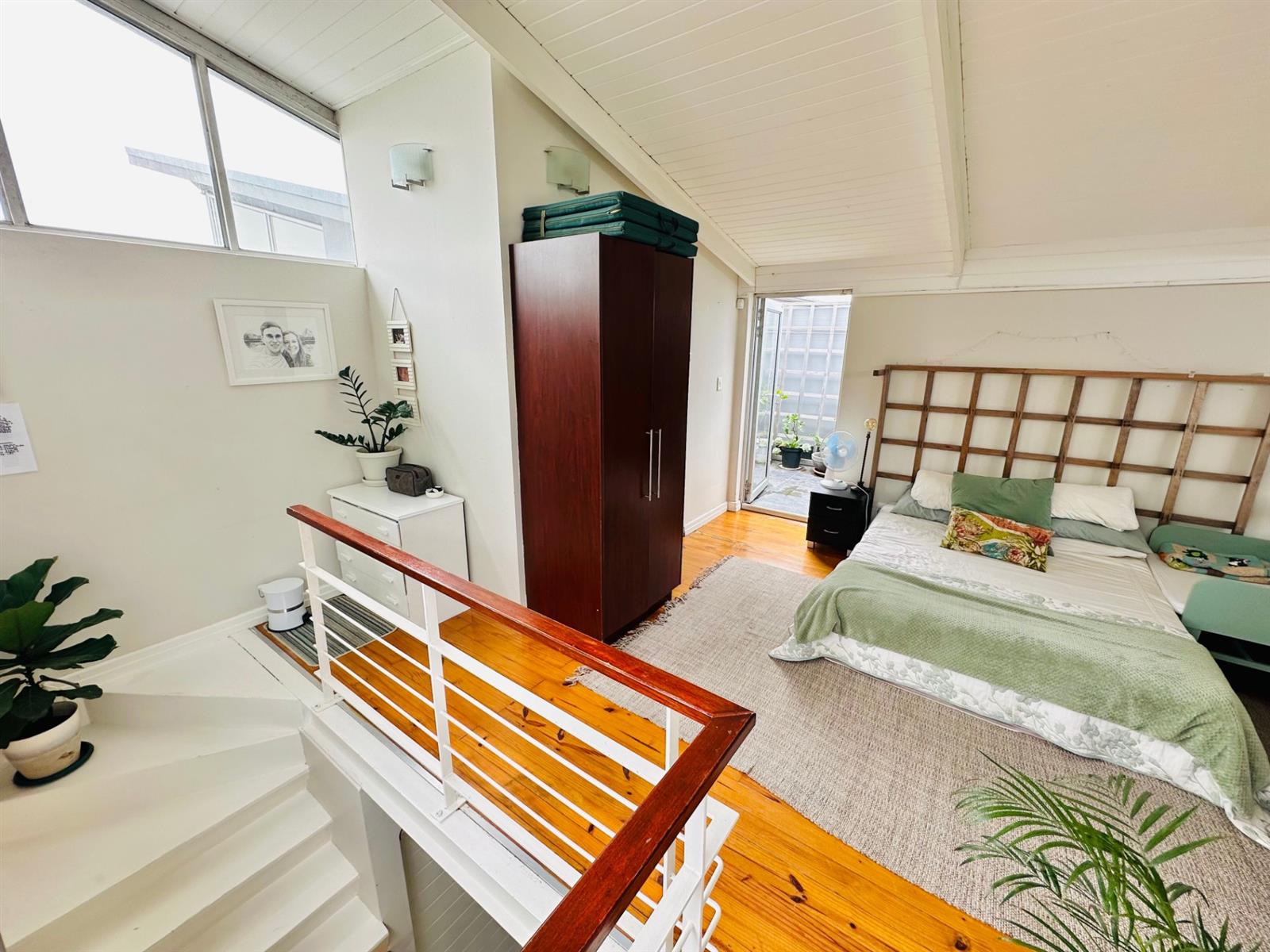 Upstairs, a floating staircase leads to the main bedroom which has a couple of built in cupboards as well as a shower en-suite and not one but two, private balconies flanking the room. The larger balcony has a built-in-braai and some decent southerly views and the smaller balcony is like a “private rooftop drying yard”, which houses the wash line and some plant life.