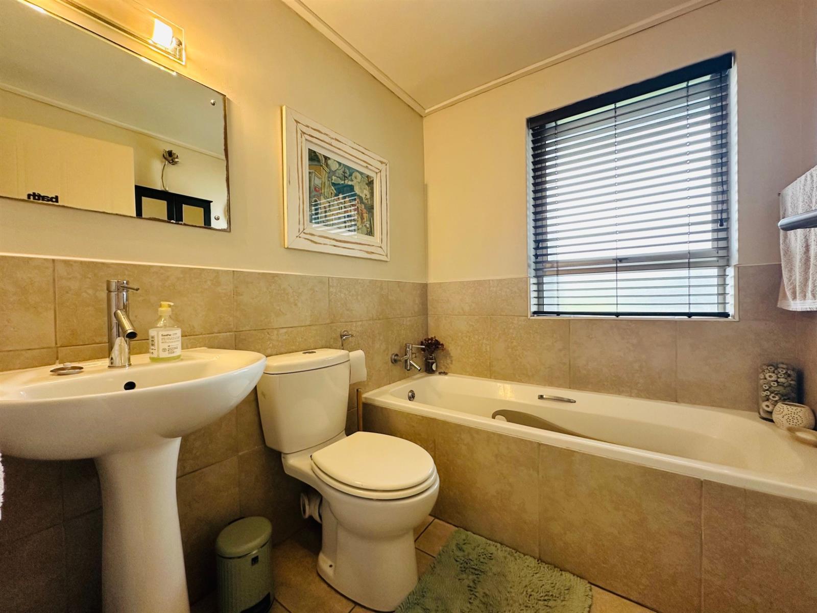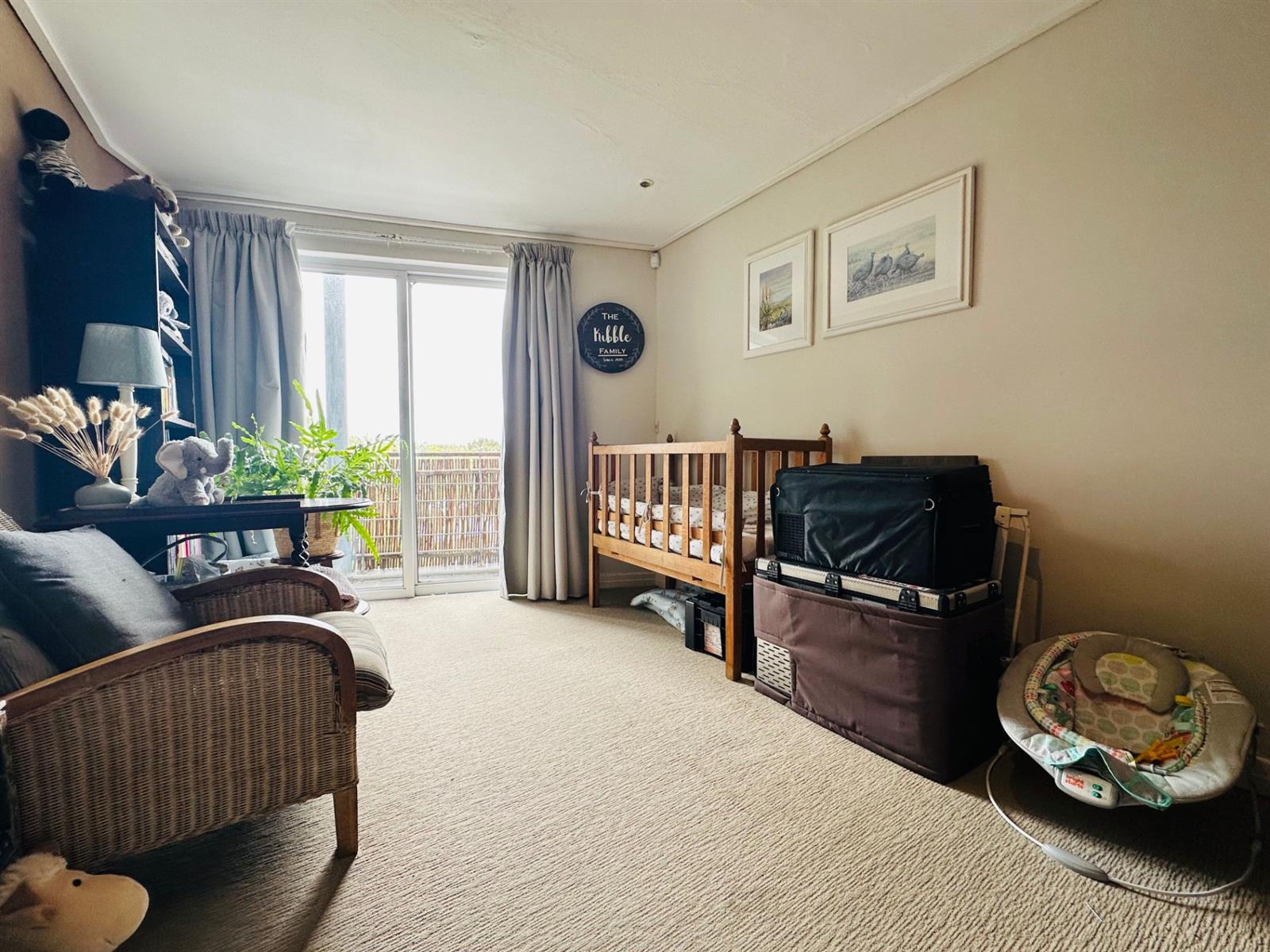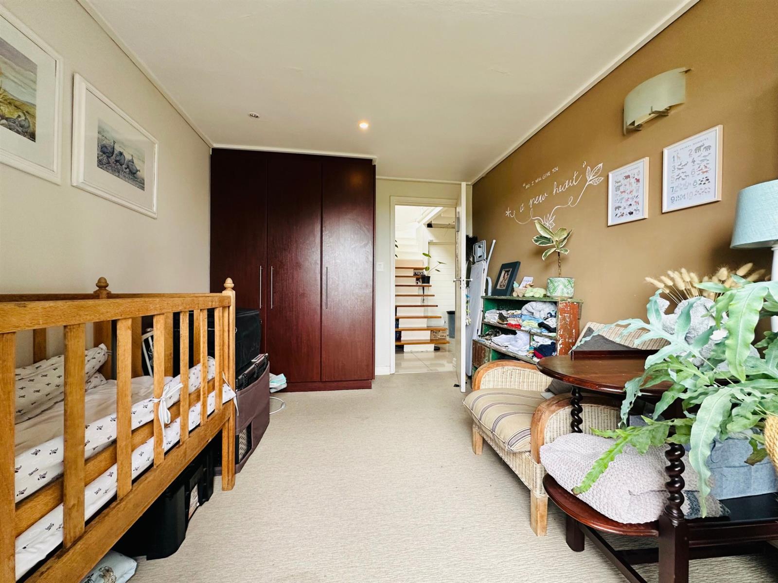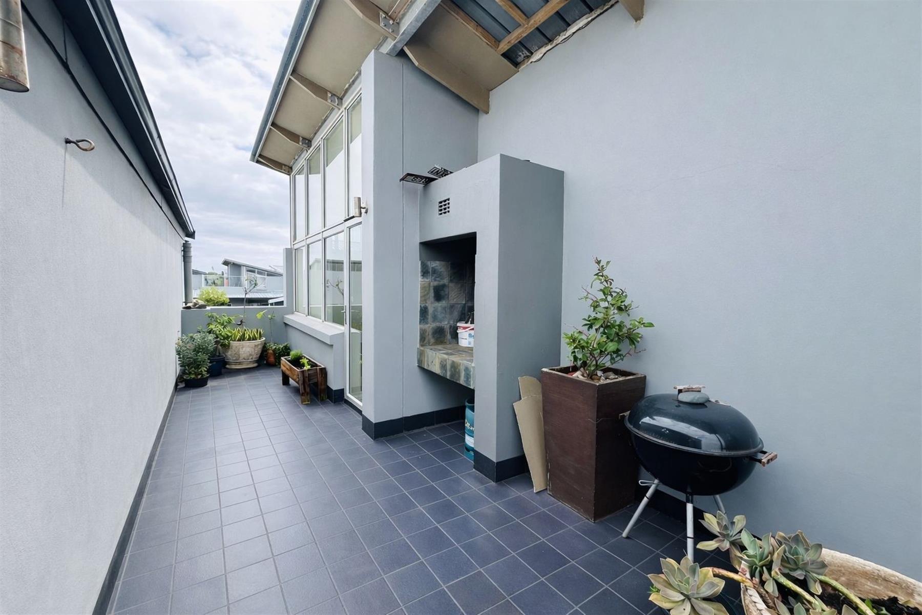 Upstairs, a floating staircase leads to the main bedroom which has a couple of built in cupboards as well as a shower en-suite and not one but two, private balconies flanking the room. The larger balcony has a built-in-braai and some decent southerly views and the smaller balcony is like a “private rooftop drying yard”, which houses the wash line and some plant life.