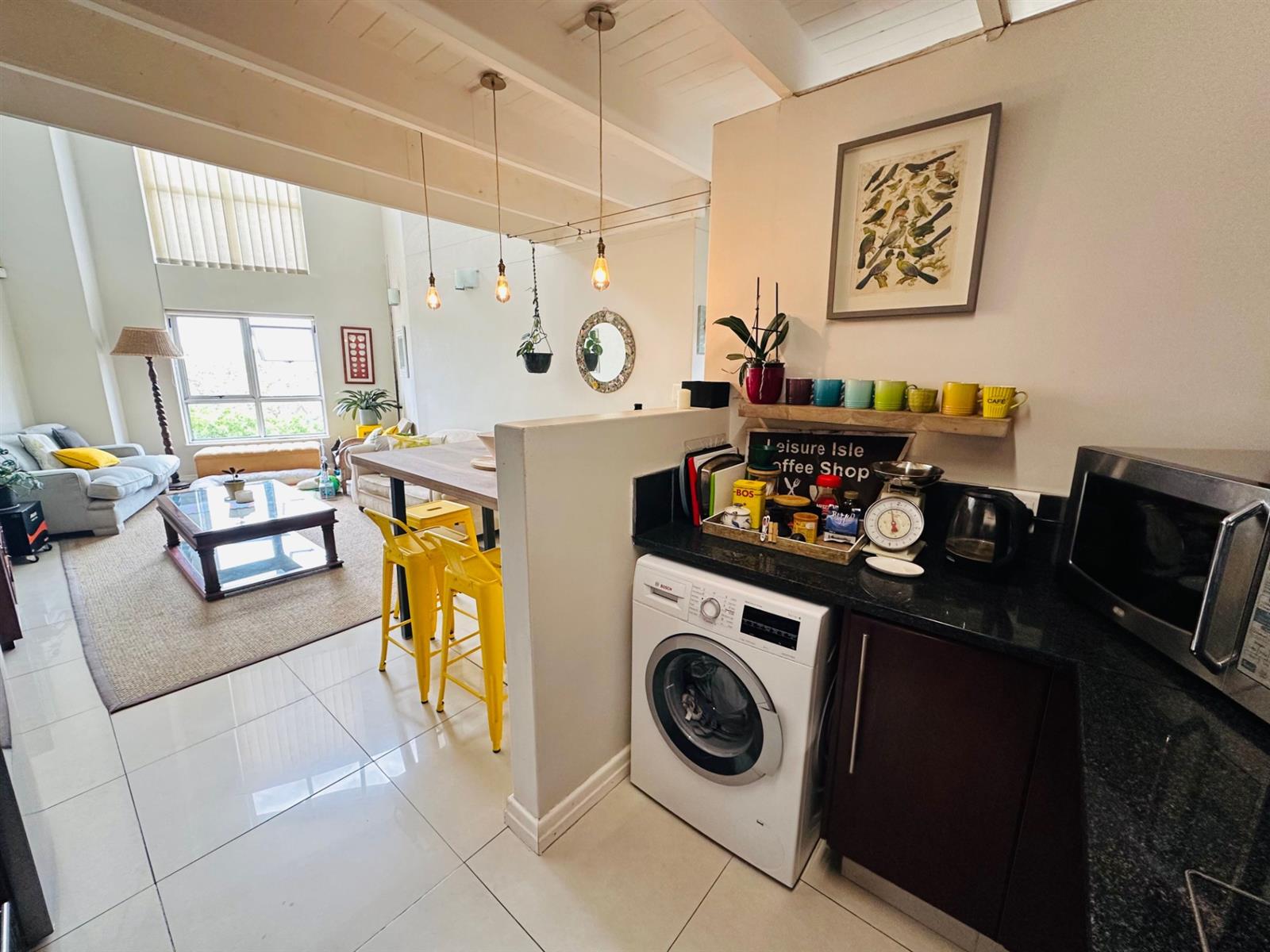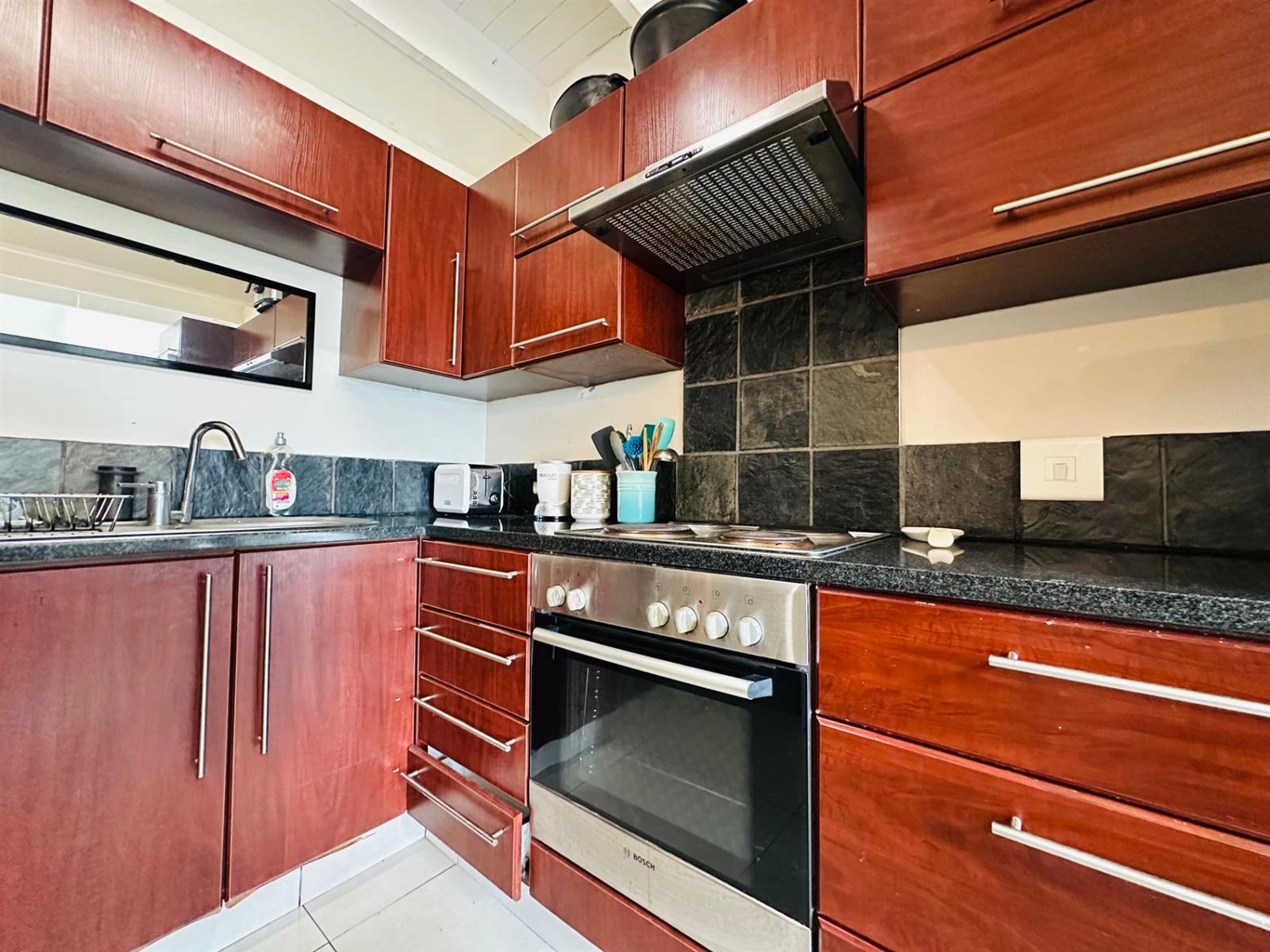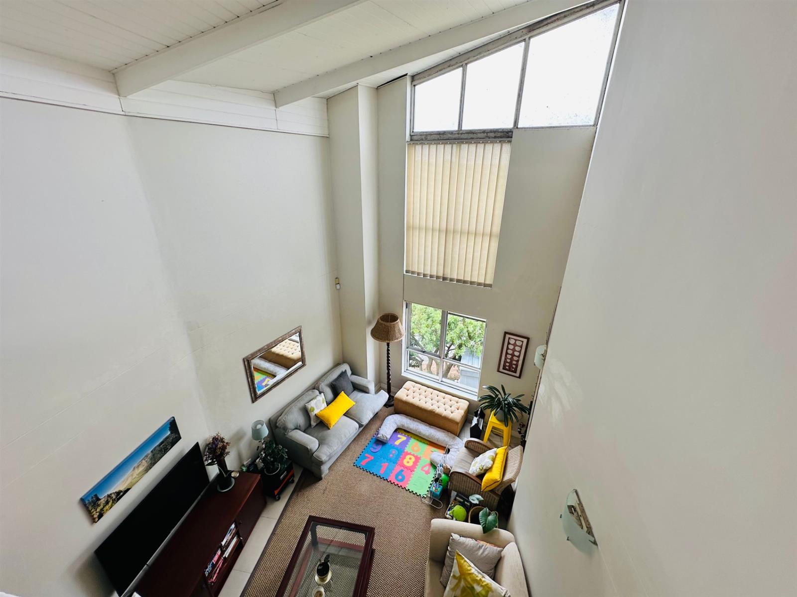 Upon entry to the unit, you’re immediately met by heaps of natural light and can’t help but be drawn into the double-volume living area which drips with appeal. The open plan kitchen has granite countertops, a fitted electric oven and stove as well as a breakfast counter and space for a couple of appliances. Further to this level, is a carpeted bedroom with built in cupboards and a private balcony. The tasteful bathroom offers a toilet, basin and bath.