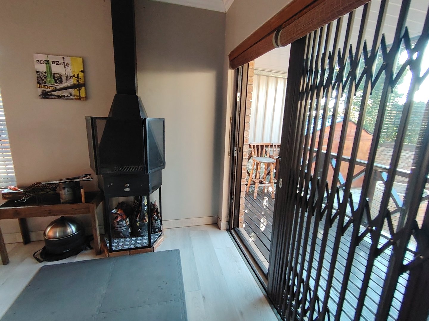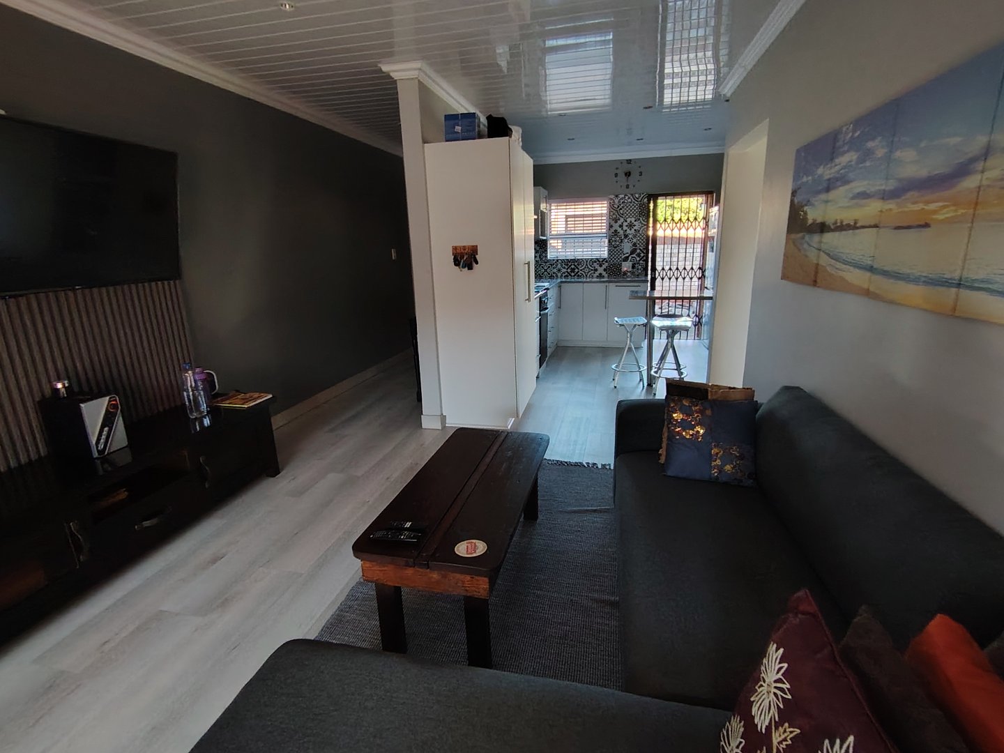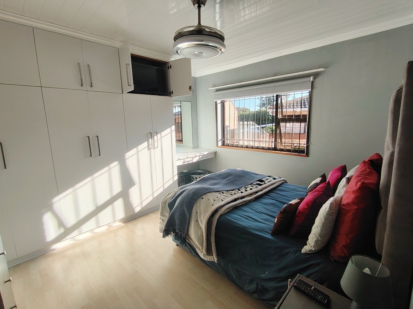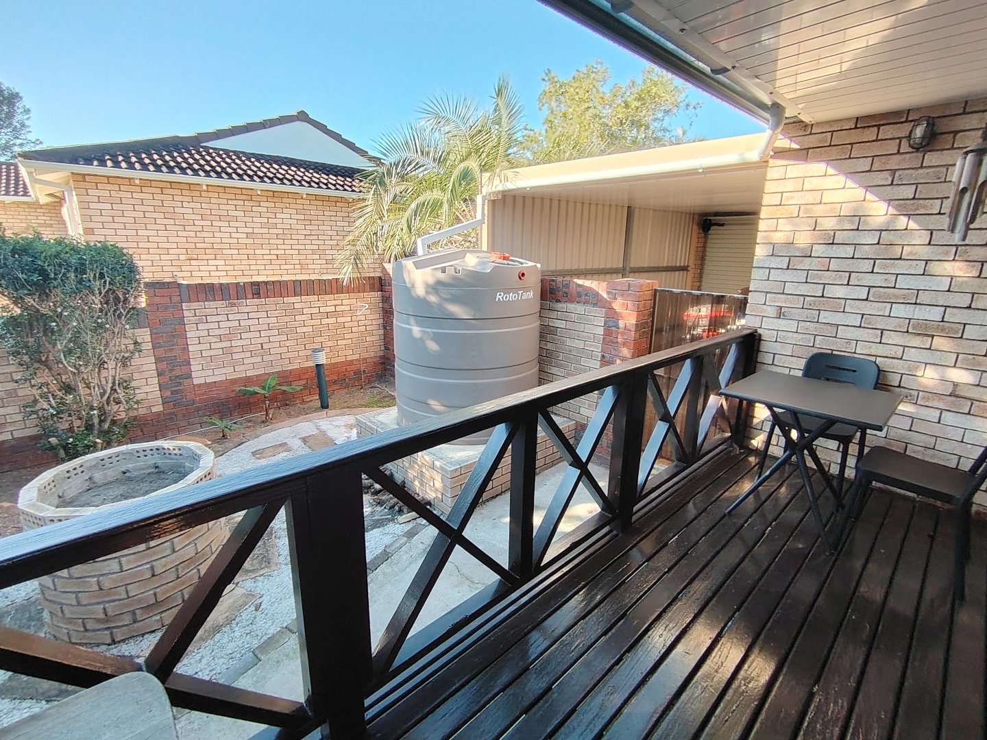 This immaculate townhouse offers space and comfort. Situated in upmarket townhouse complex with remote and intercom access and great security. Entrance passage to open plan living. Gourmet kitchen to lounge to family room with jetmaster. Leads to patio with lovely peaceful garden setting. Boma braai. 2 Comfortable Bedrooms with ample built-in cupboards. 2 Modern bathrooms - MES (Showers only). Laminated flooring throughout. Braai room with built-in braai and sauna. Sliding doors opening to garden. Enclosed courtyard. Wendy hous3. 2 Garages on remote interleads to unit. 2 Water tanks connected. Solar panels. Inverter system. Just ready to move in.