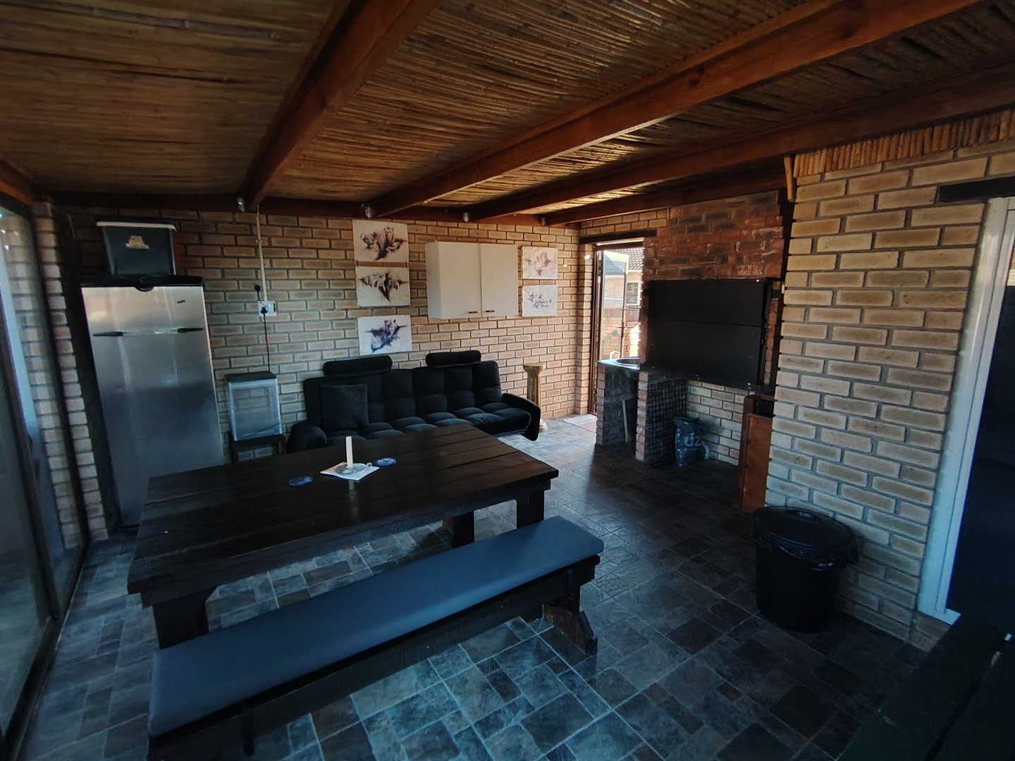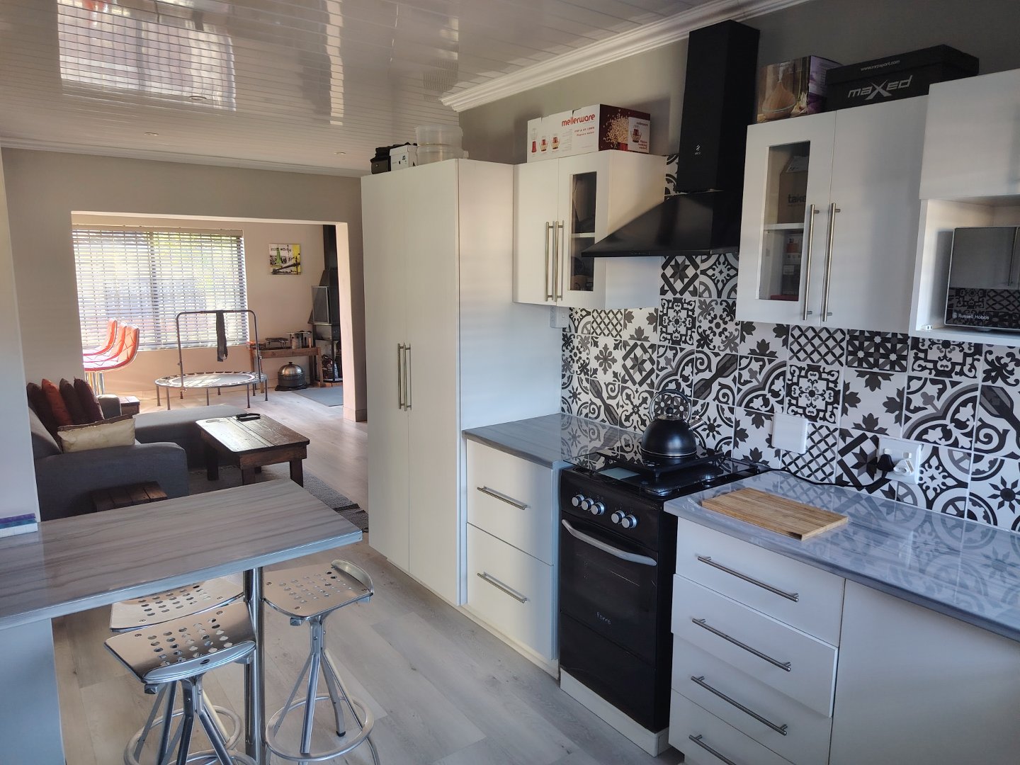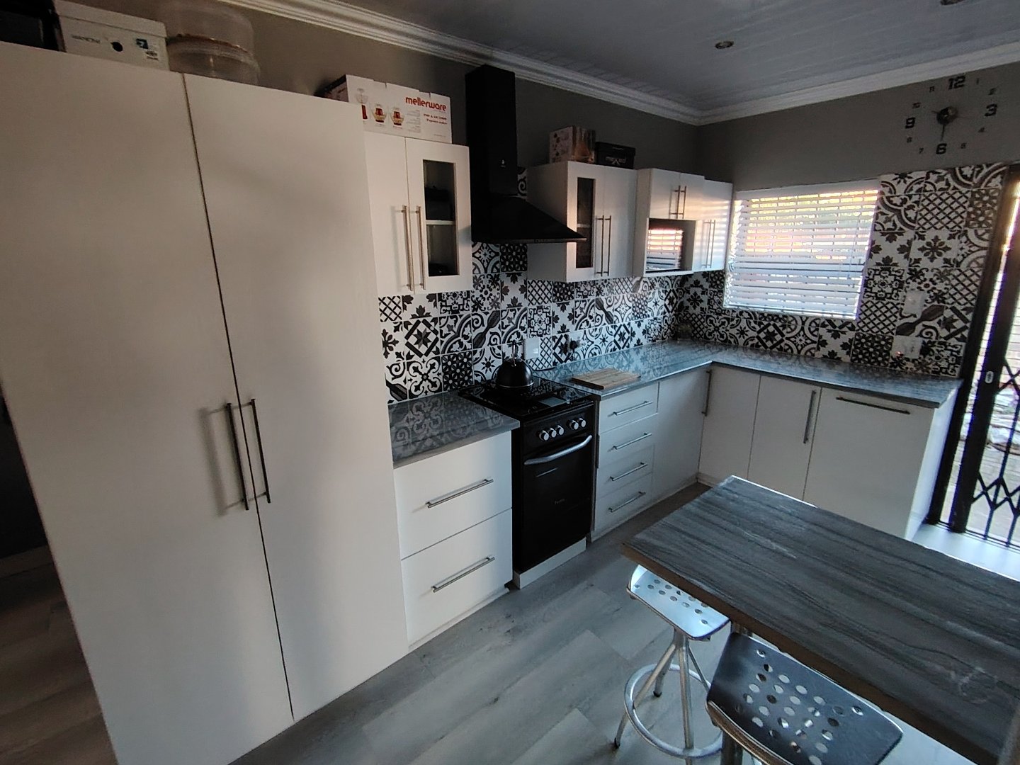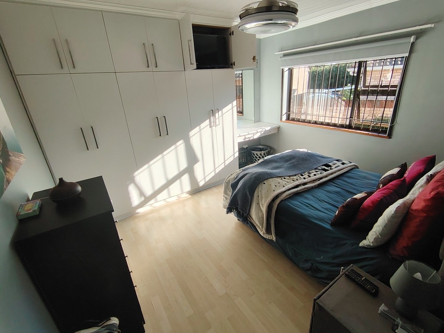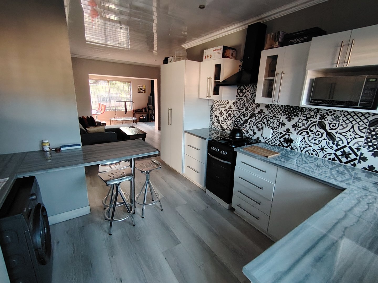This immaculate townhouse offers space and comfort. Situated in upmarket townhouse complex with remote and intercom access and great security. Entrance passage to open plan living. Gourmet kitchen to lounge to family room with jetmaster. Leads to patio with lovely peaceful garden setting. Boma braai. 2 Comfortable Bedrooms with ample built-in cupboards. 2 Modern bathrooms - MES (Showers only). Laminated flooring throughout. Braai room with built-in braai and sauna. Sliding doors opening to garden. Enclosed courtyard. Wendy hous3. 2 Garages on remote interleads to unit. 2 Water tanks connected. Solar panels. Inverter system. Just ready to move in.