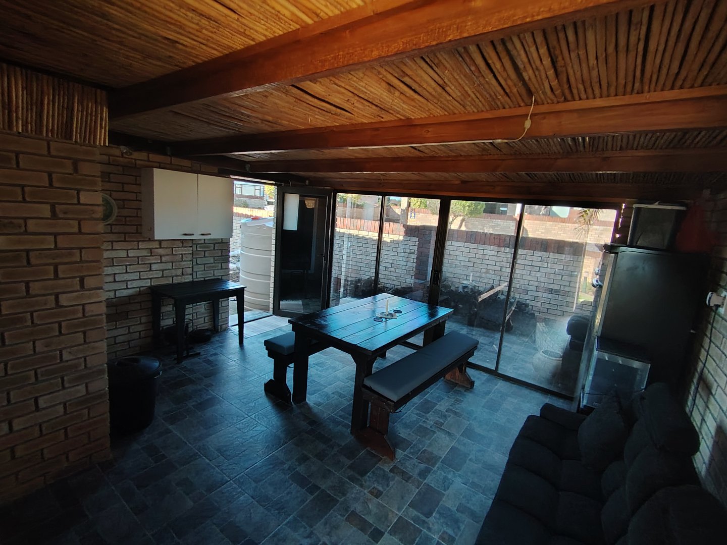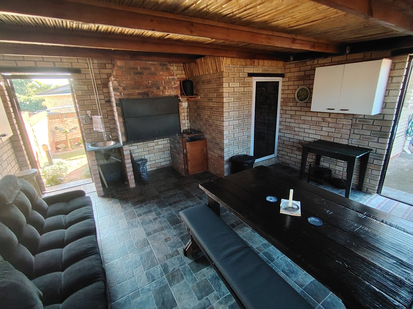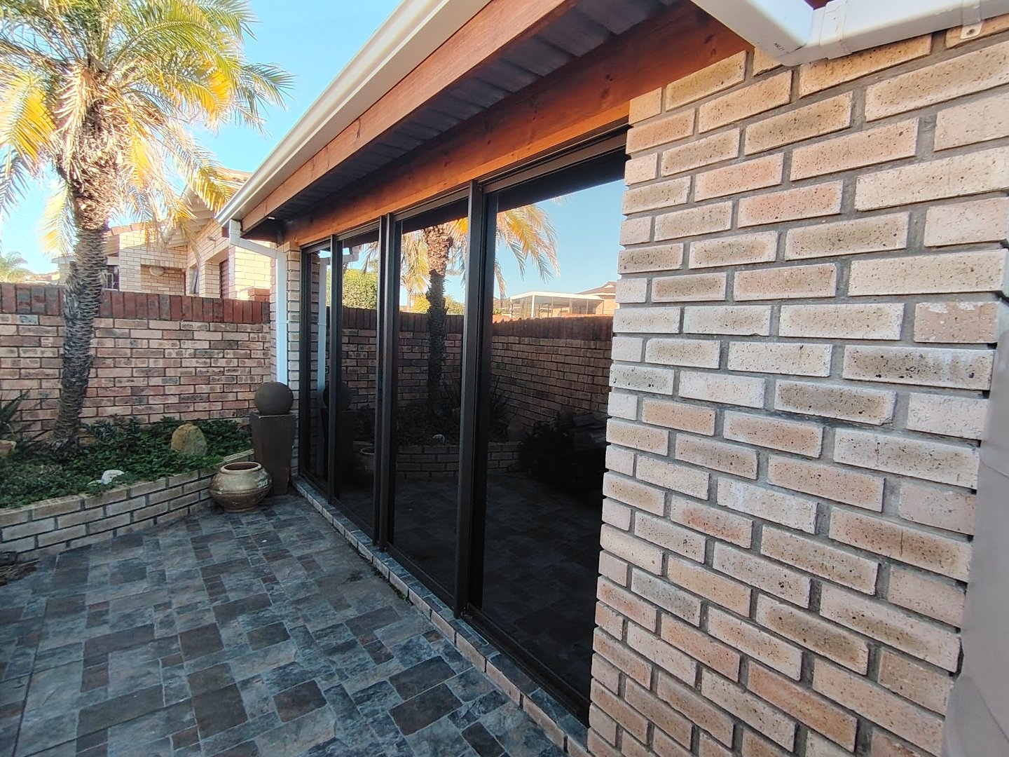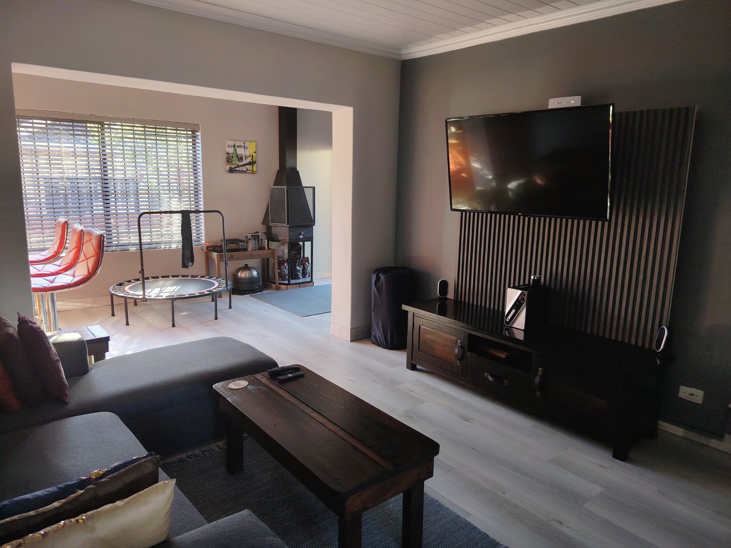 This immaculate townhouse offers space and comfort. Situated in upmarket townhouse complex with remote and intercom access and great security. Entrance passage to open plan living. Gourmet kitchen to lounge to family room with jetmaster. Leads to patio with lovely peaceful garden setting. Boma braai. 2 Comfortable Bedrooms with ample built-in cupboards. 2 Modern bathrooms - MES (Showers only). Laminated flooring throughout. Braai room with built-in braai and sauna. Sliding doors opening to garden. Enclosed courtyard. Wendy hous3. 2 Garages on remote interleads to unit. 2 Water tanks connected. Solar panels. Inverter system. Just ready to move in.