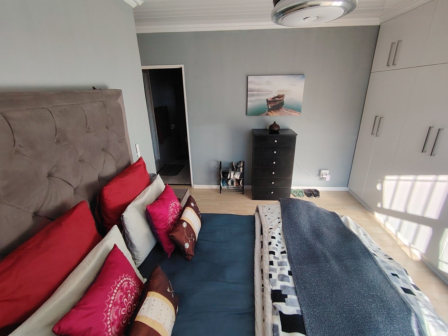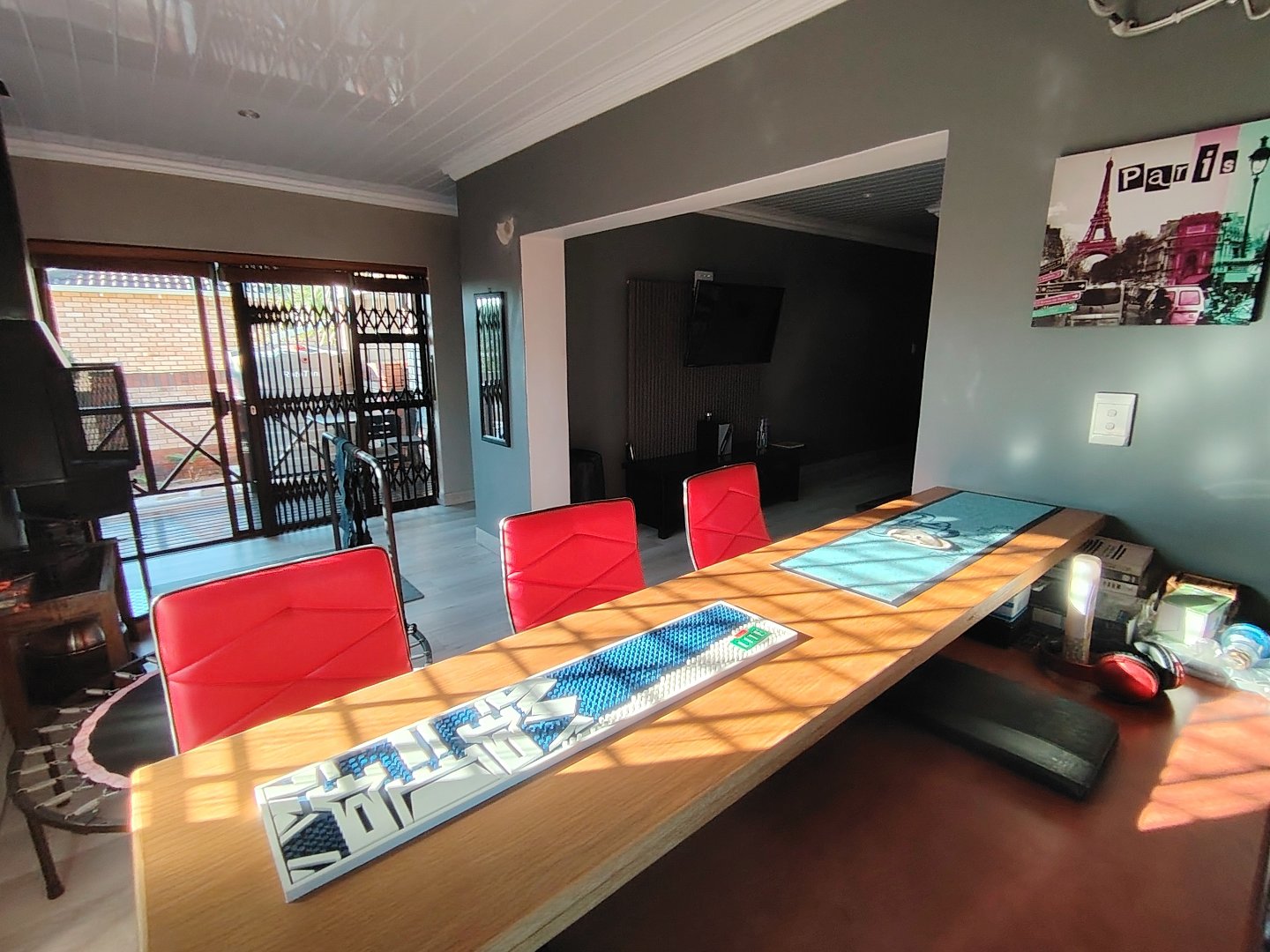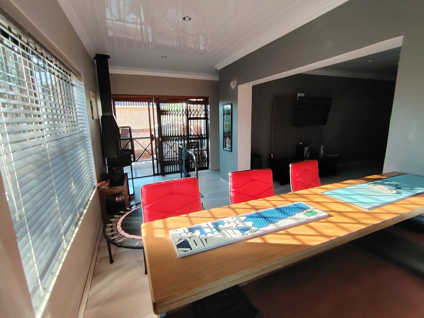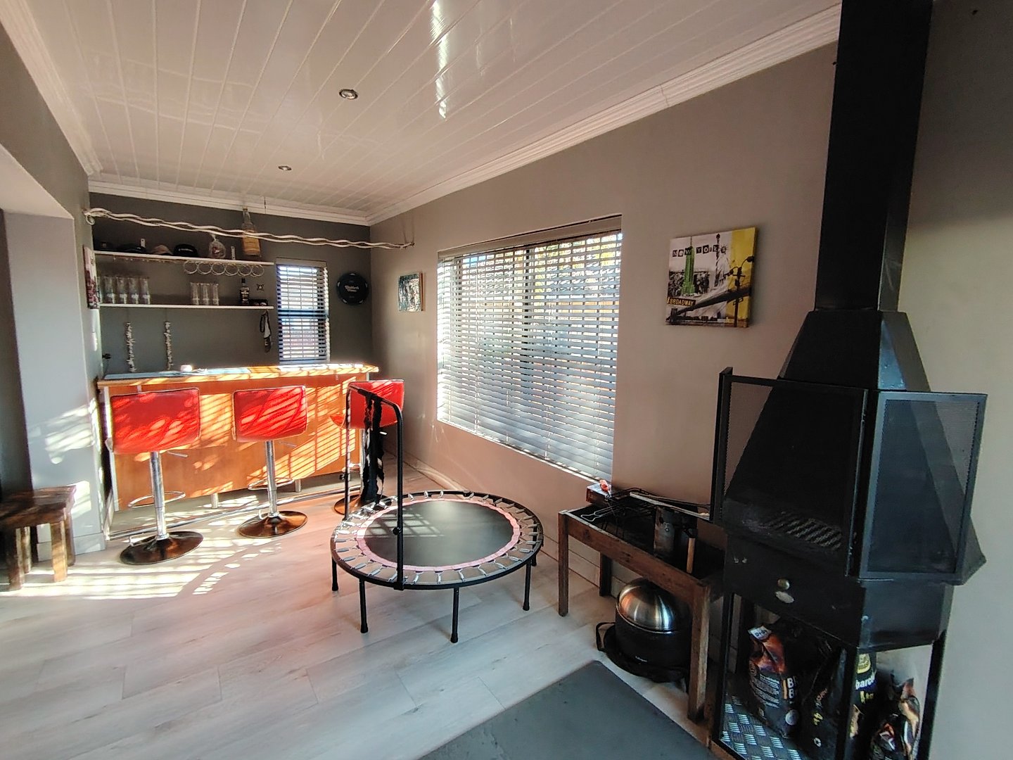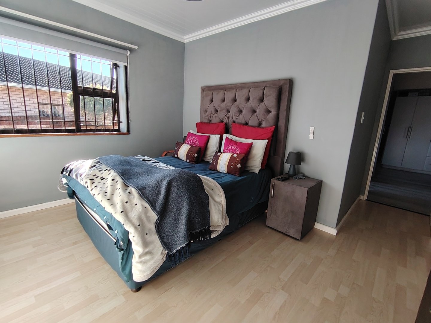 This immaculate townhouse offers space and comfort. Situated in upmarket townhouse complex with remote and intercom access and great security. Entrance passage to open plan living. Gourmet kitchen to lounge to family room with jetmaster. Leads to patio with lovely peaceful garden setting. Boma braai. 2 Comfortable Bedrooms with ample built-in cupboards. 2 Modern bathrooms - MES (Showers only). Laminated flooring throughout. Braai room with built-in braai and sauna. Sliding doors opening to garden. Enclosed courtyard. Wendy hous3. 2 Garages on remote interleads to unit. 2 Water tanks connected. Solar panels. Inverter system. Just ready to move in.