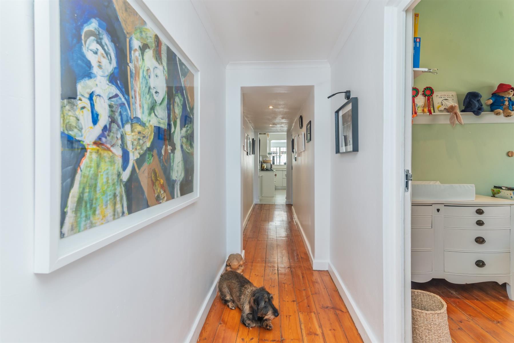 Light-filled and welcoming, the home consistently surprises with its sense of space and flow, often exceeding expectations set by photographs alone. Crisp white interiors enhance the natural light, while a combination of wooden floors and carpeting adds warmth and softness throughout.