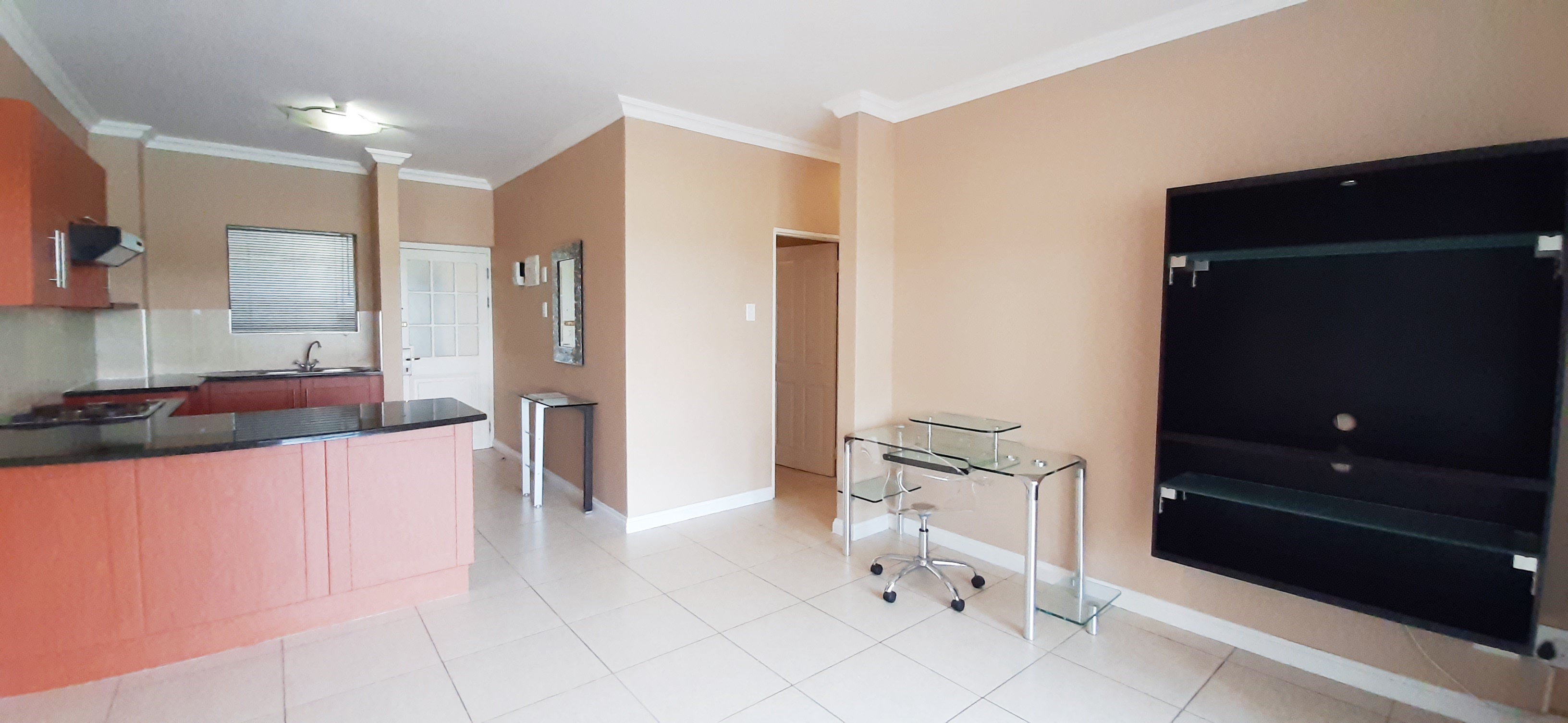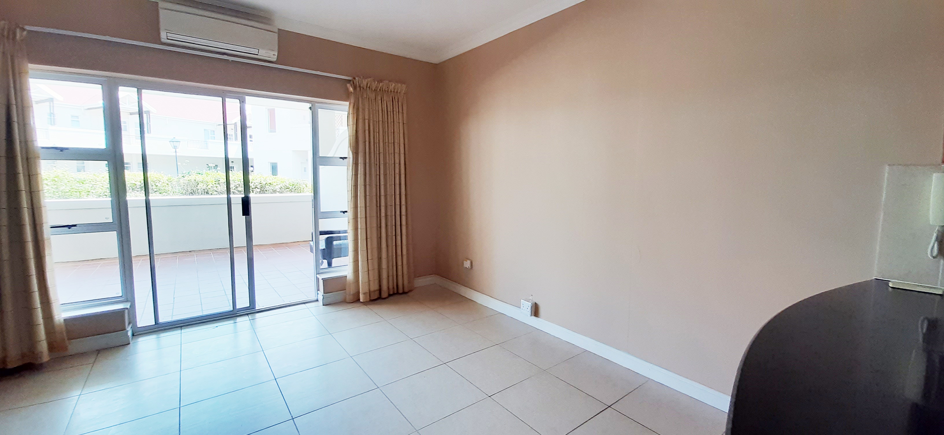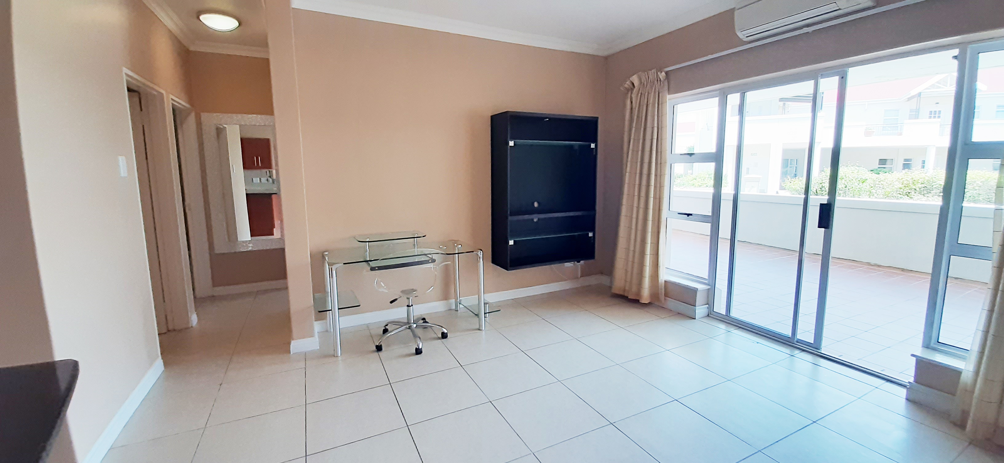 Open plan living area leading to balcony