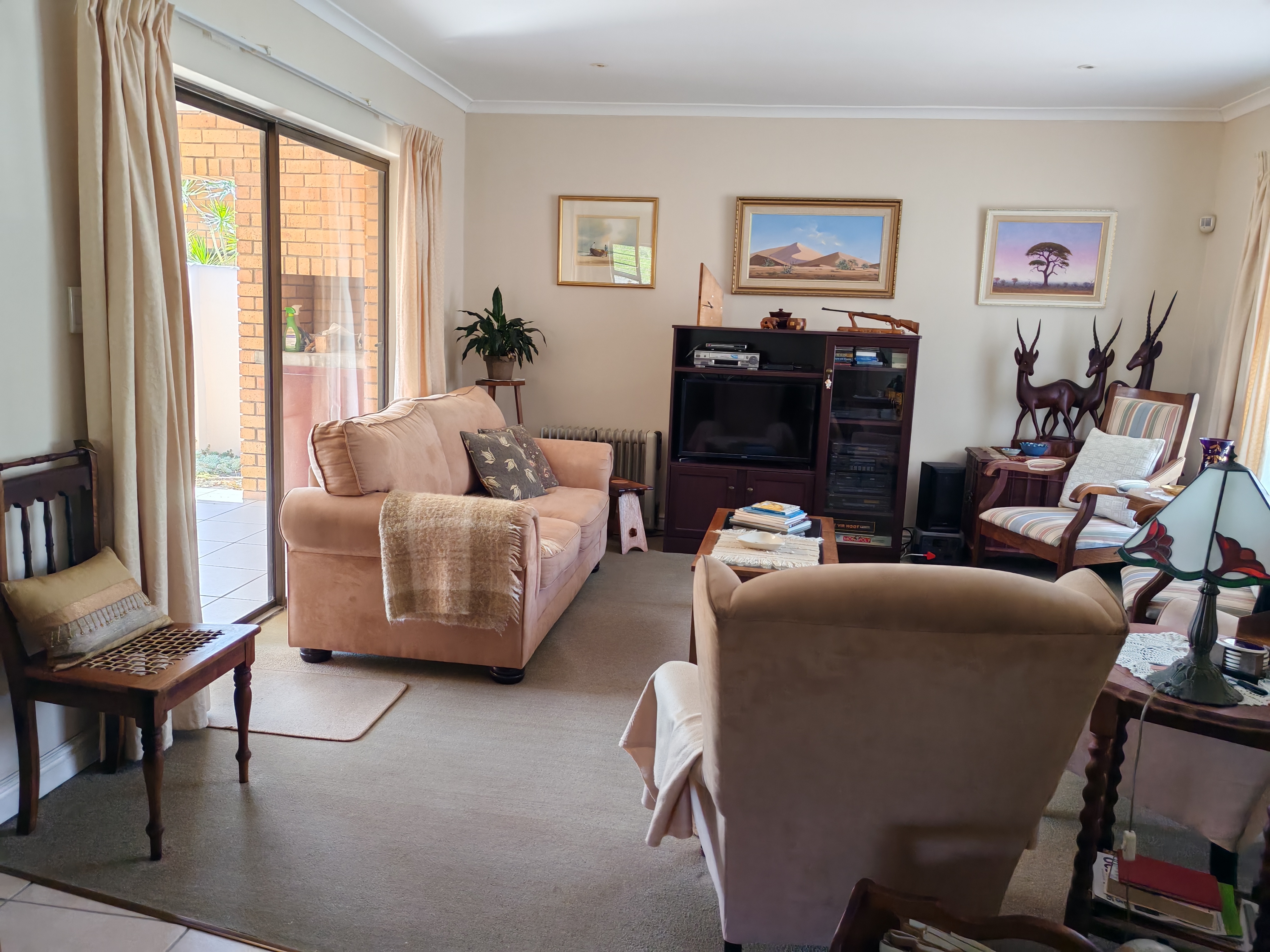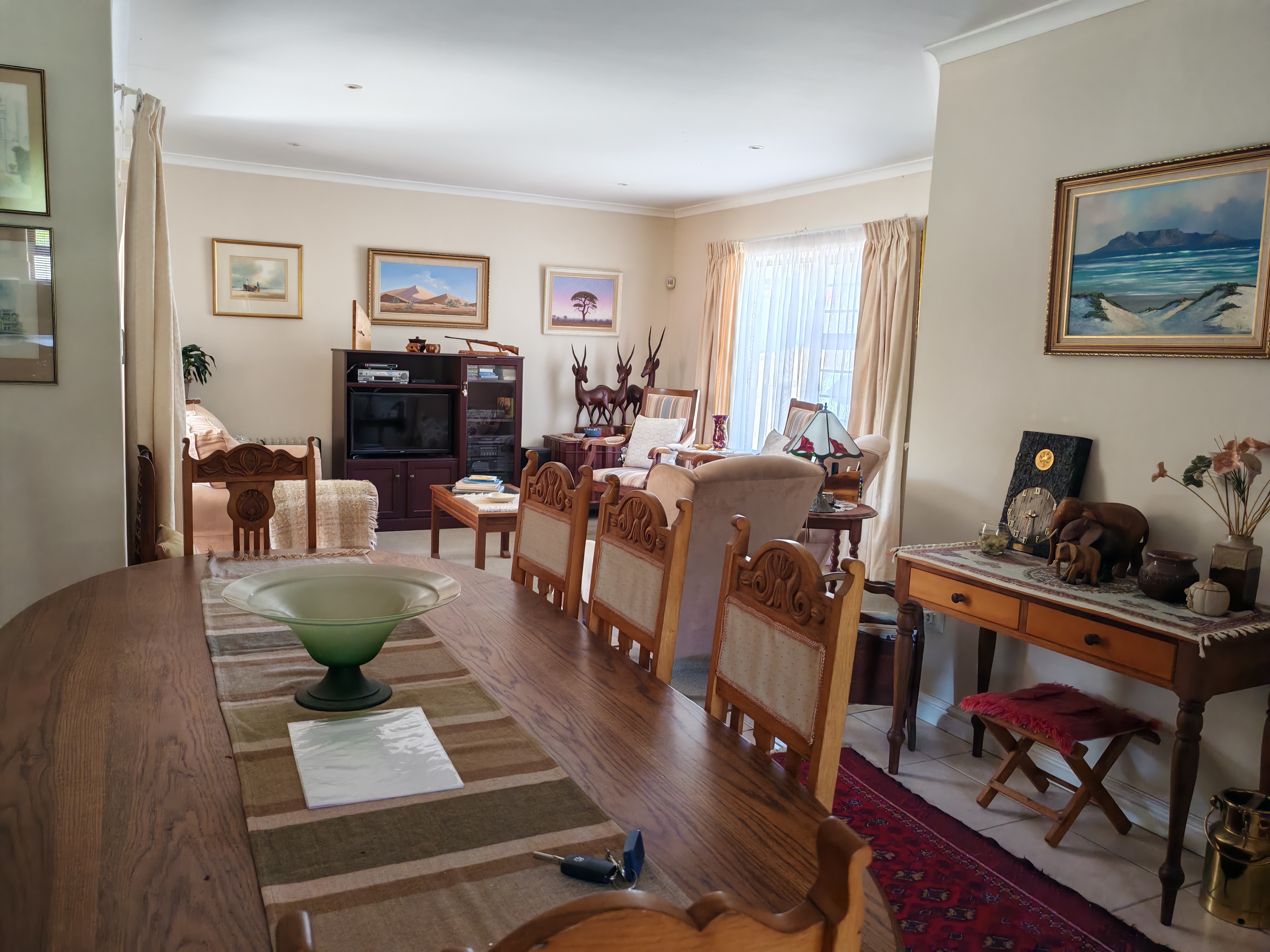 Spacious open-plan living leading out onto an under cover patio/braai area.