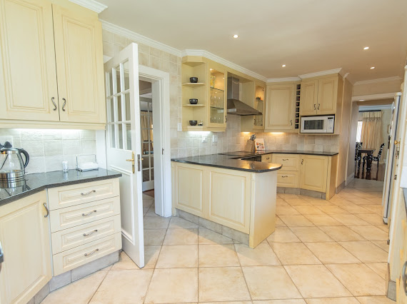 - Security Features: The residence is secured by a high boundary wall with an electric fence, CCTV system, intercom system, and state-of-the-art wireless RISCO alarm system. Two separate entrances with pedestrian gates and a motorized vehicle gate ensure easy and secure access.