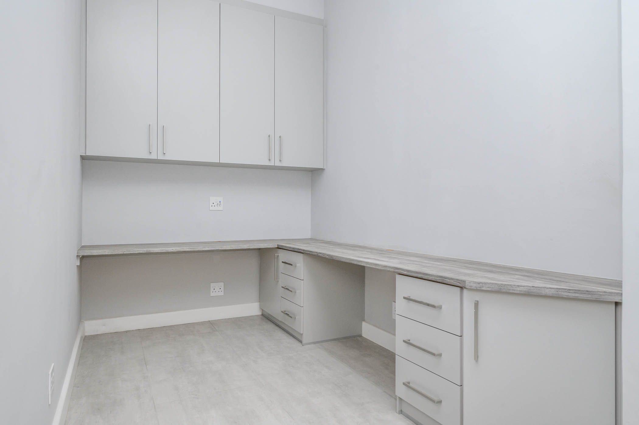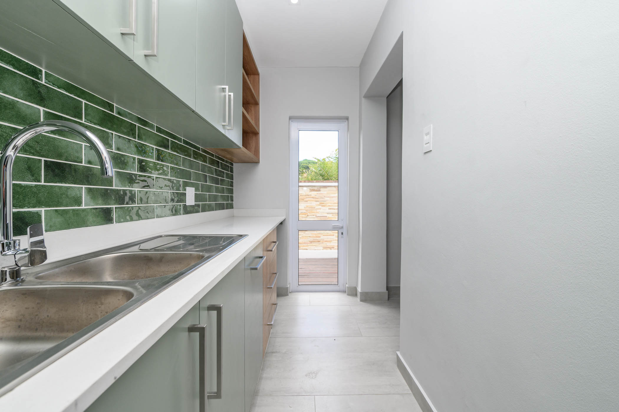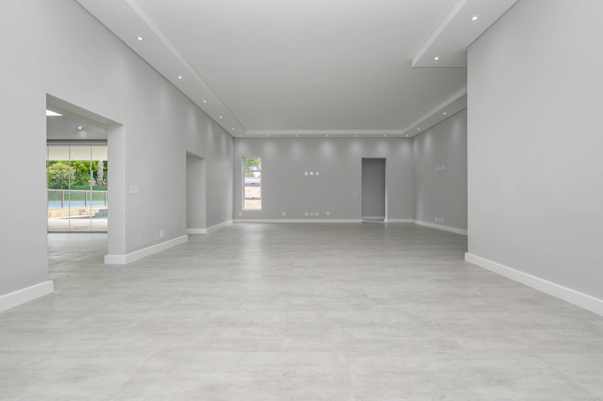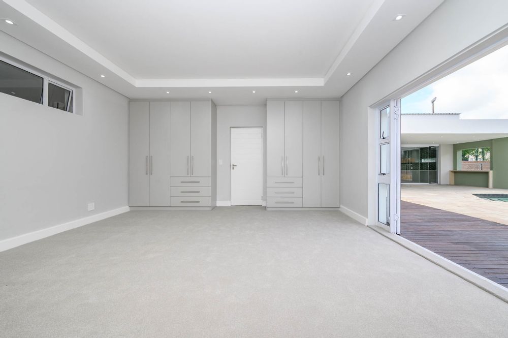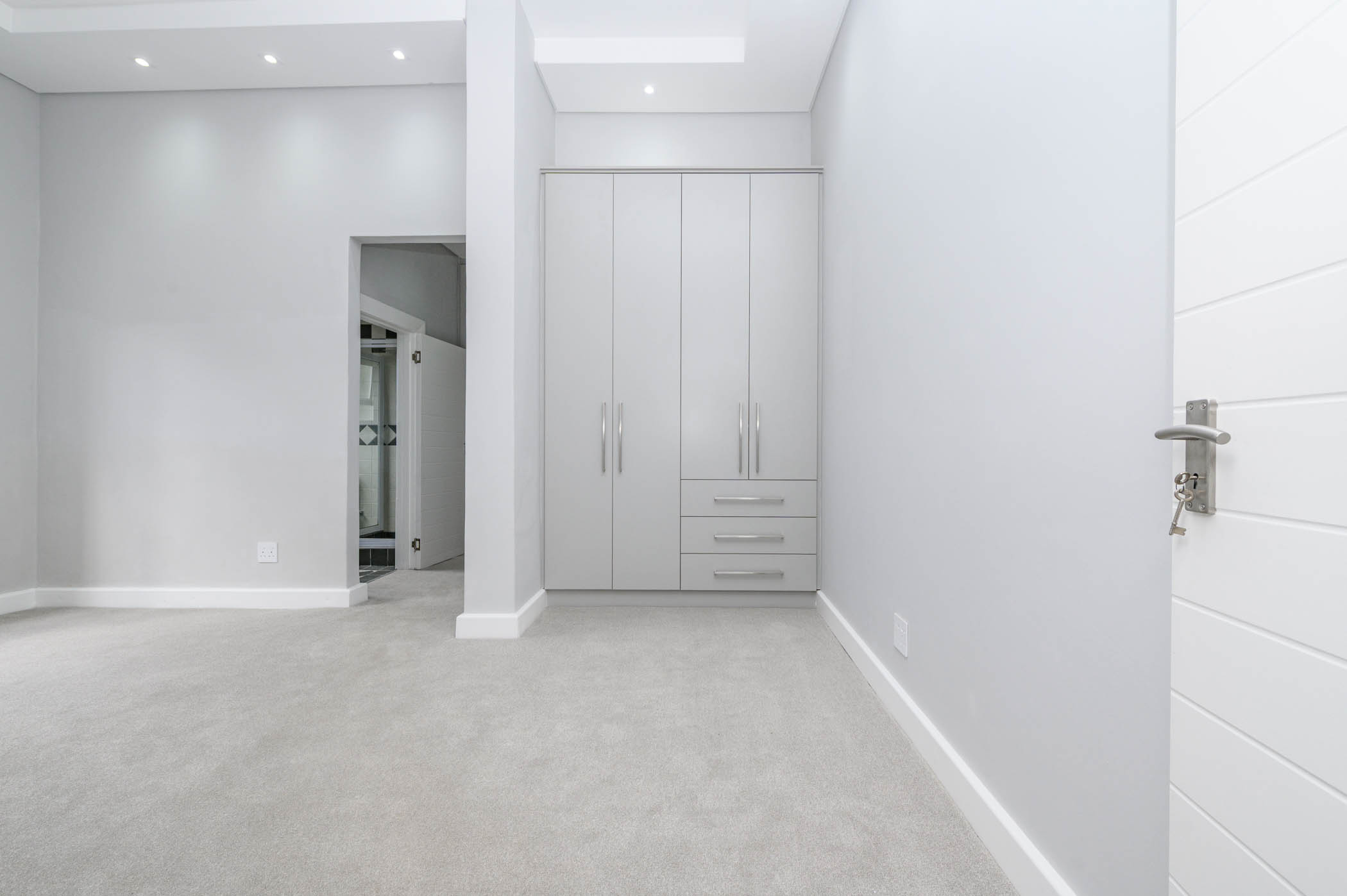 The heart of the home is the contemporary kitchen – a culinary haven that seamlessly connects to the covered braai and pool area through expansive stacker doors, creating an inviting indoor-outdoor flow. The kitchen is complemented by a separate scullery and a generous pantry, designed for both practicality and style.