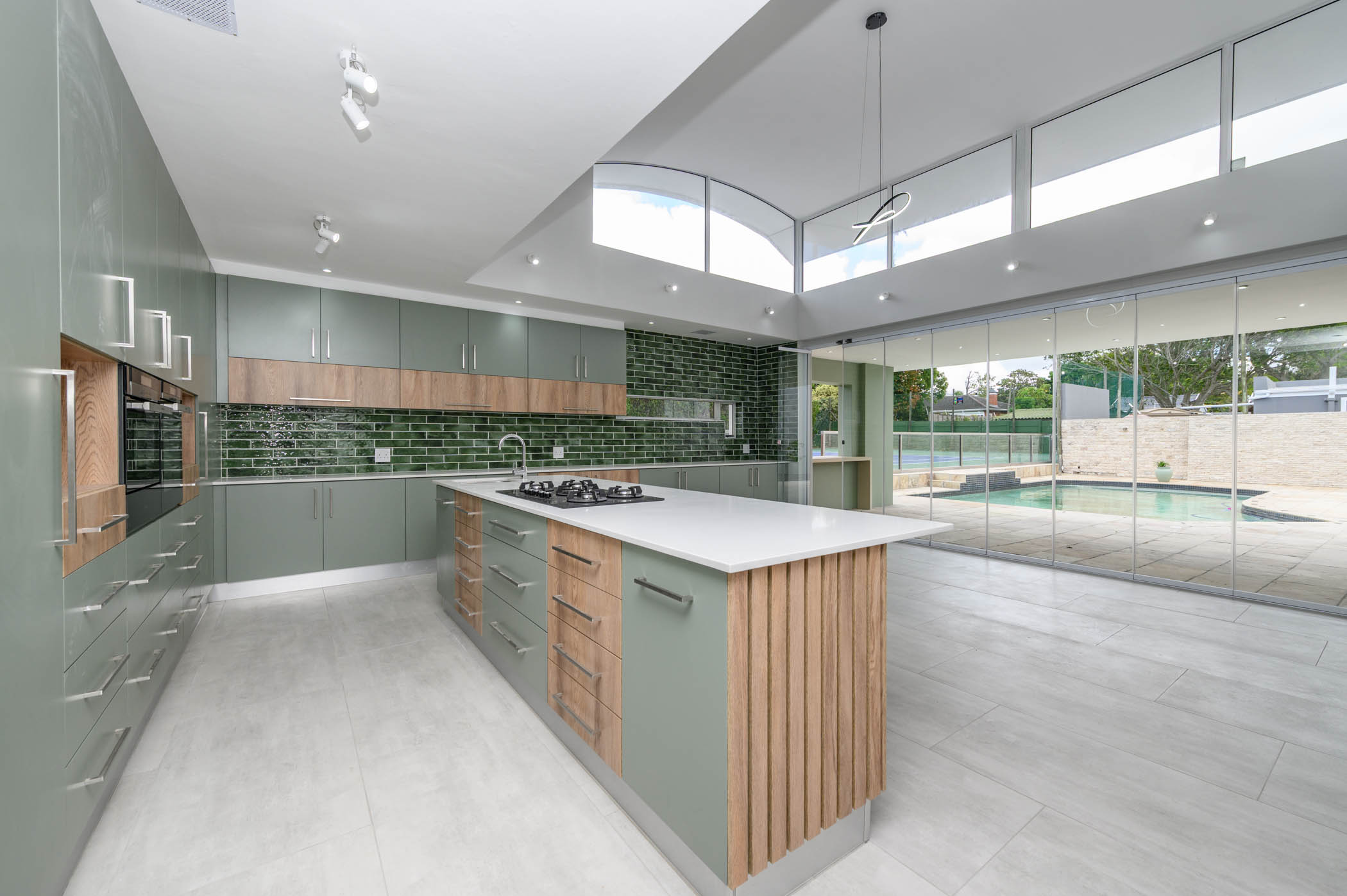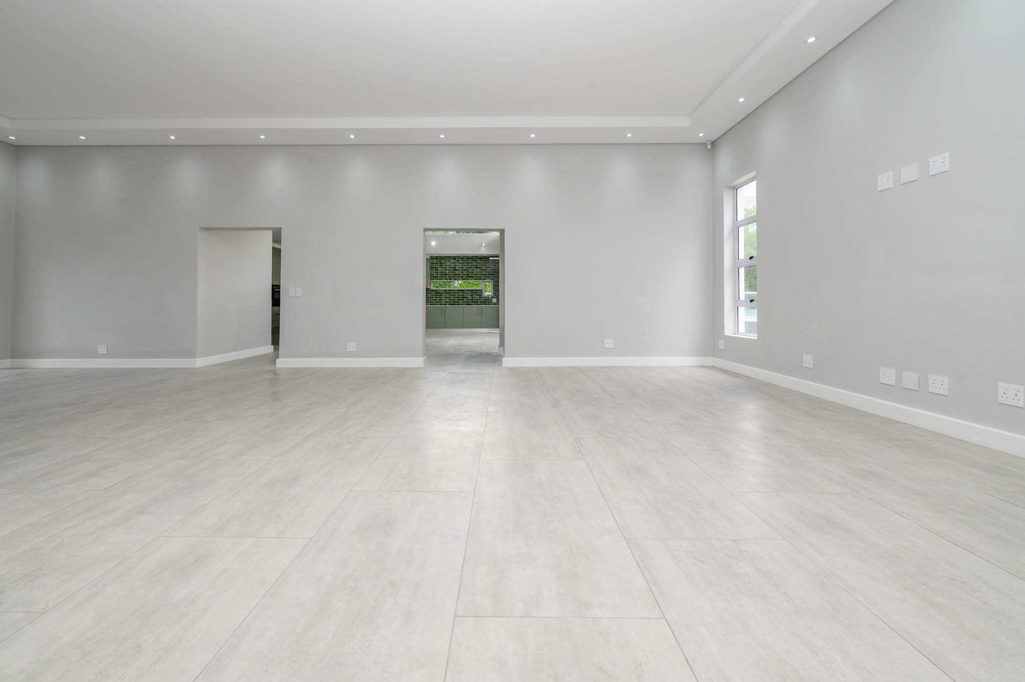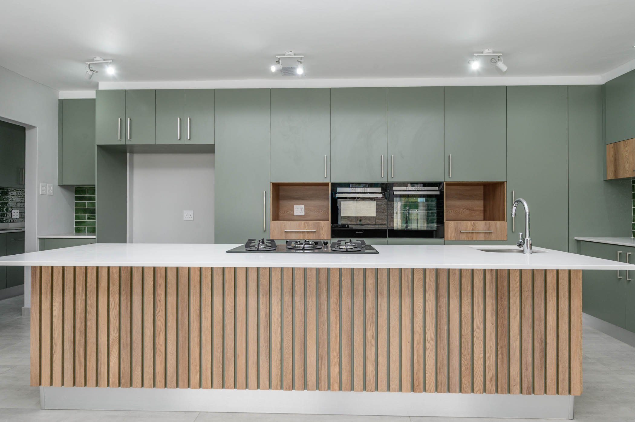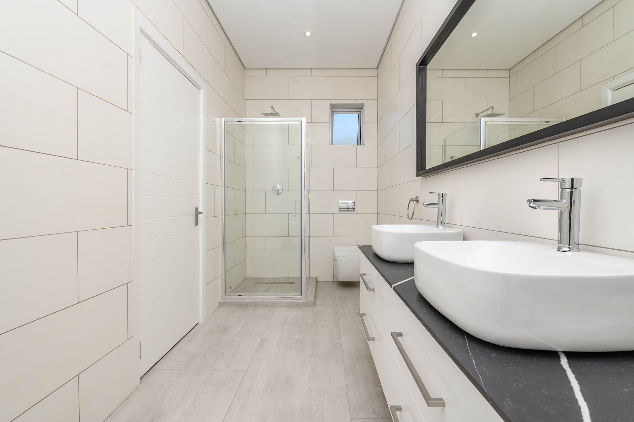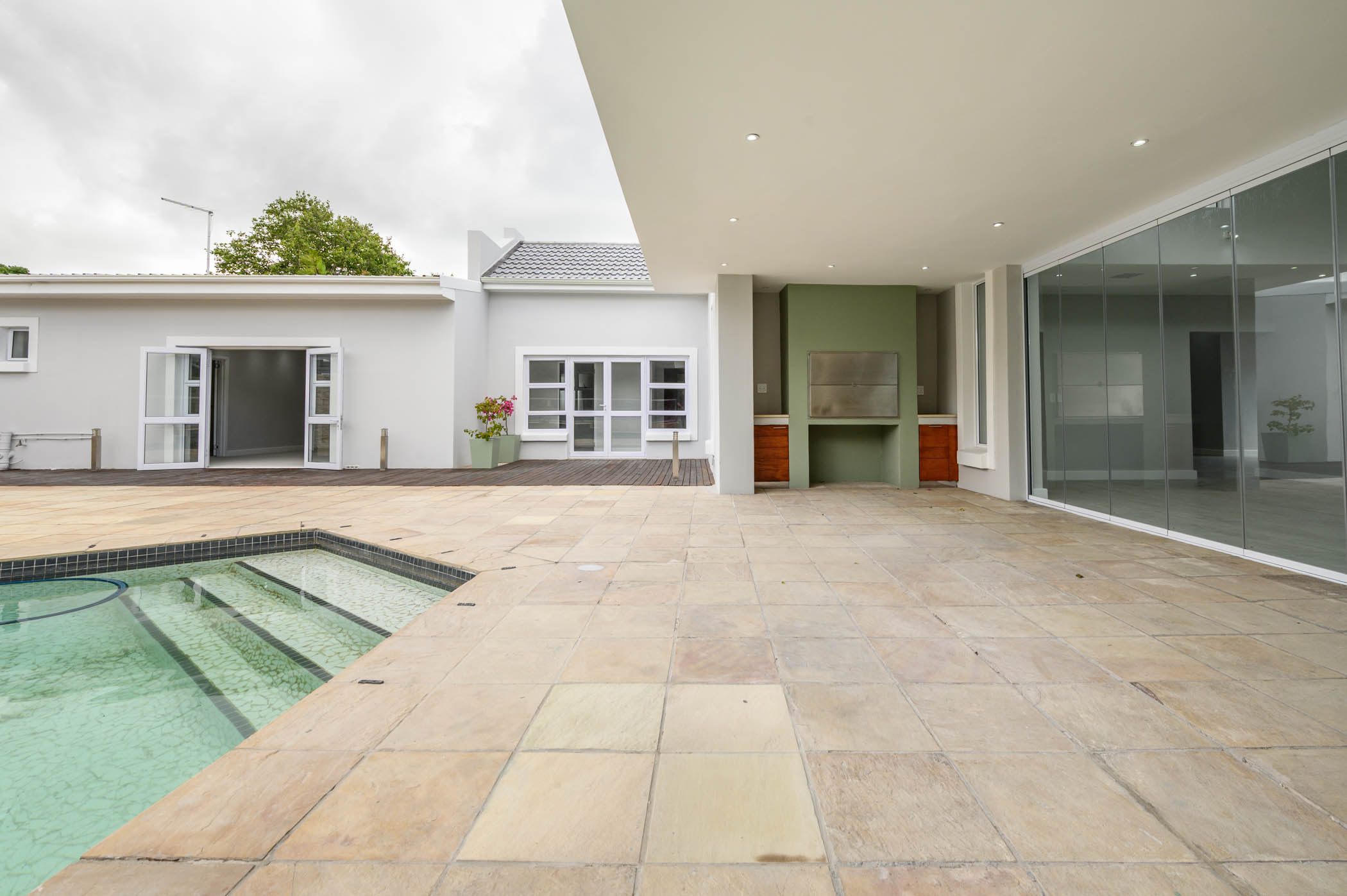 The heart of the home is the contemporary kitchen – a culinary haven that seamlessly connects to the covered braai and pool area through expansive stacker doors, creating an inviting indoor-outdoor flow. The kitchen is complemented by a separate scullery and a generous pantry, designed for both practicality and style.