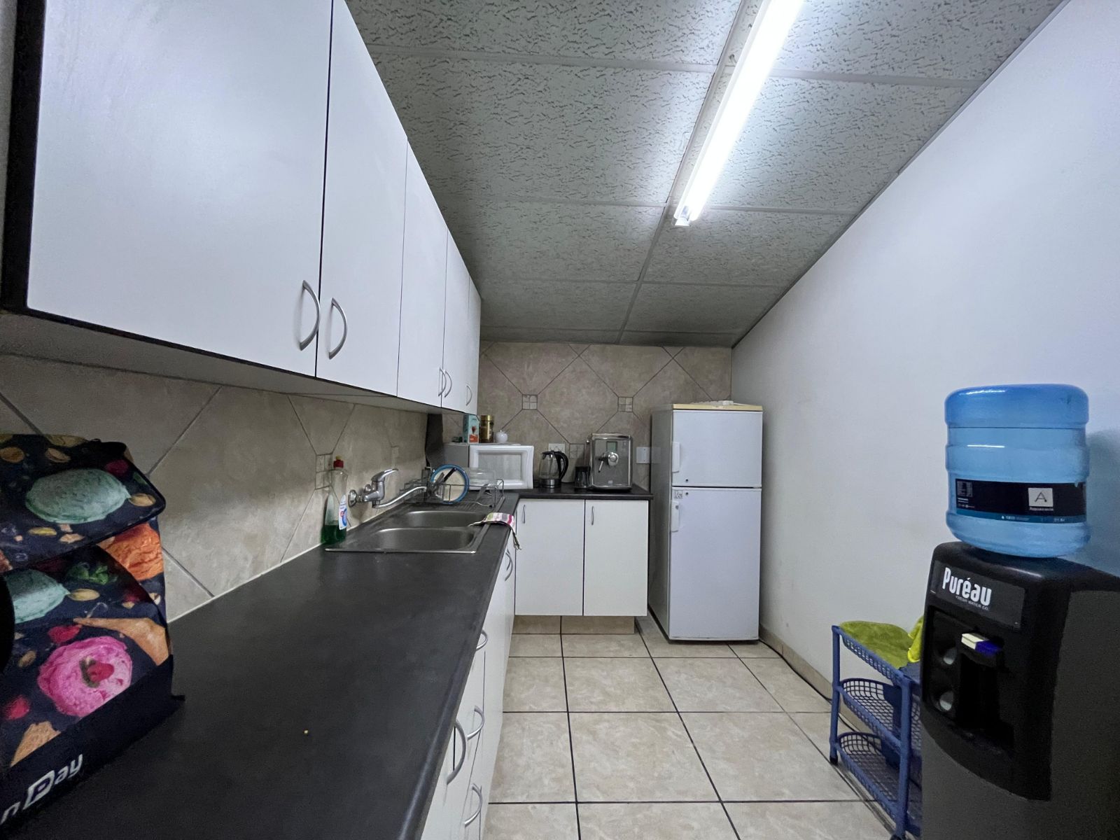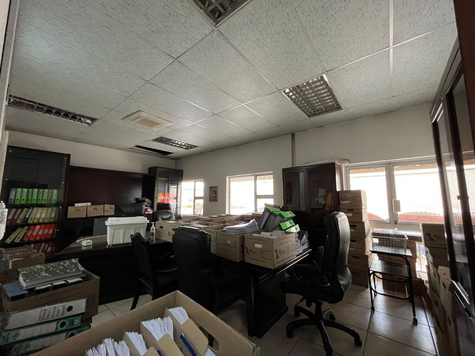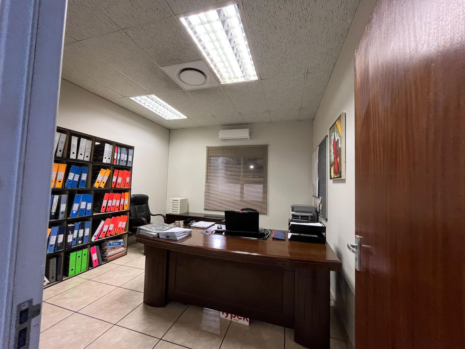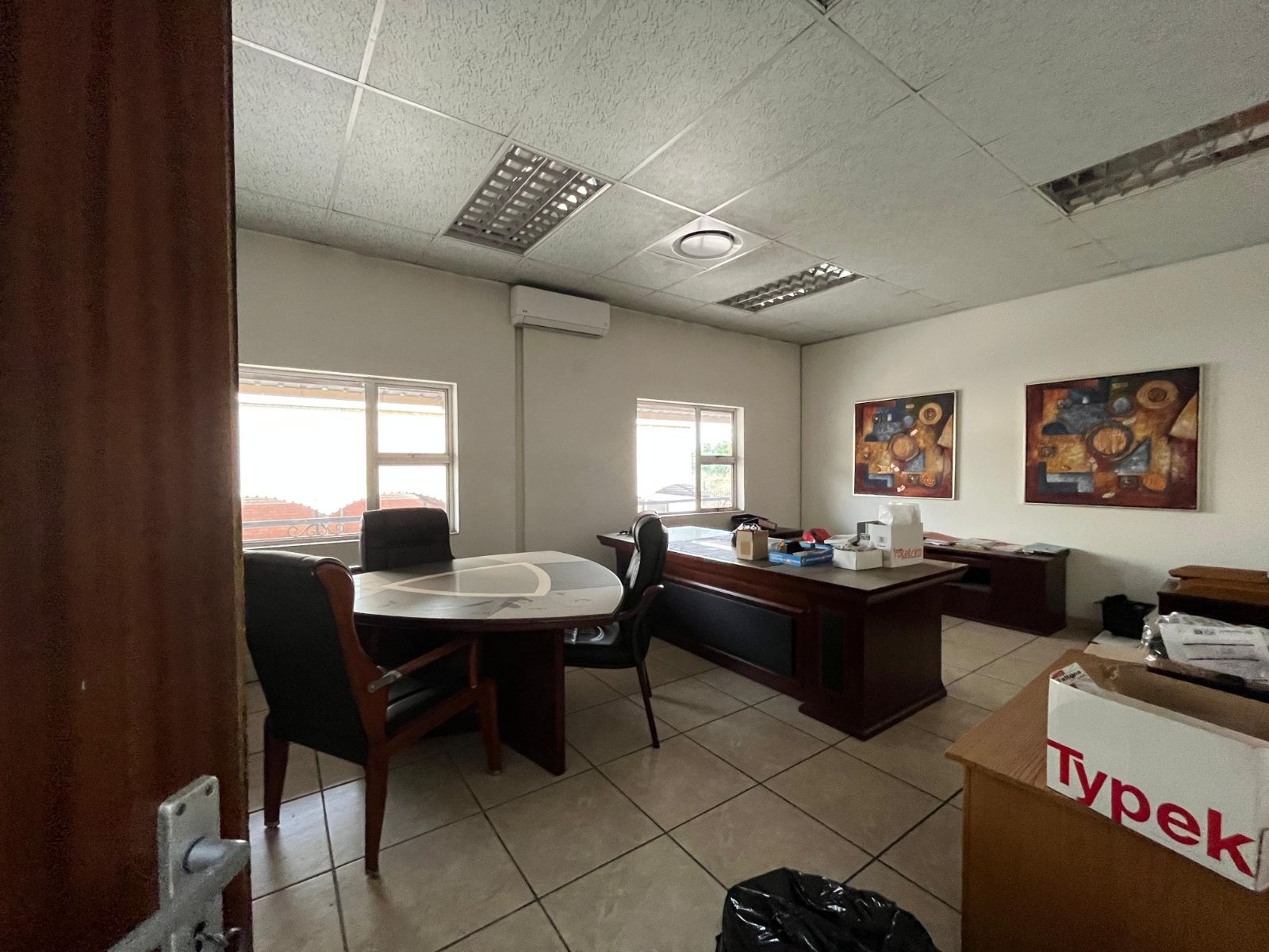 The property forms part of a secure, multi-tenanted industrial park with 24/7 access-controlled security. The warehouse offers three large roller shutter doors (4m high x 5m wide), good internal height, a fair-sized yard for deliveries, and 3-phase power. The offices are air-conditioned and include a reception, boardroom, kitchen, and toilets, with additional ablutions, a kitchen, and a breakroom at the rear of the warehouse. Fibre internet connectivity is available. Tenants also benefit from eight covered parking bays and access to a braai area/lapa within the park.