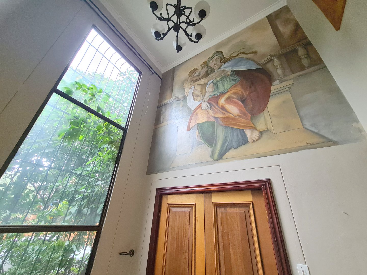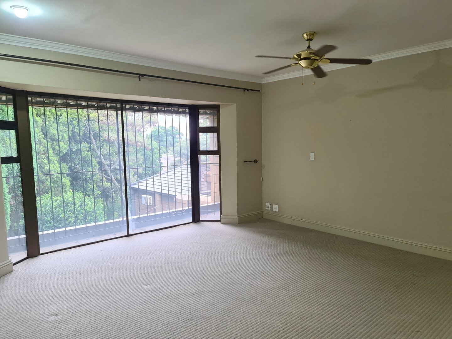 - The top floor balcony is spacious and offers a scenic view of the beautiful, landscaped garden.