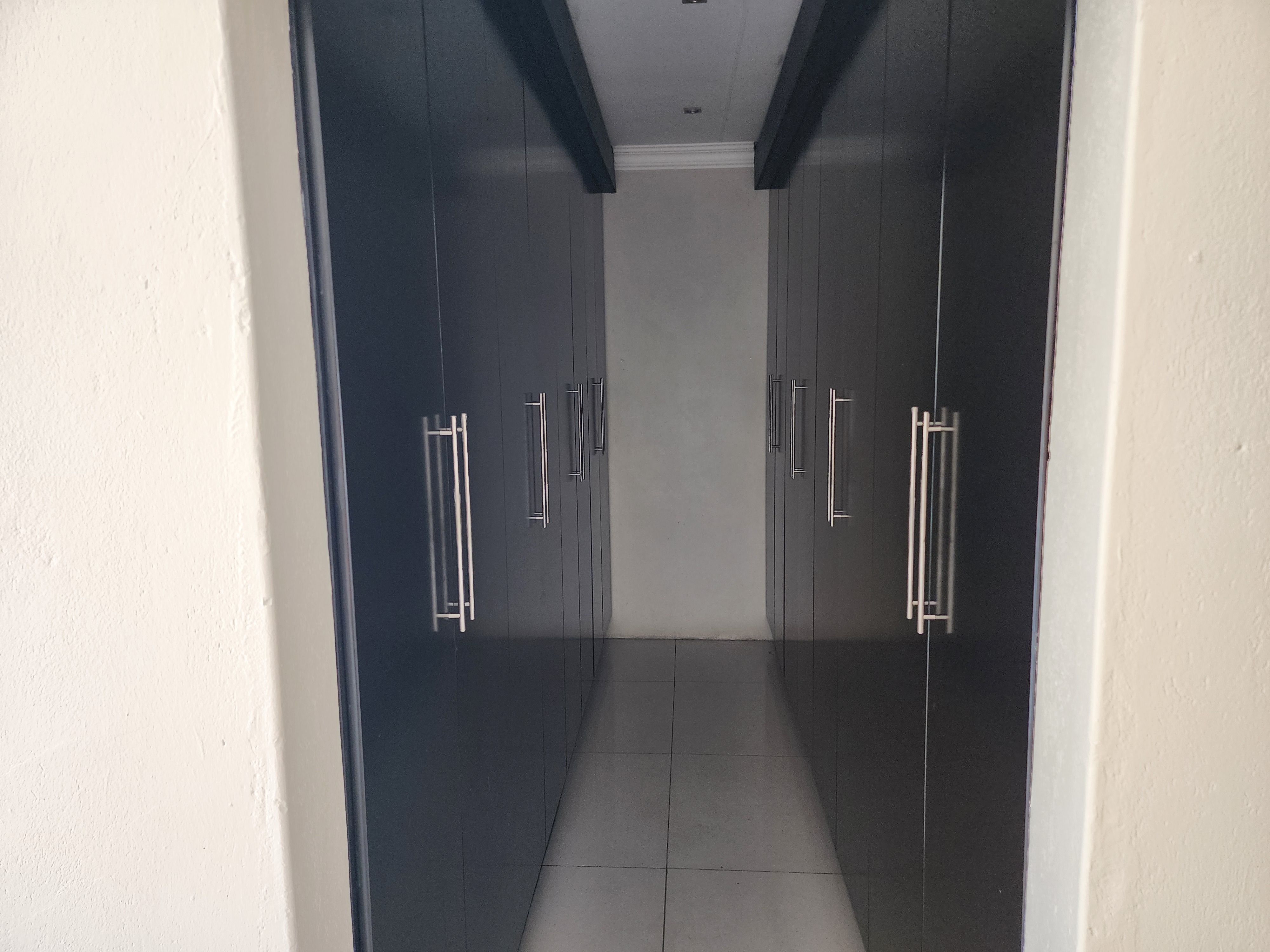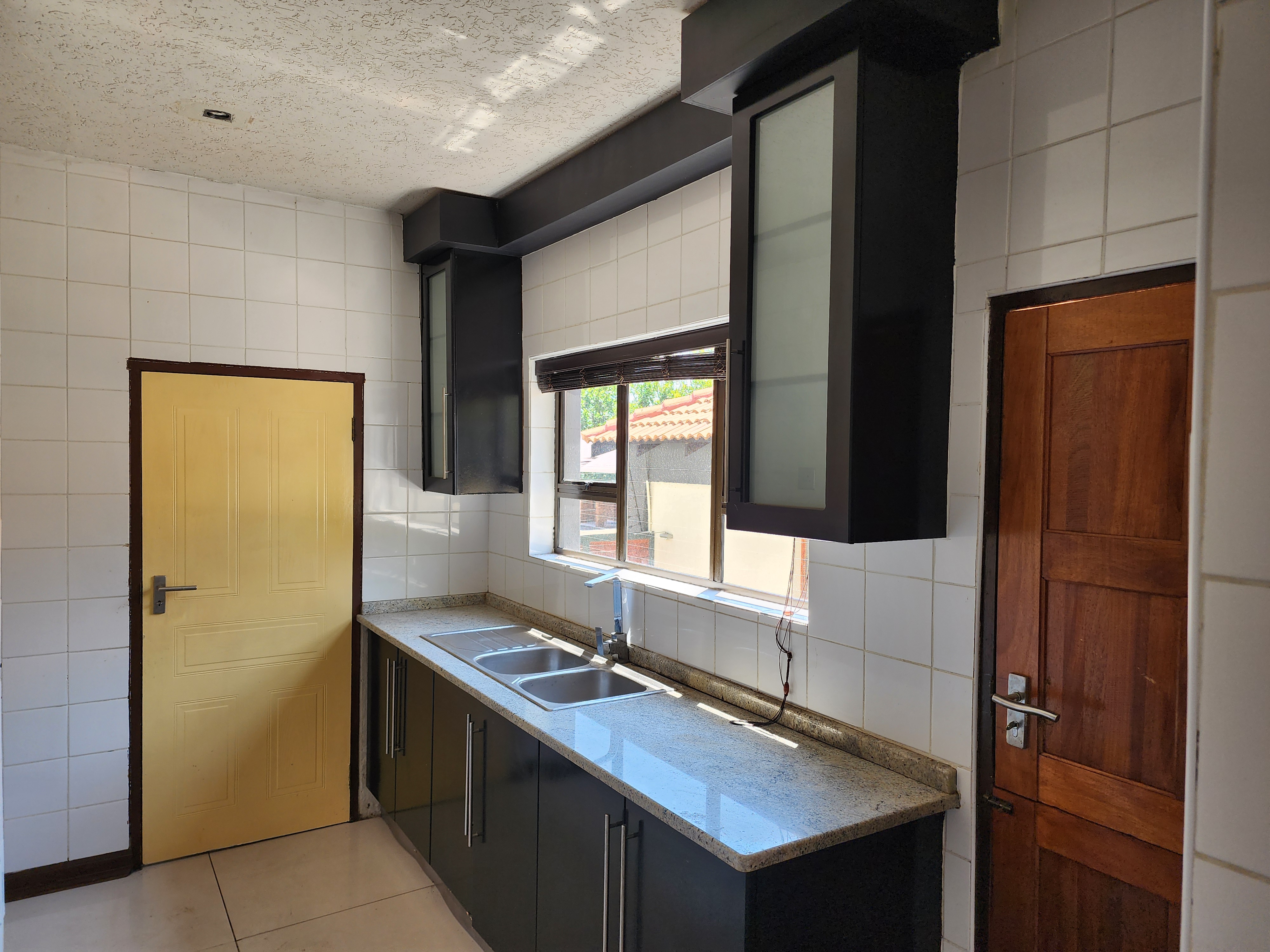 At the heart of the home is a modern kitchen equipped with a scullery and a large pantry, offering plenty of storage and workspace. The open layout connects seamlessly to two living areas and a dining space complete with a built-in braai, creating the perfect environment for family gatherings and social occasions.