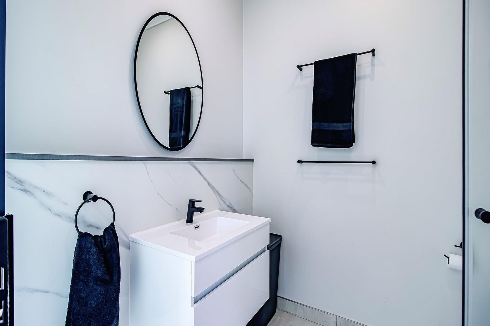 The main bedroom features an en-suite bathroom with attractive fittings, while the second bedroom is serviced by a separate bathroom.