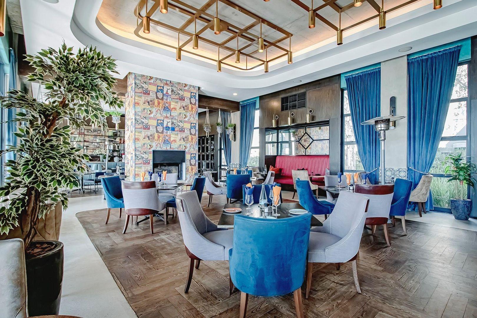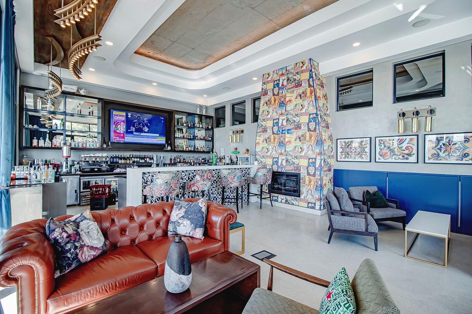 Unwind at the fully functional restaurant and bar, cinema room, and yoga deck.