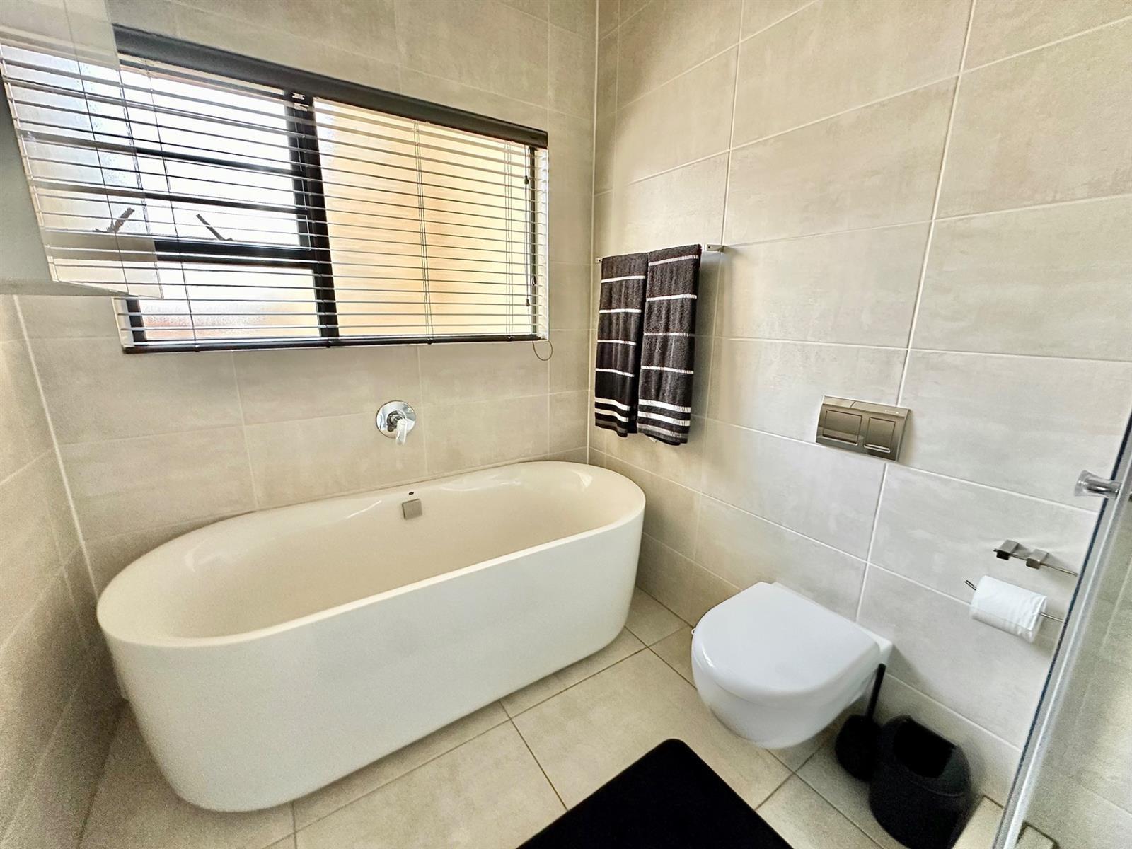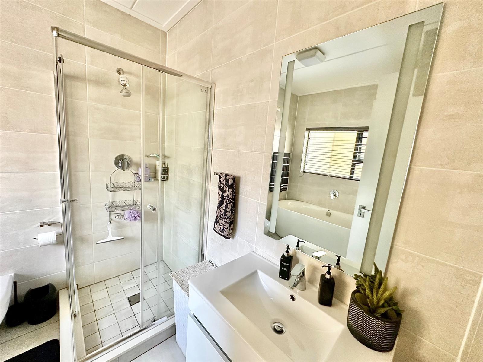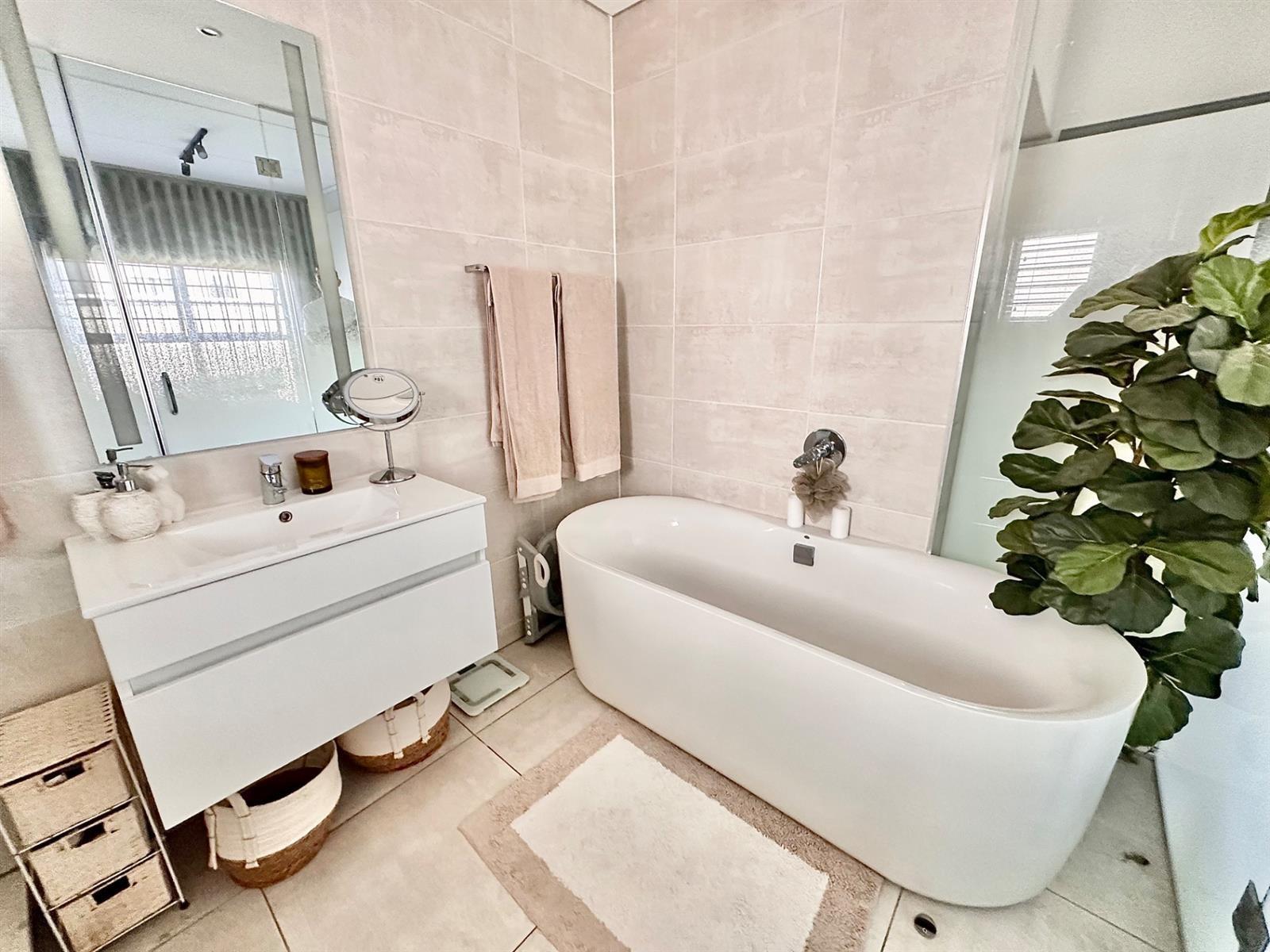All bedrooms comfortably accommodate queen-sized beds and offer built-in wardrobes. The main bedroom features a luxurious en-suite bathroom with both a soaking tub and a separate shower.