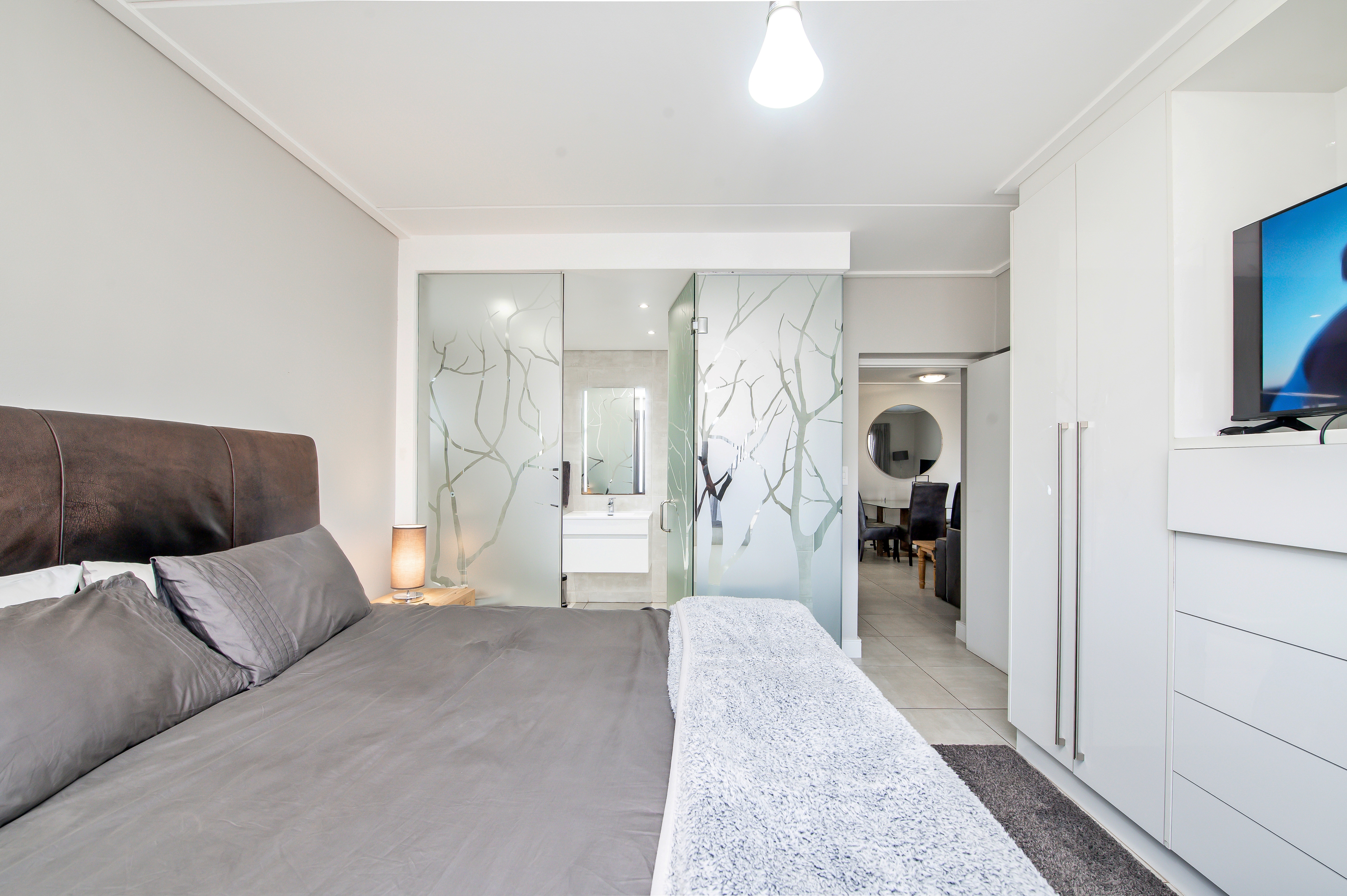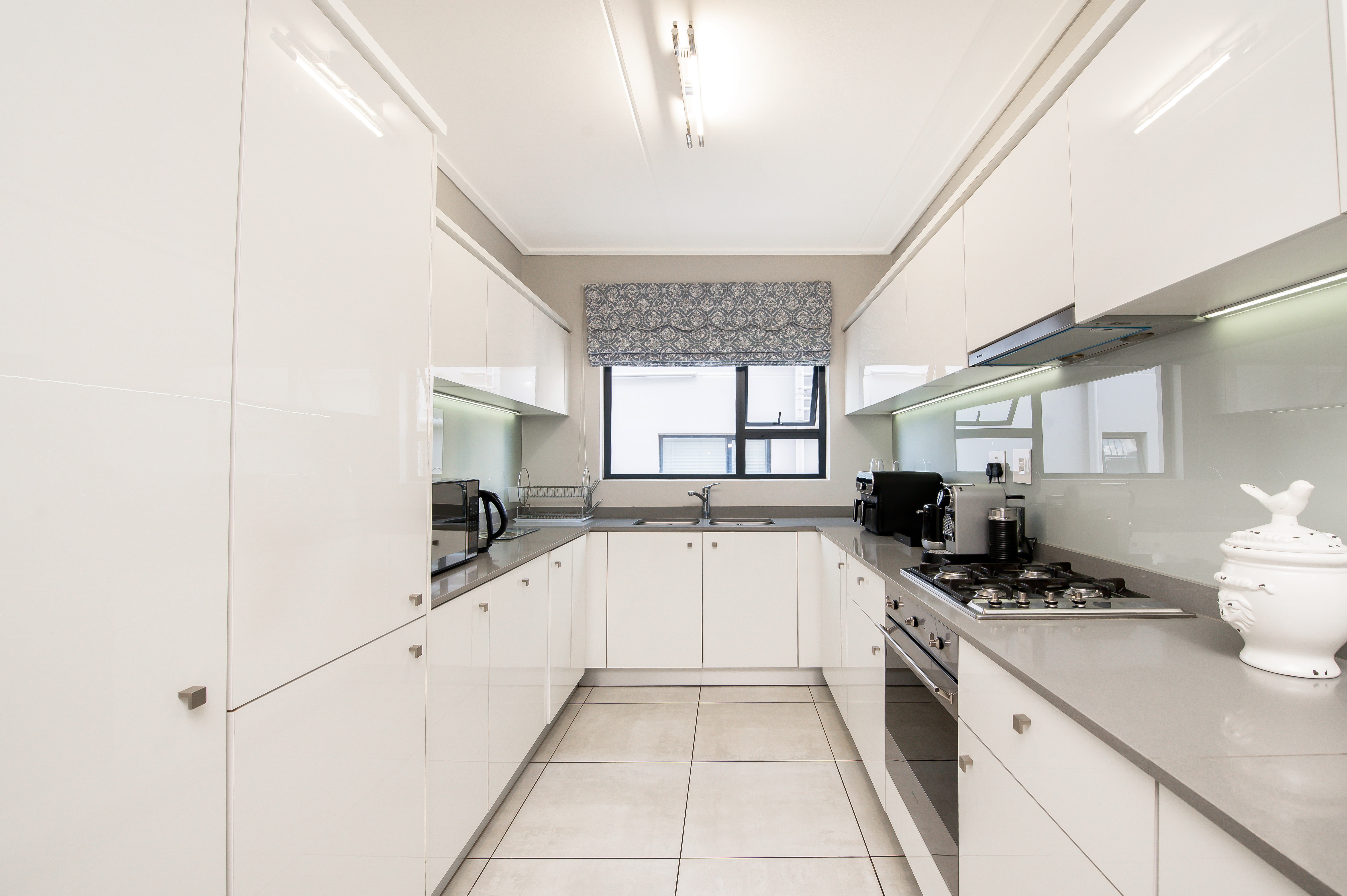 The heart of this apartment is definitely its sleek and stylish kitchen, boasting stunning soft-close cabinetry and top-of-the-line SMEG appliances, including a 4-plate gas burner stove top & hob with an electric oven. The dual-wash basins not only add a touch of luxury but also make cleaning up a breeze. The living and dining areas seamlessly flow onto a spacious balcony, creating the perfect setting for outdoor entertaining. With a built-in gas braai, this space is ideal for hosting gatherings on warm summer evenings or simply enjoying a quiet moment of relaxation while soaking in the views.