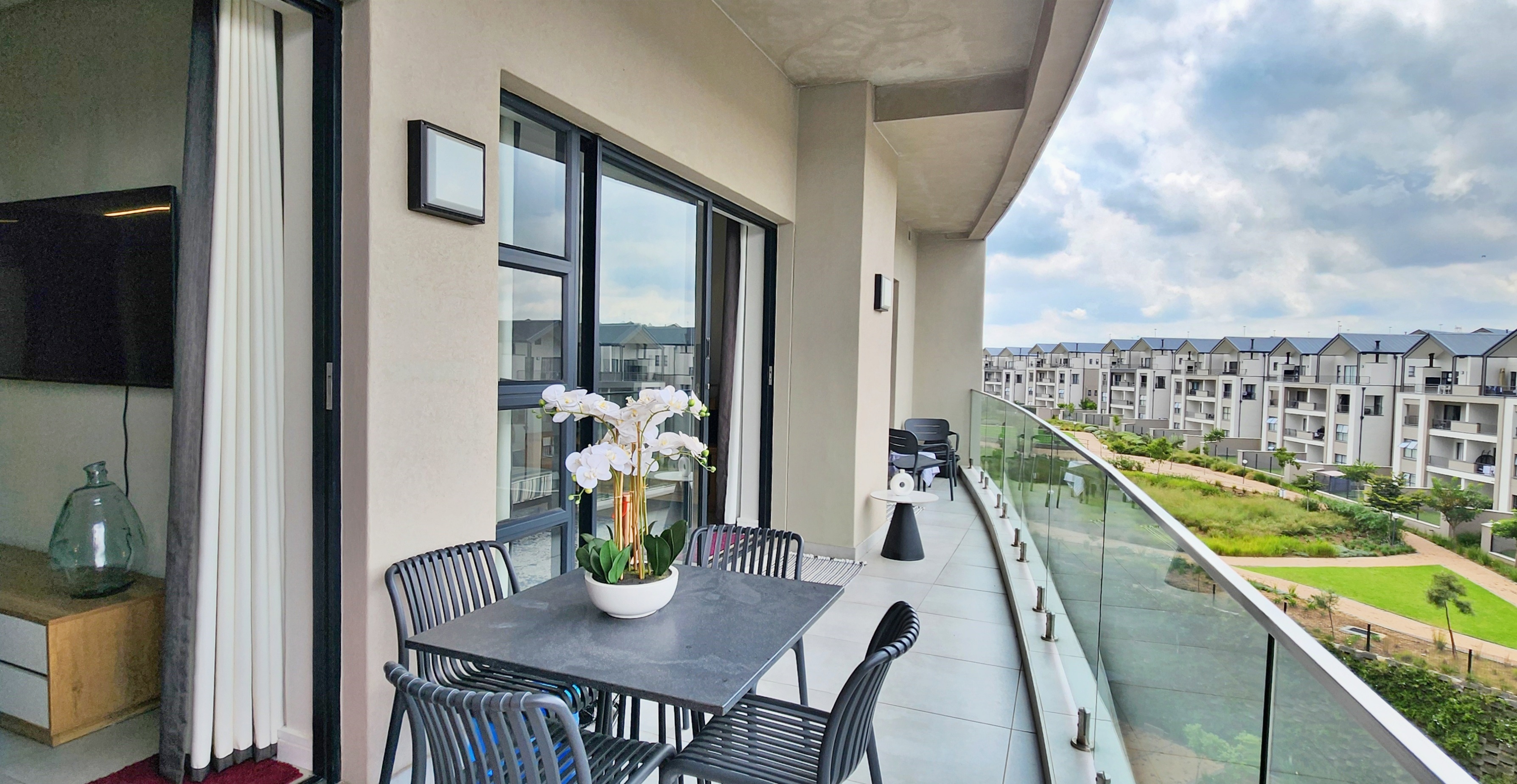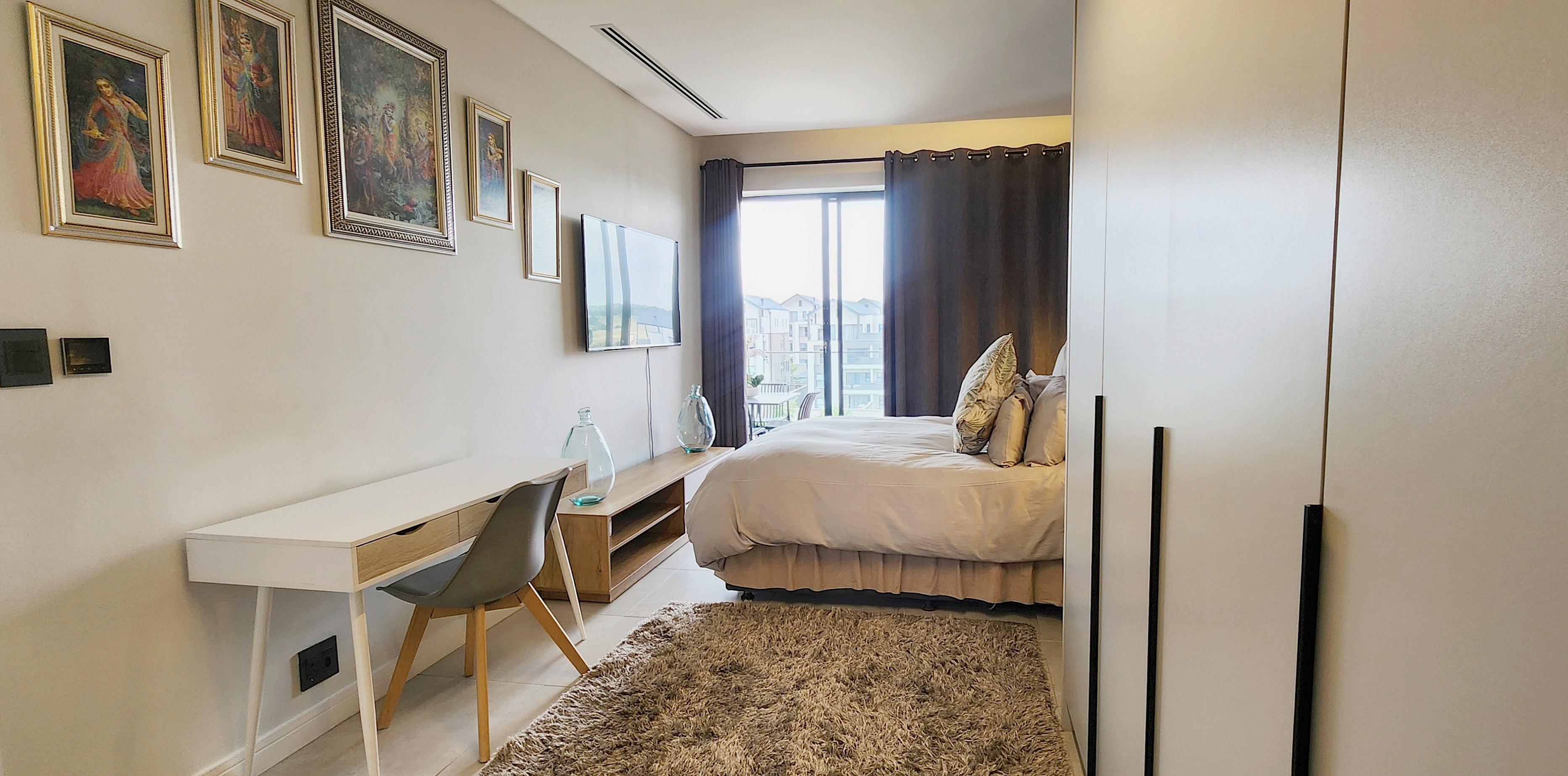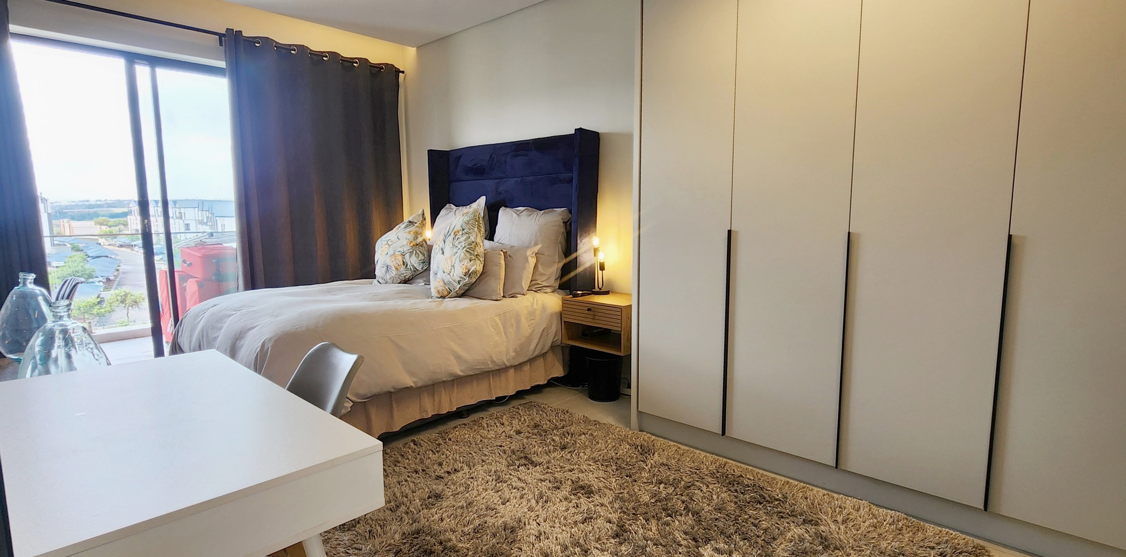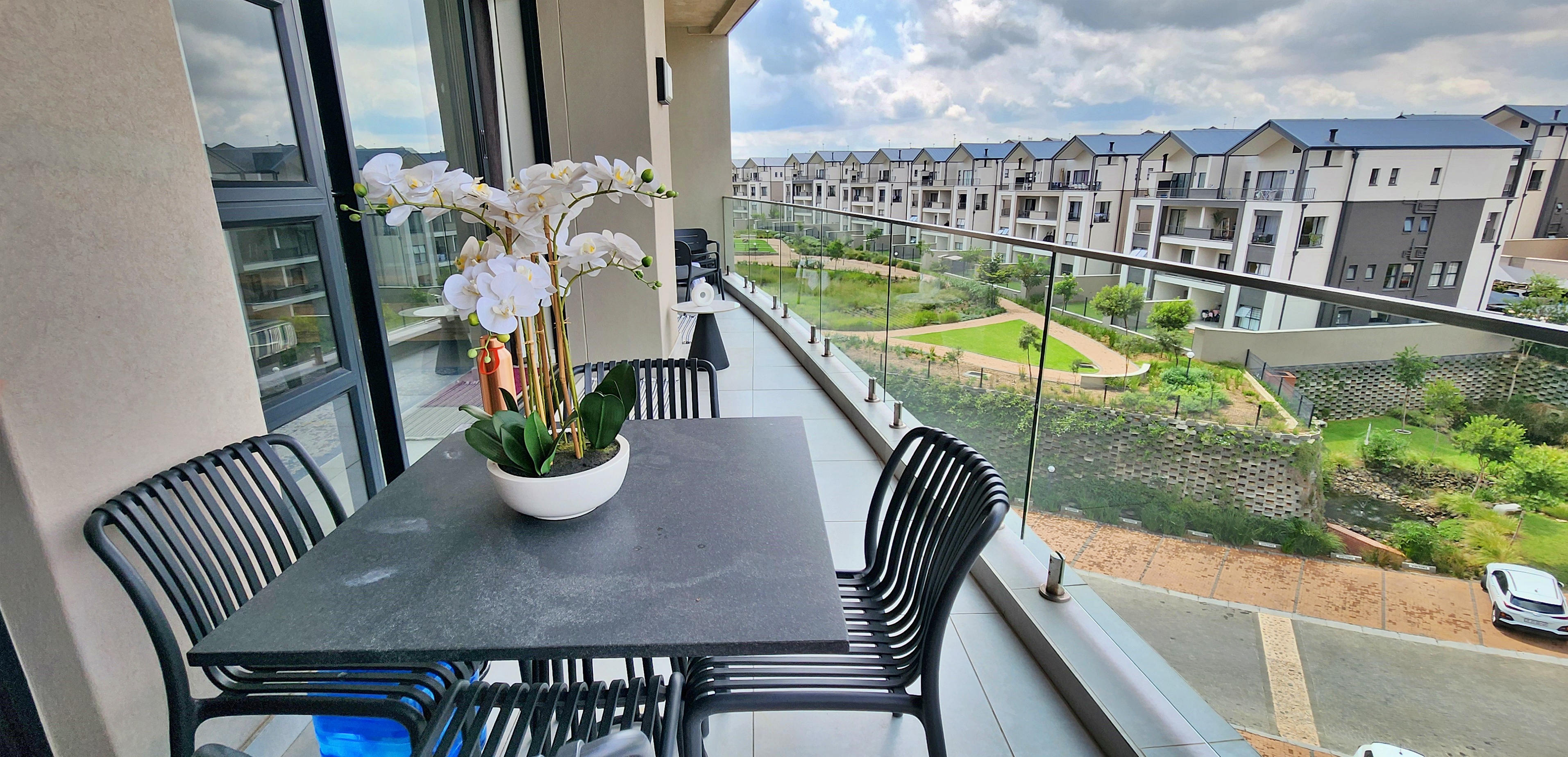 From the moment you step inside, you are welcomed by a stylish open-plan kitchen, thoughtfully designed with sleek finishes and high-quality Defy appliances. The seamless flow from the kitchen to the dining and living area creates a warm and inviting atmosphere, perfect for both relaxed living and entertaining. Large sliding doors open onto a full-length balcony, where breathtaking views of the Waterfall skyline provide the perfect backdrop to your morning coffee or evening unwind.