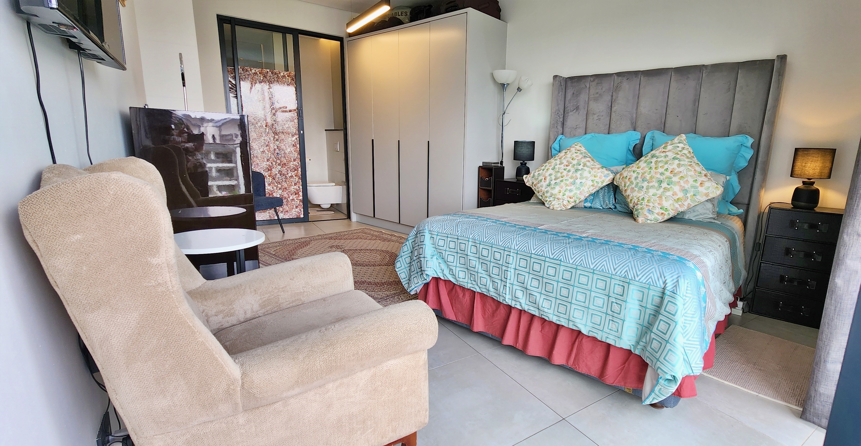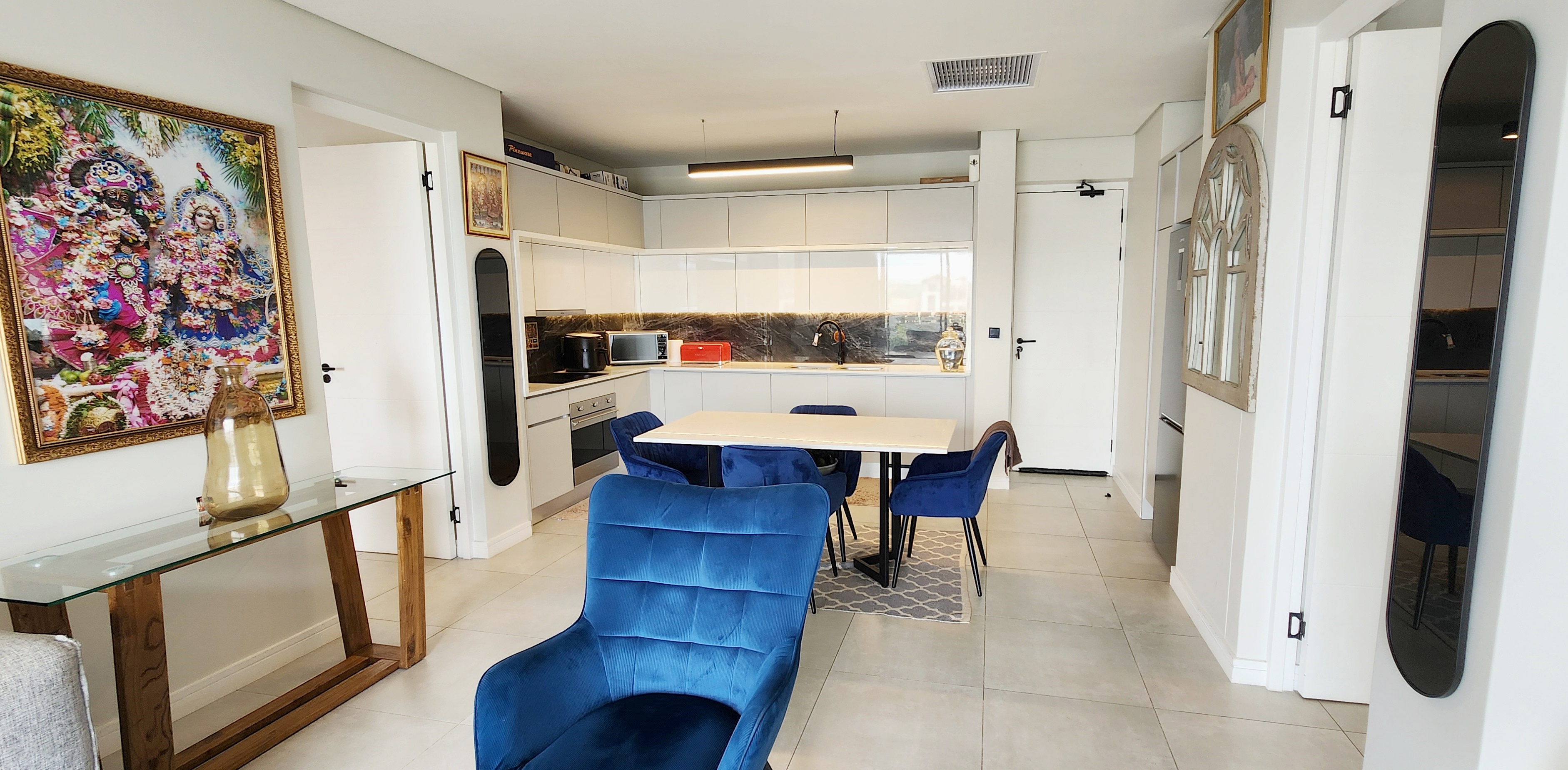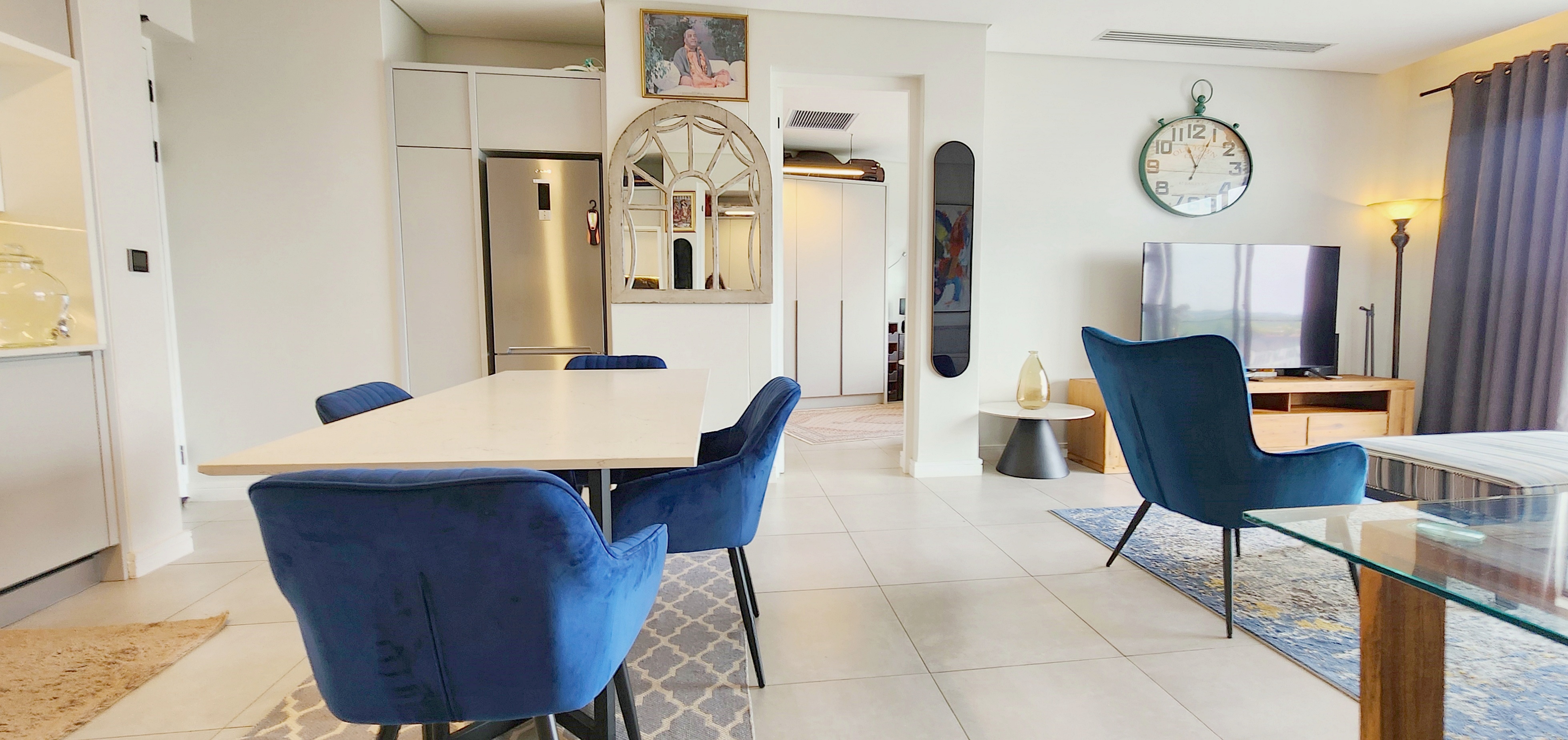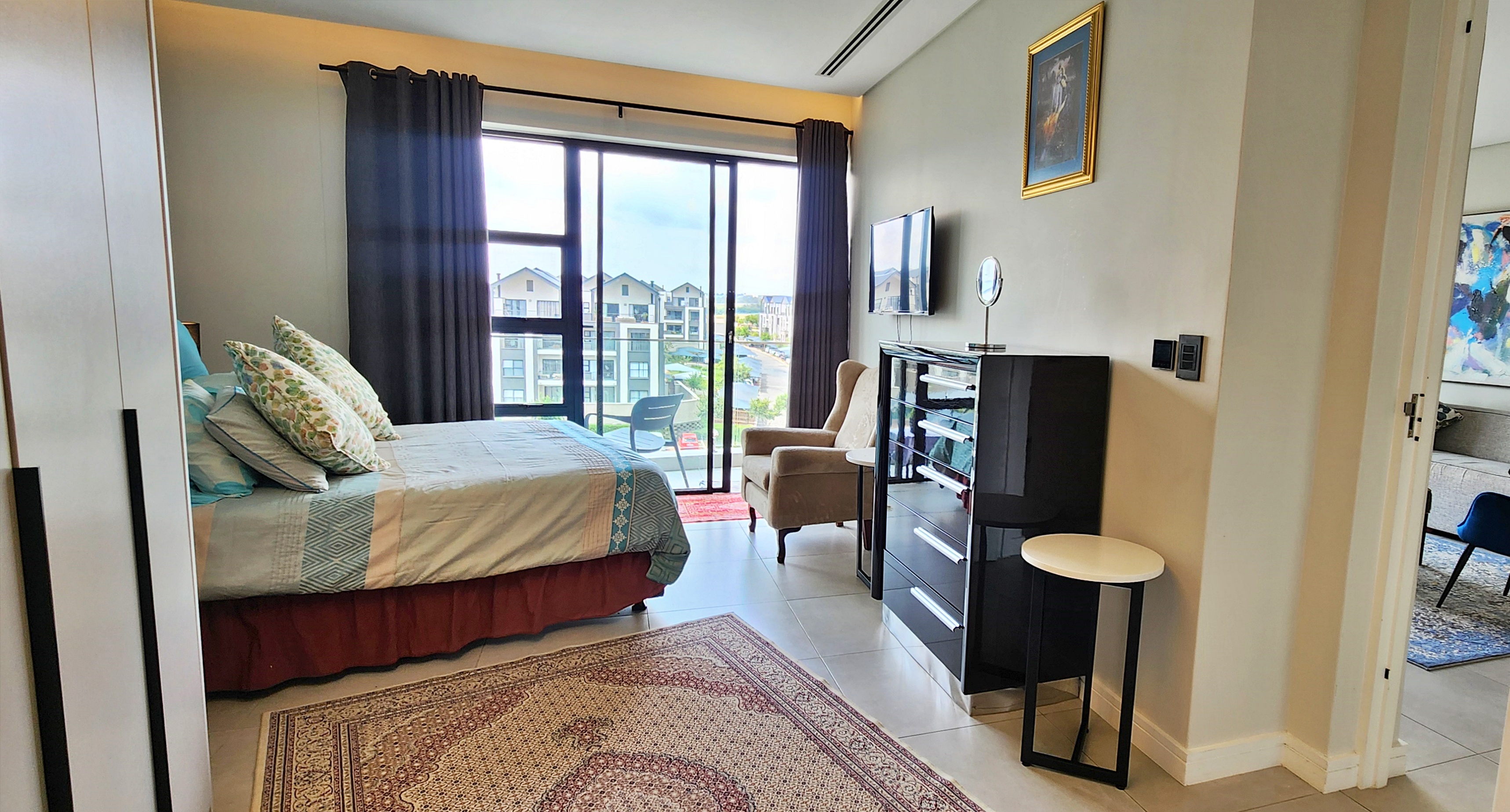 From the moment you step inside, you are welcomed by a stylish open-plan kitchen, thoughtfully designed with sleek finishes and high-quality Defy appliances. The seamless flow from the kitchen to the dining and living area creates a warm and inviting atmosphere, perfect for both relaxed living and entertaining. Large sliding doors open onto a full-length balcony, where breathtaking views of the Waterfall skyline provide the perfect backdrop to your morning coffee or evening unwind.