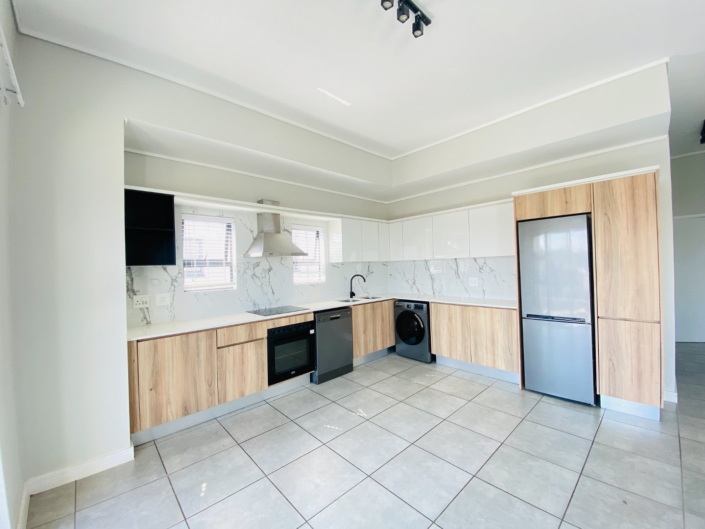 The Modern unit has an open-plan kitchen equipped with appliances that include a dishwasher, washing machine/dryer, fridge.