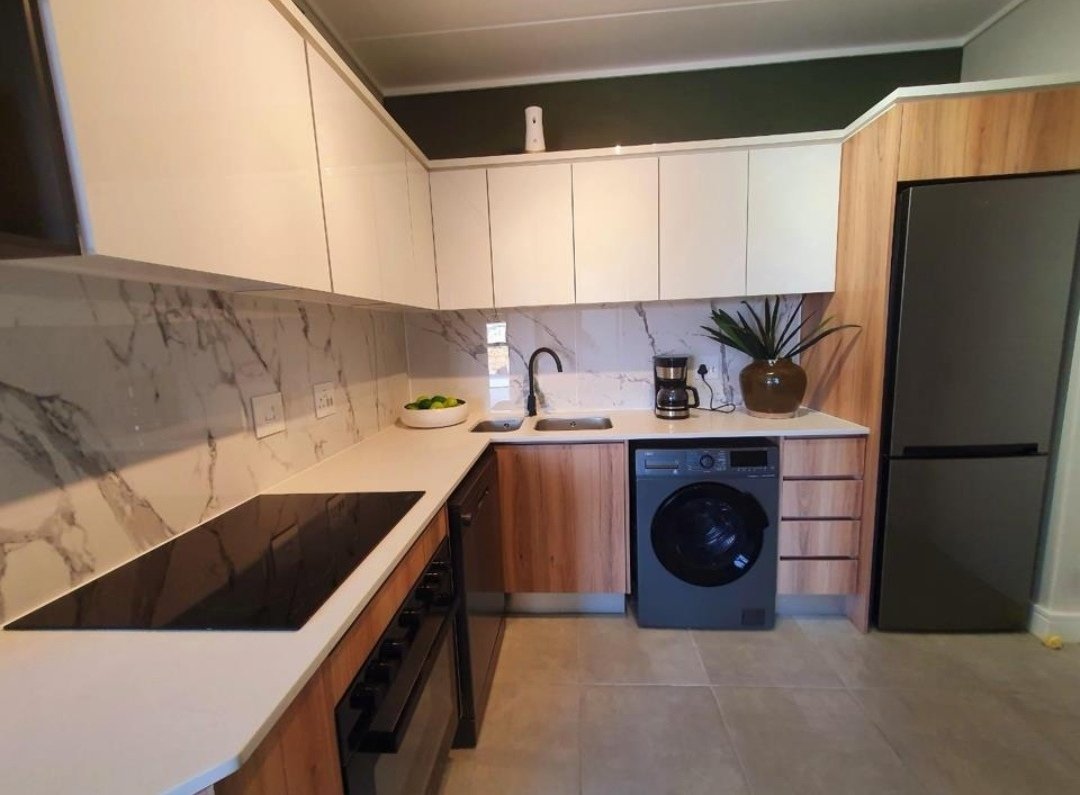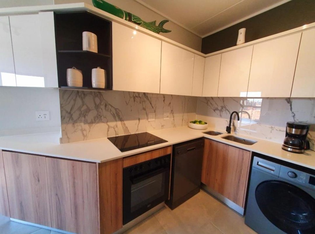 Nestled just steps from a crystal-clear lagoon, this refined one-bedroom apartment offers a serene retreat in the heart of Munyaka. Designed with elegance and functionality in mind, the home features a Scandinavian-inspired kitchen fitted with eco-conscious appliances, including a fridge, washing machine/dryer combo, and dishwasher. Fibre and DSTV readiness ensure seamless connectivity, while prepaid water and electricity meters offer added convenience. A covered parking bay is included, with ample visitor parking available.