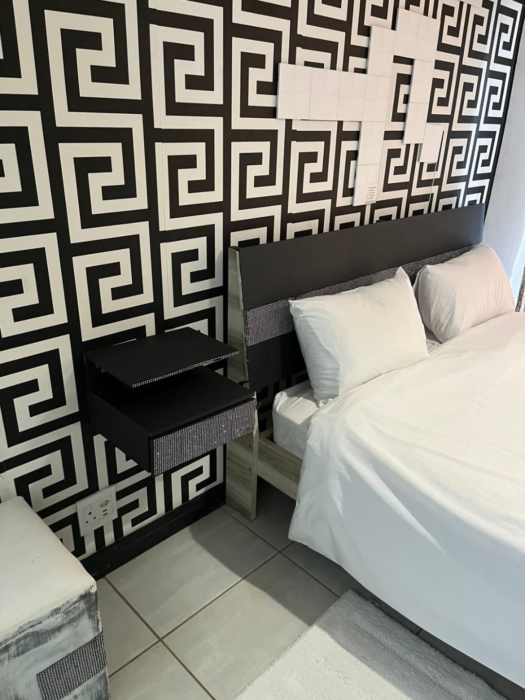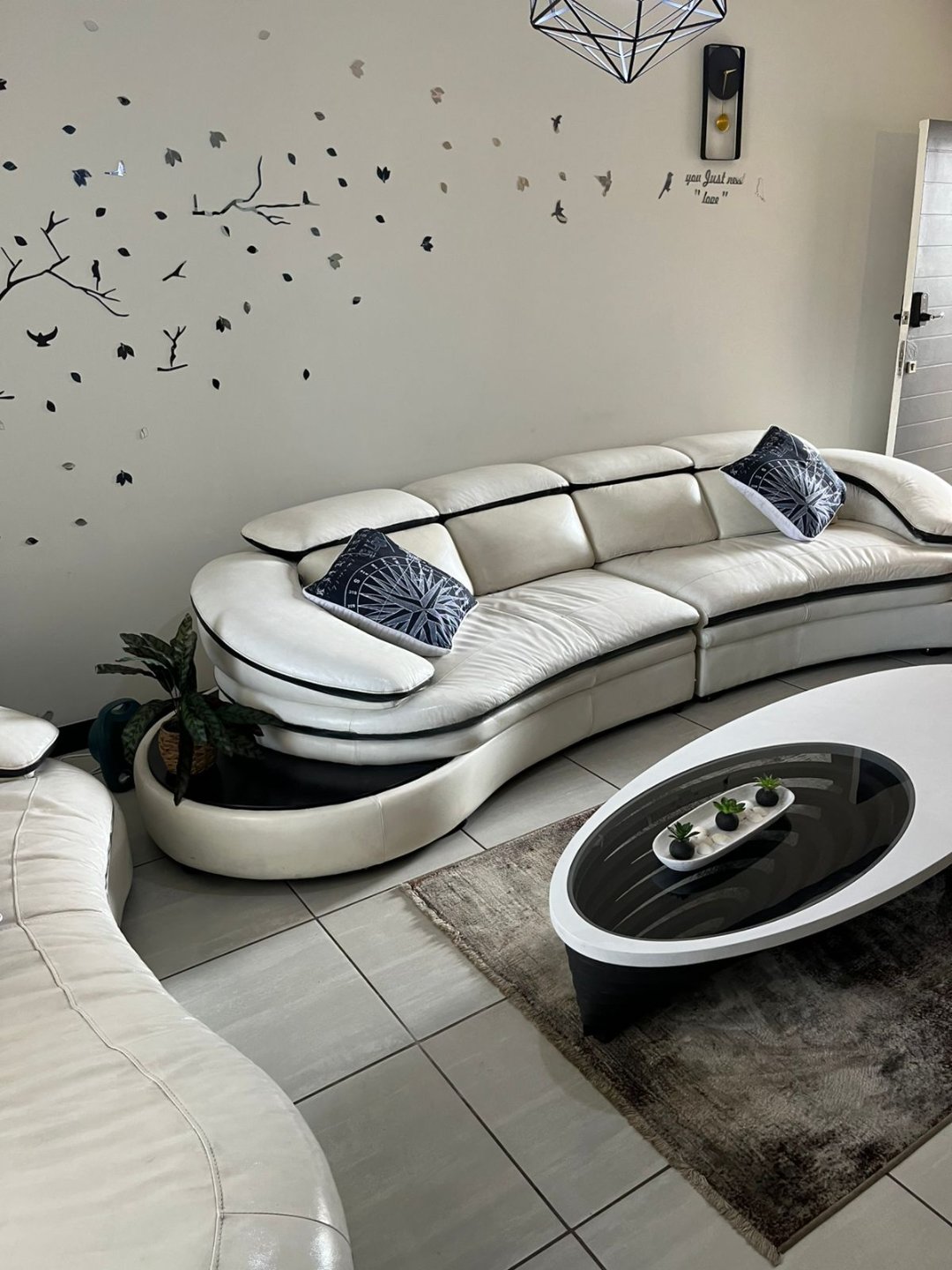 This beautifully designed first floor apartment features three generously sized bedrooms and two elegant bathrooms. The modern, open-plan kitchen showcases a Scandinavian aesthetic and comes fully equipped with utensils, crockery and appliances for your daily practicality. Step out onto a spacious patio, ideal for entertaining or quiet outdoor moments. The home also includes solar-assisted electricity, pre-paid utility meters, Wi-Fi and DSTV readiness, and two covered parking bays.
