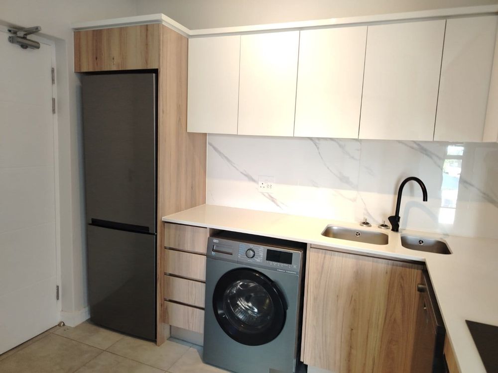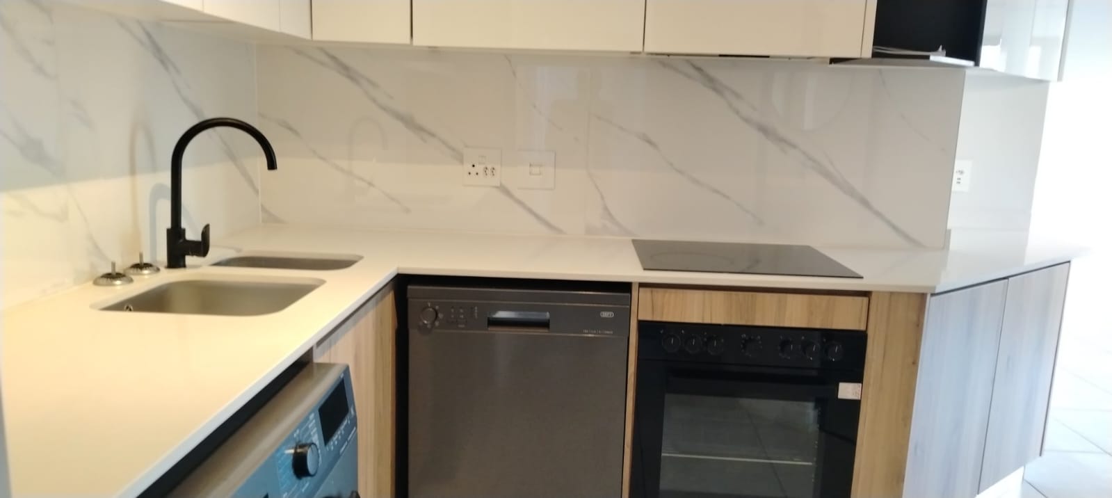 This modern one-bedroom apartment is situated just a few metres from a beautiful, crystal-clear lagoon. The Scandinavian-style kitchen comes standard with eco-friendly appliances, including a fridge, washing machine/dryer combo, and dishwasher. The apartment is fibre and DStv ready, and features pre-paid water and electricity meters. One covered parking bay is allocated to the unit, with ample visitors' parking available.