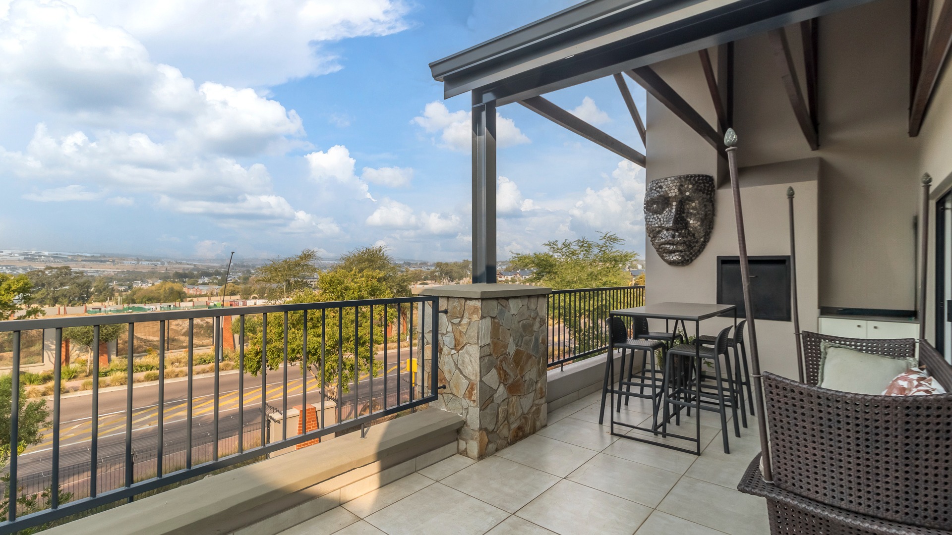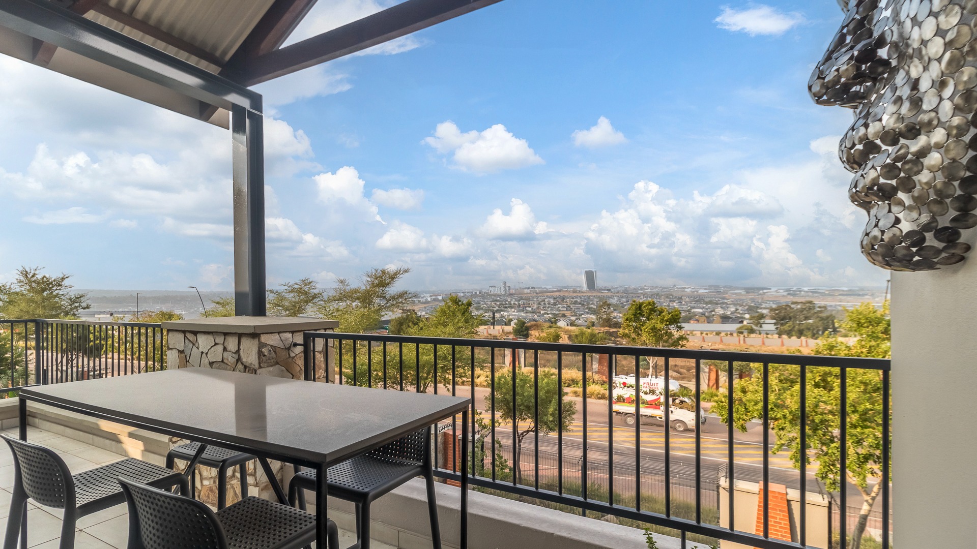 The apartment includes an extra large balcony equipped with a braai area, providing an ideal space for outdoor entertaining or simply enjoying the fresh air and scenic views.