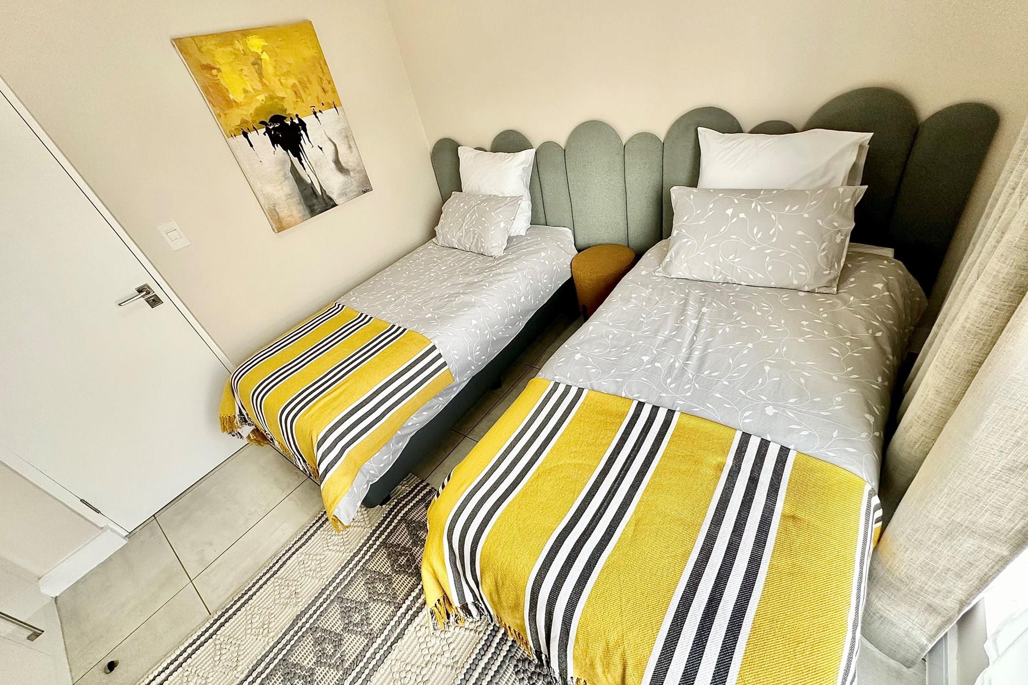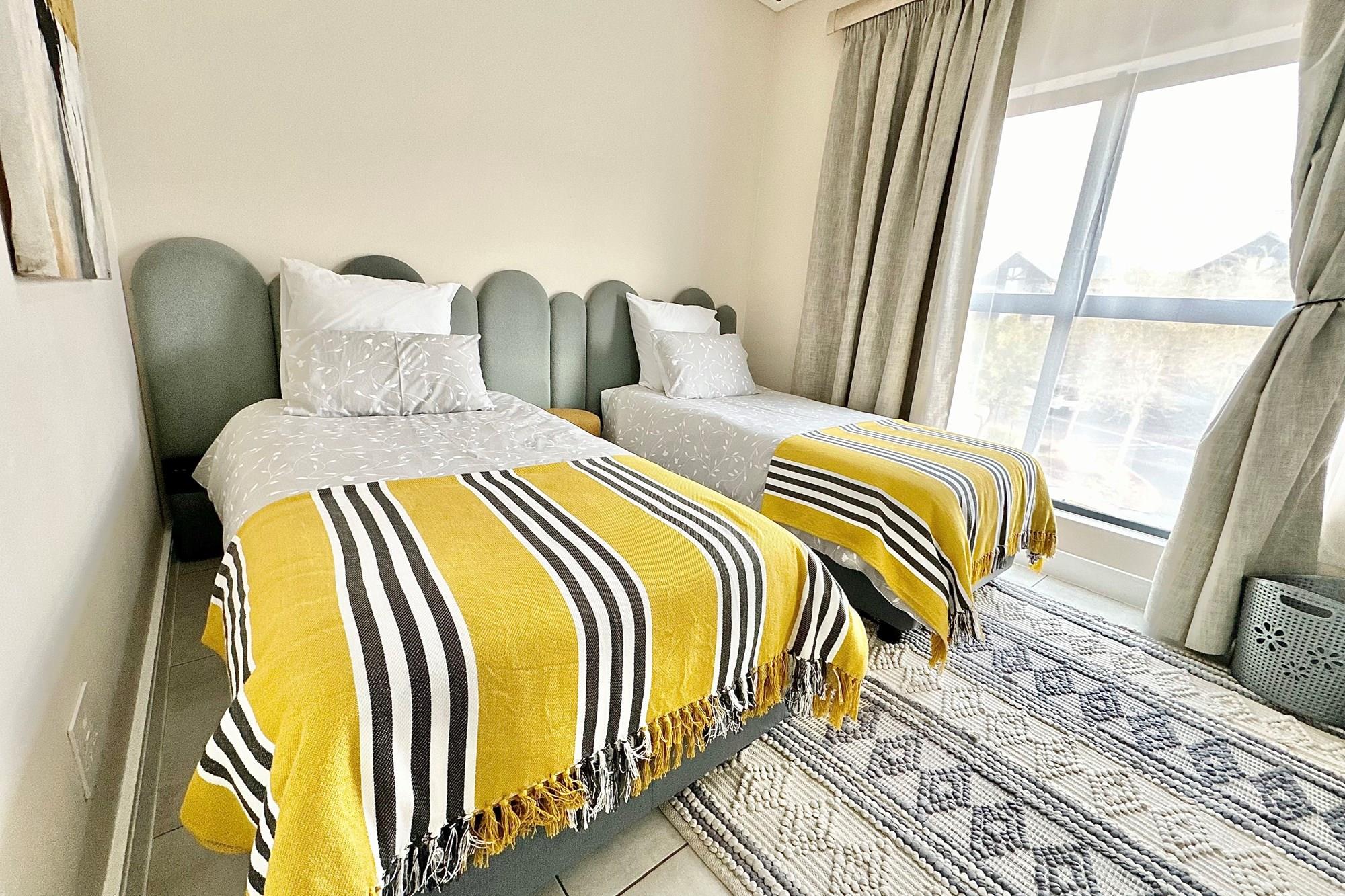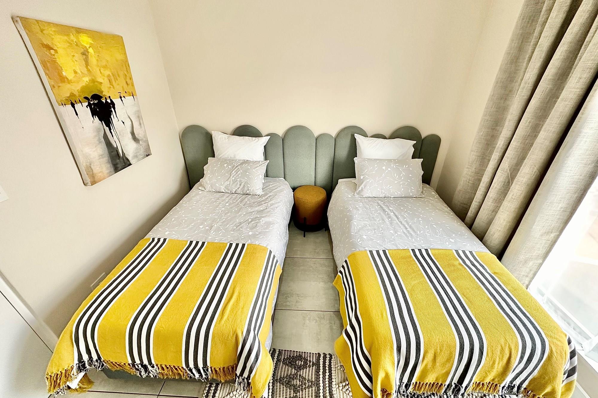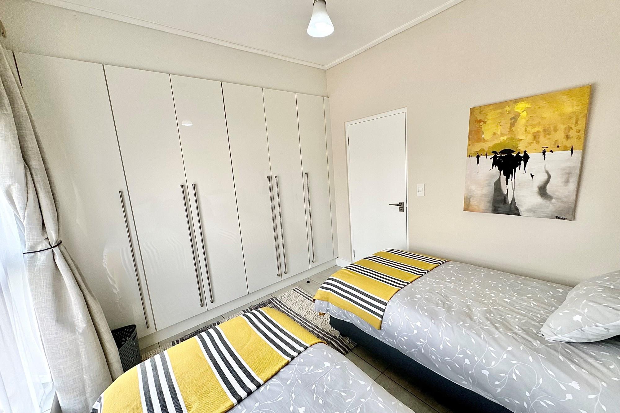 2 tiled bedrooms with built-in cupboards