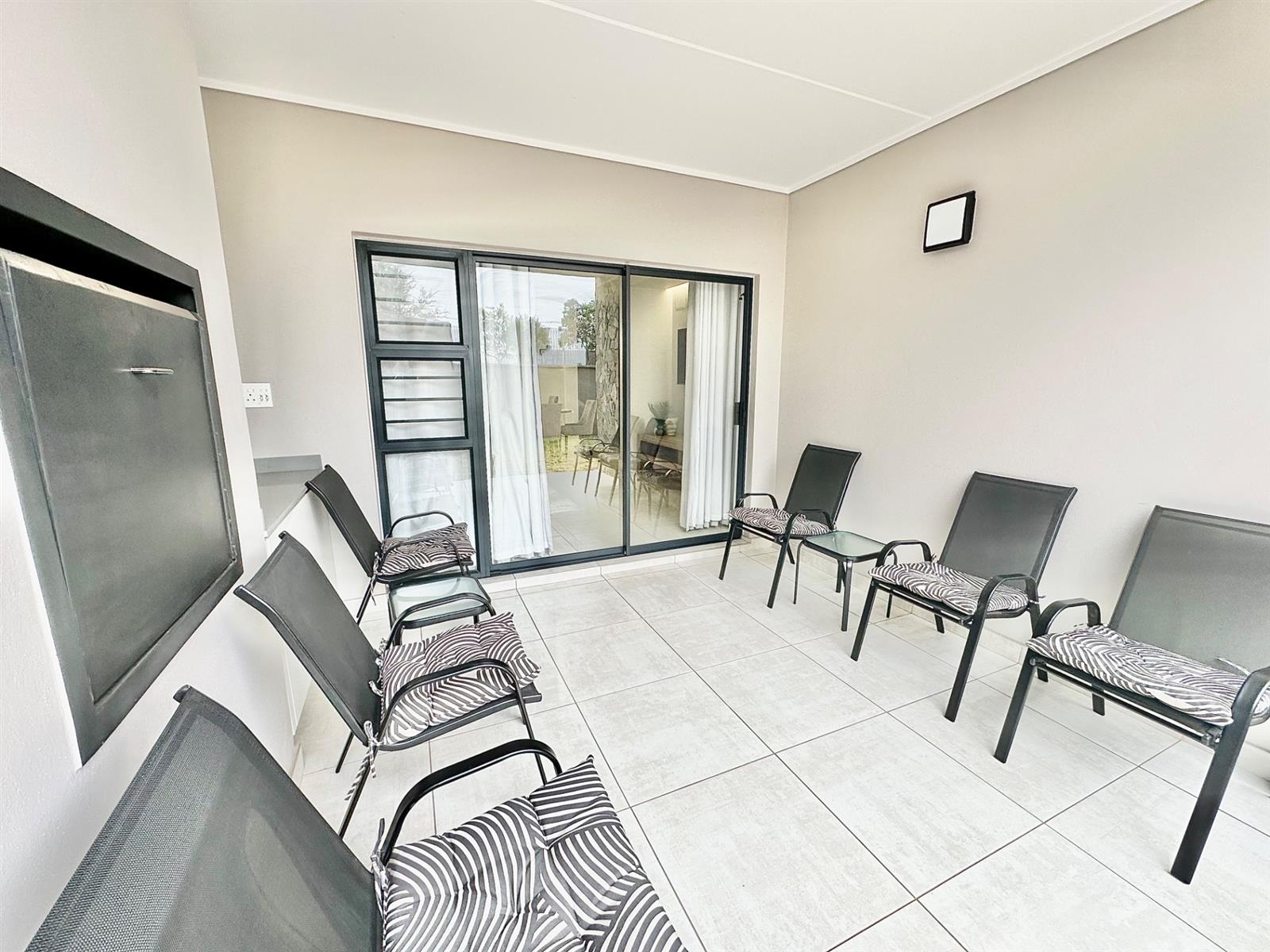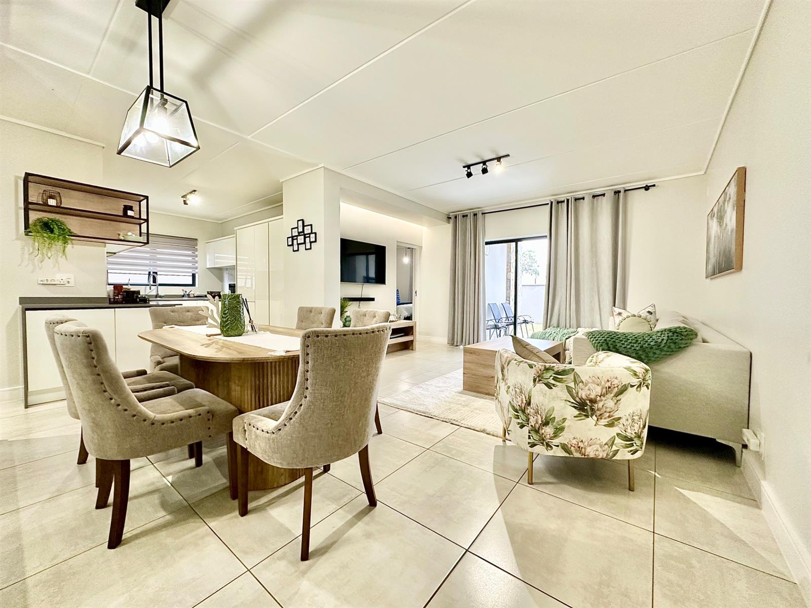 Step into an elegantly designed home that blends style with functionality. The open-plan living and dining area flows seamlessly onto a covered patio and private garden with a built-in gas braai—perfect for year-round entertaining.