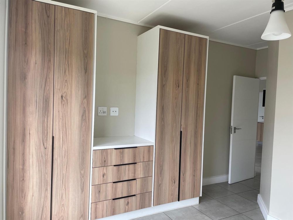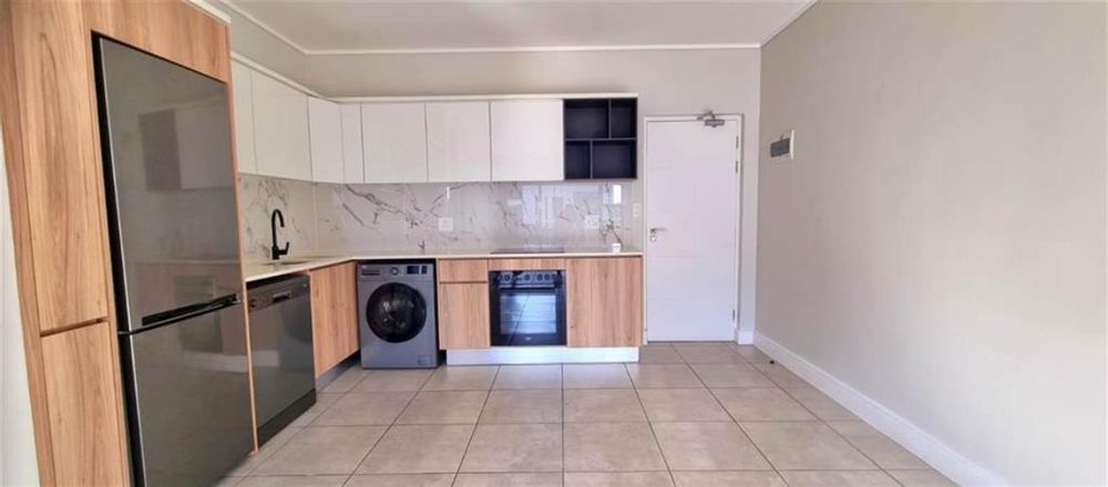 The main bedroom includes a sleek en-suite bathroom and ample built-in cupboards, offering both comfort and functionality. The second bedroom is well-sized and serviced by a modern bathroom, ideal for guests or family members. Fibre and DStv readiness ensure effortless connectivity, while one secure covered parking bay and ample visitor parking add convenience.