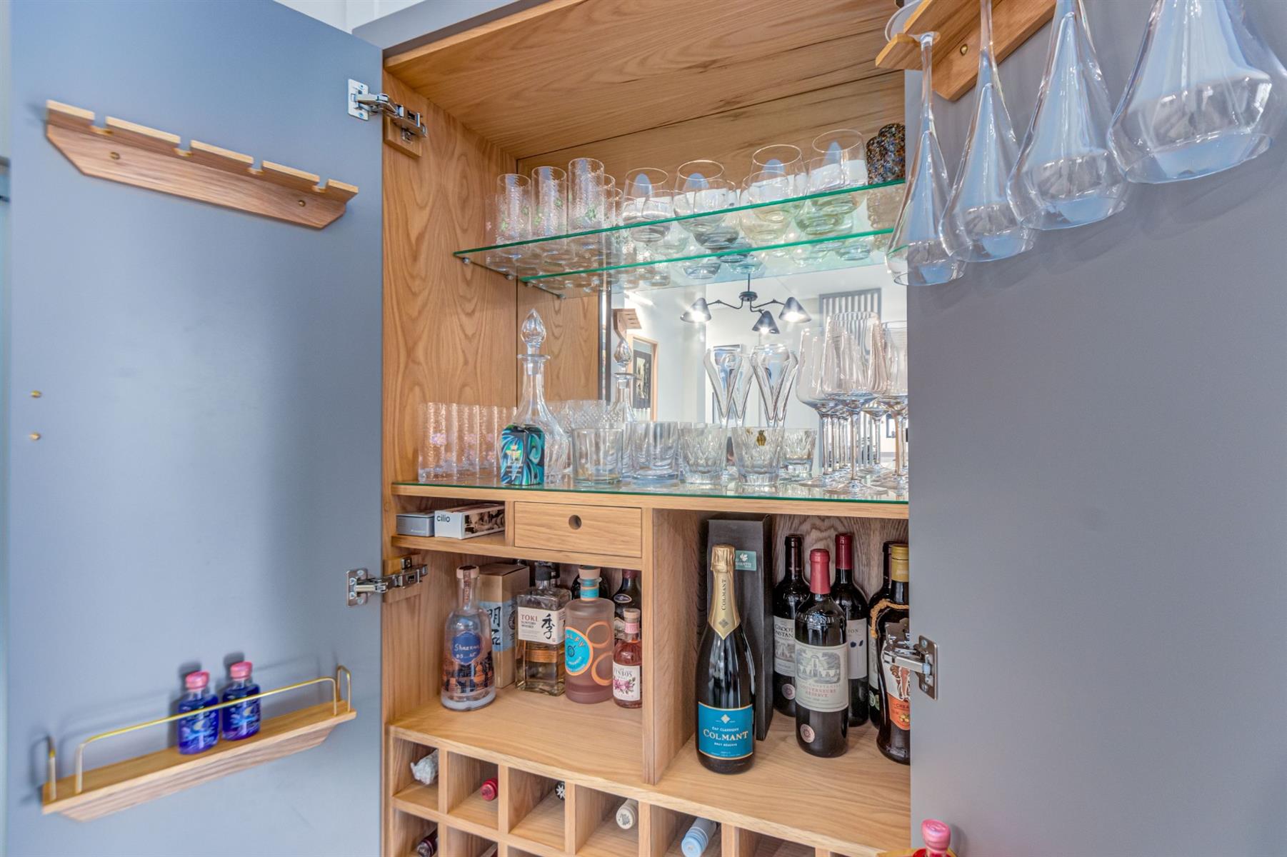 An open plan Kitchen sports integrated SMEG appliances such as a fridge/freezer combo, dishwasher, washing machine/tumble dryer, and a gas hob.