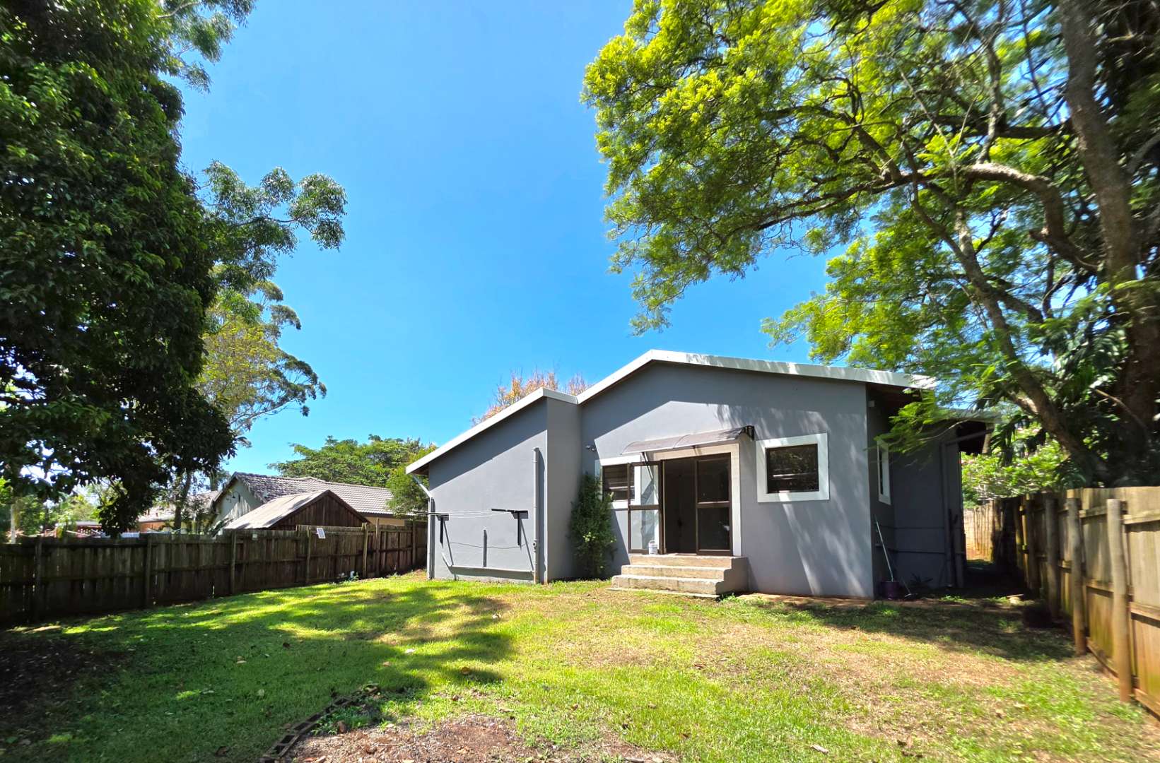 Both houses feature separate entrances with a dividing fence, giving each residence privacy and independence. Utilities are simplified with pre-paid electricity and water, along with a septic tank system.